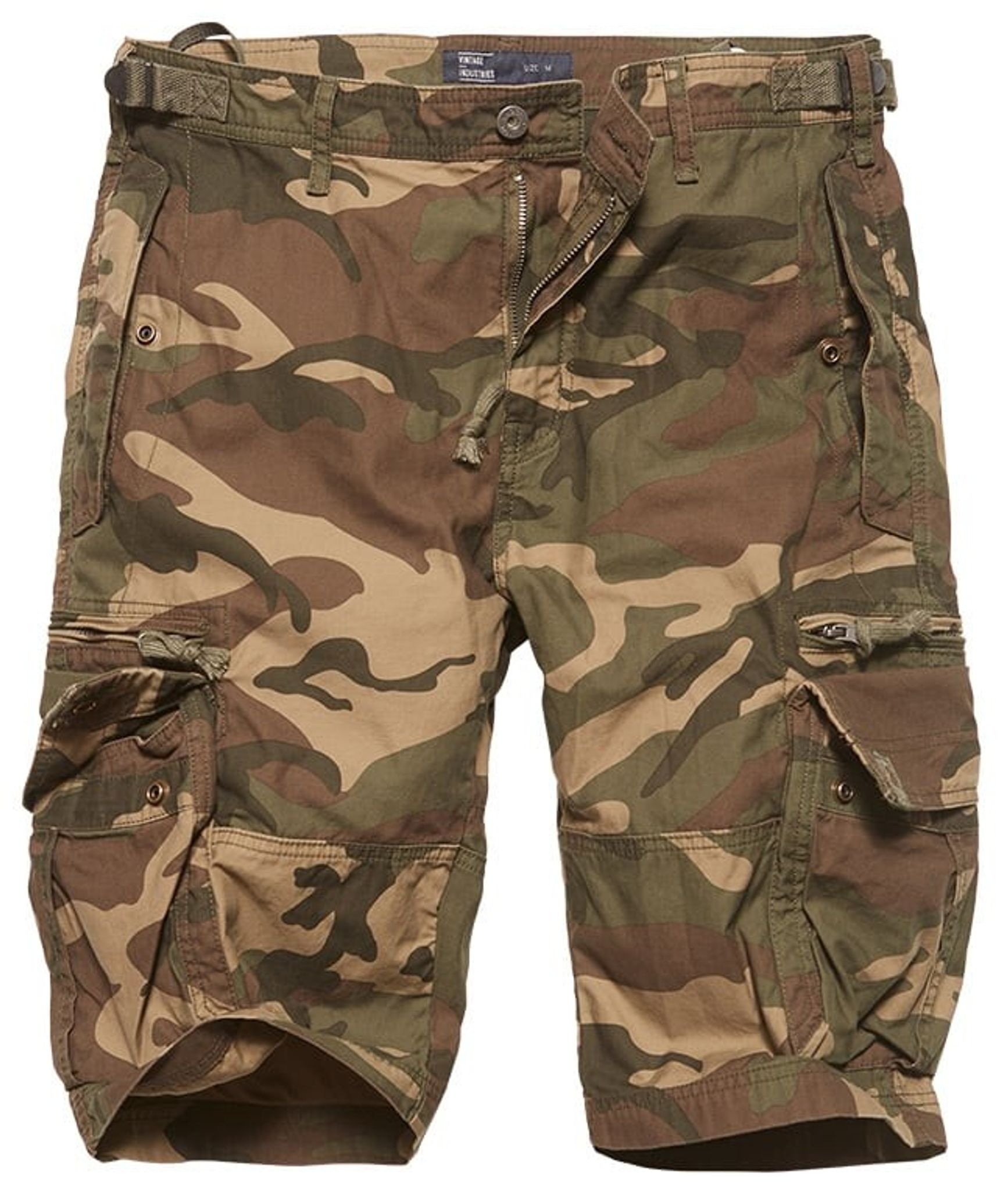 Dessa 3/4 lösa cargoshorts för herrar är tillverkade av 100% bomull i en skön och slitstark broken twill-väv. Shortsen har en lös passform och kommer i två olika klassiska kamouflage-mönster - woodland camo och darkcamo.