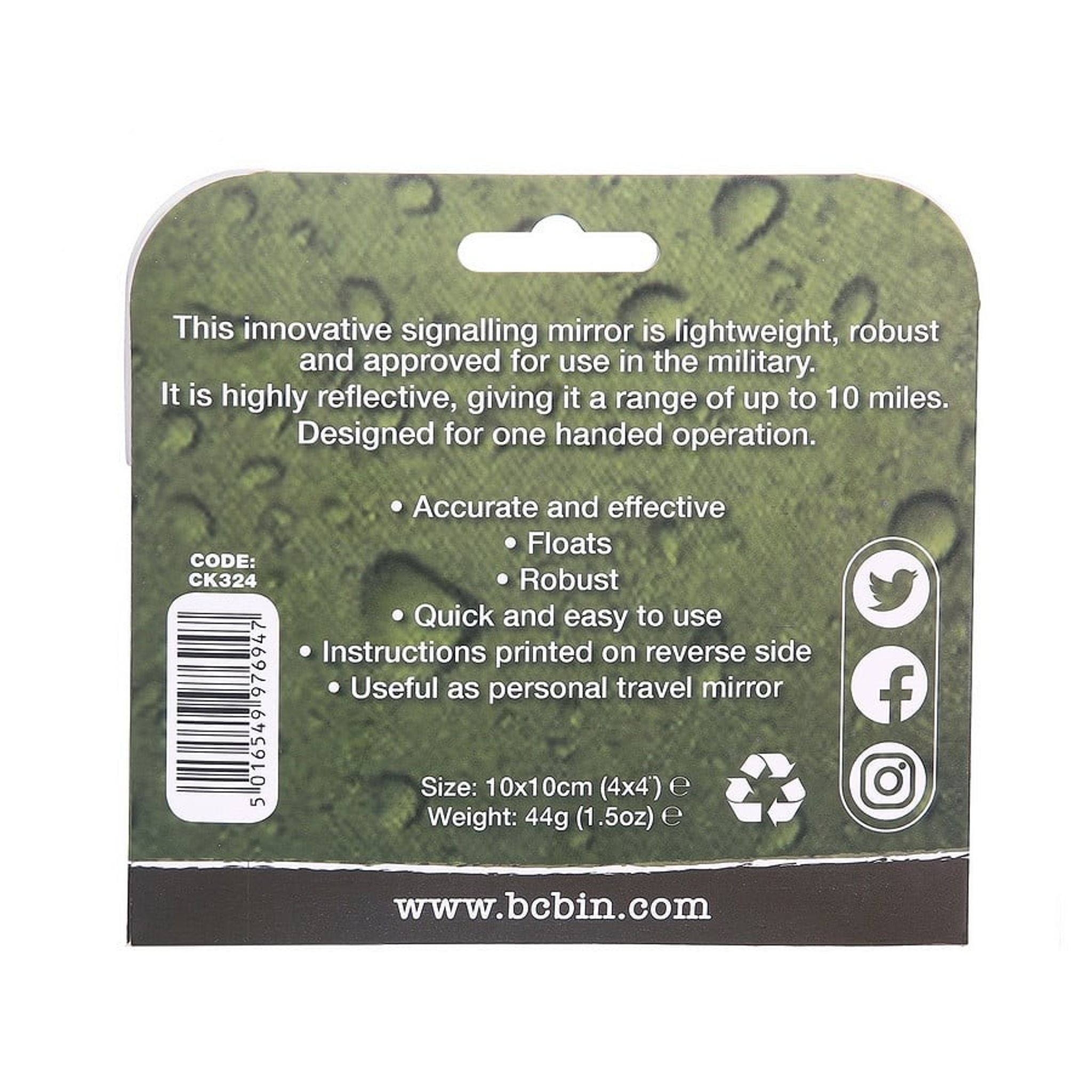 - Reflekterande räckvidd: Över 10 miles för den lilla spegeln och längre för livbåts-/livflotte-spegeln