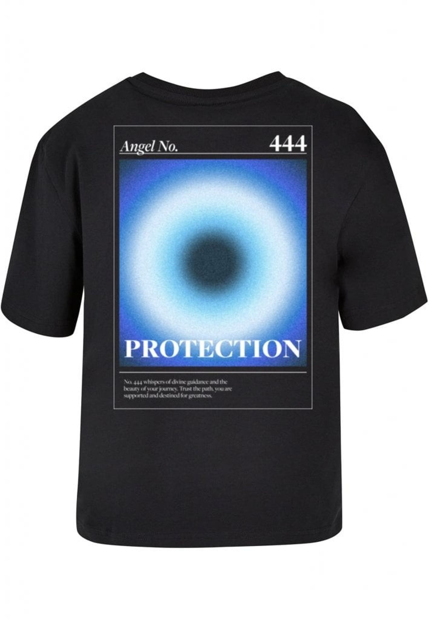 444 Protection Tee har en framträdande design med "Angel No. 444" och ordet "PROTECTION" tydligt tryckt på ryggen, omgivet av en ögatfångande kosmisk grafik. Framsidan är subtilt prydd med symbolen "444" på vänster bröst, vilket skapar en harmonisk balans mellan framsidan och baksidan.