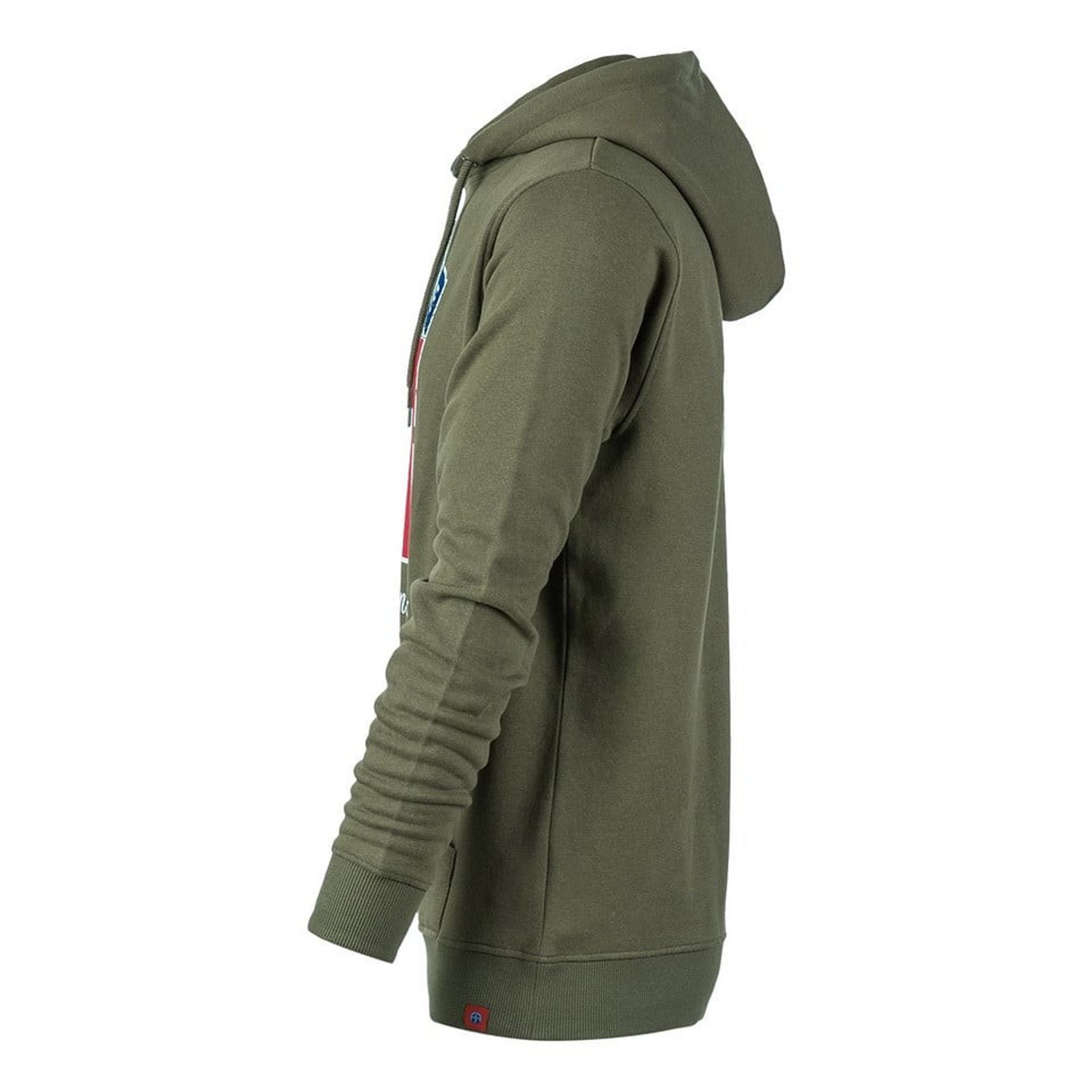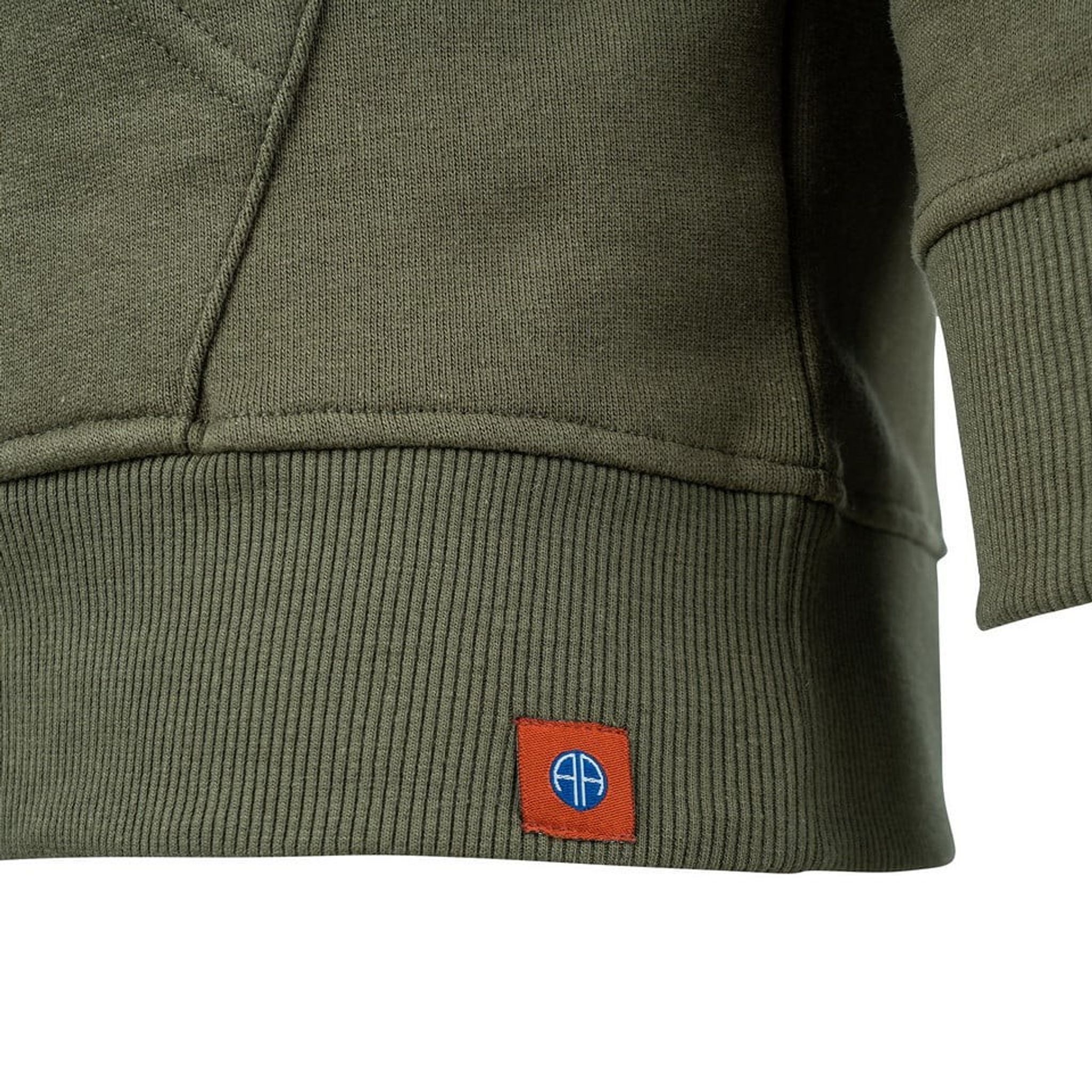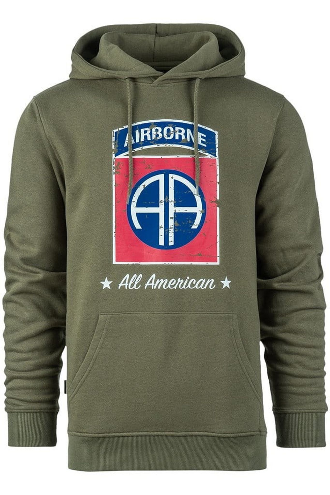 Hoodien har en praktisk dragstring i huvan och en sydd kangoroo-ficka fram, vilket ger extra funktionalitet. Designen pryds av ett tryck av den amerikanska arméns 82:a luftburna division, en elit enhet som främst består av fallskärmsjägare.