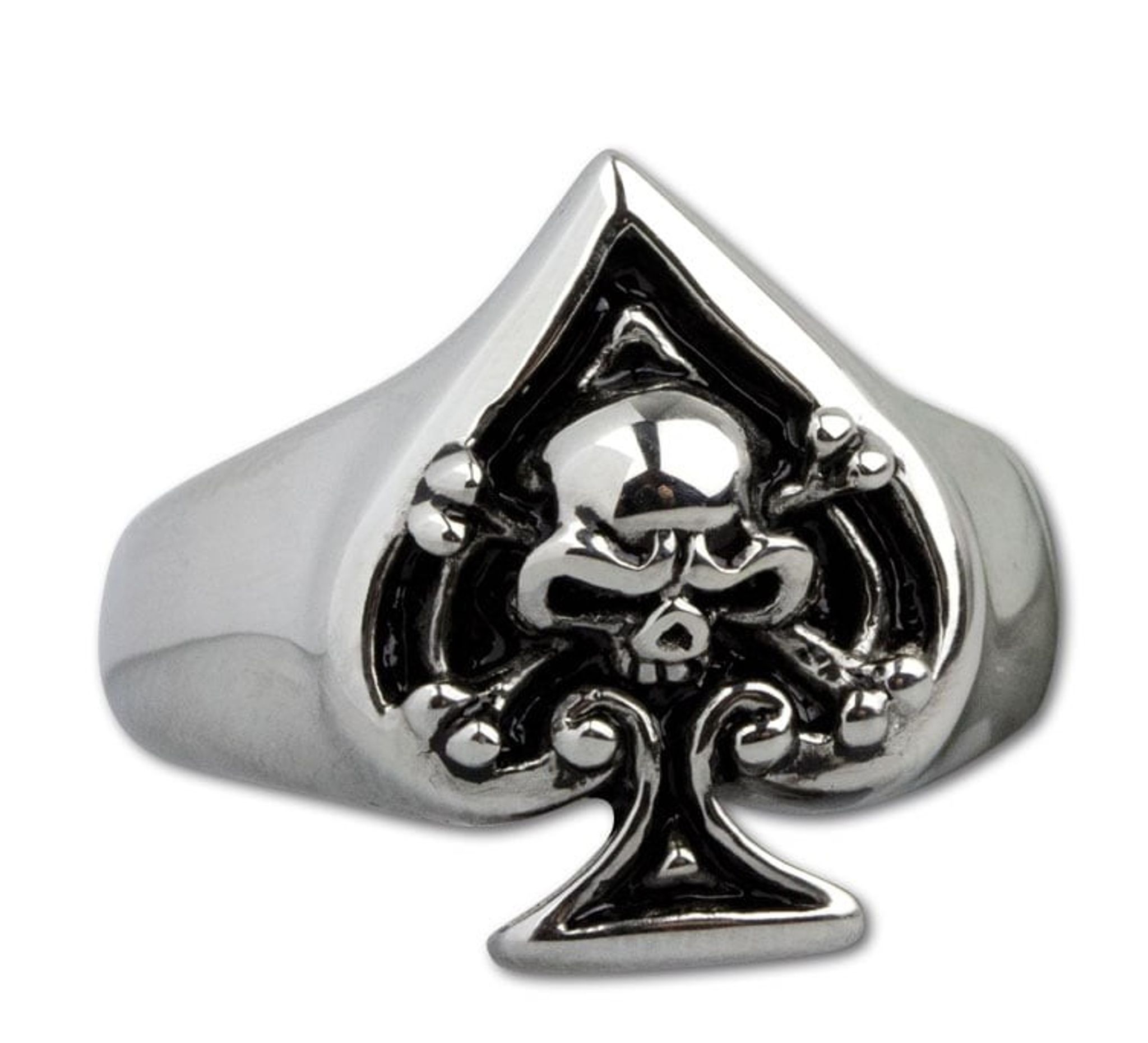 Ringen föreställer ett spader med en stor skalle i mitten.