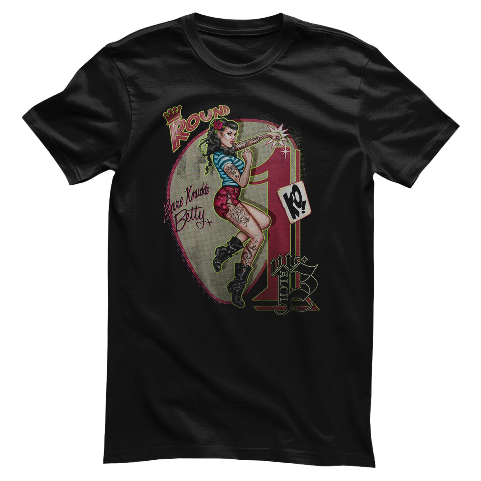 Upptäck Alchemy Englands unika Bare Knuckle Betty T-shirt i 100% bomull med livfullt tryck.