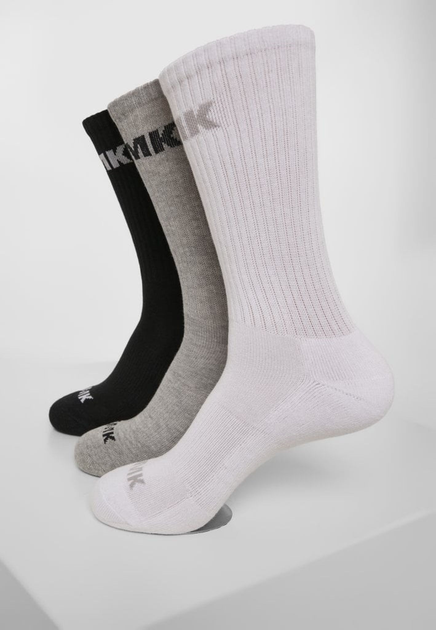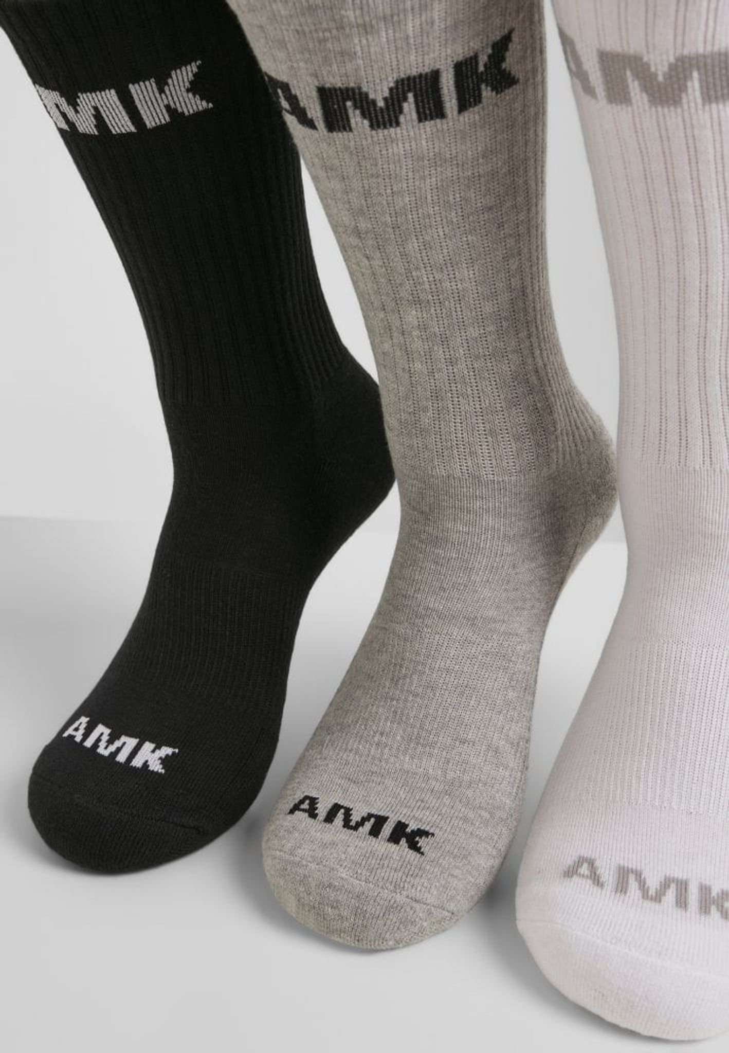 AMK strumpor i 3-pack. Ett par svarta, ett par grå och ett par vita.