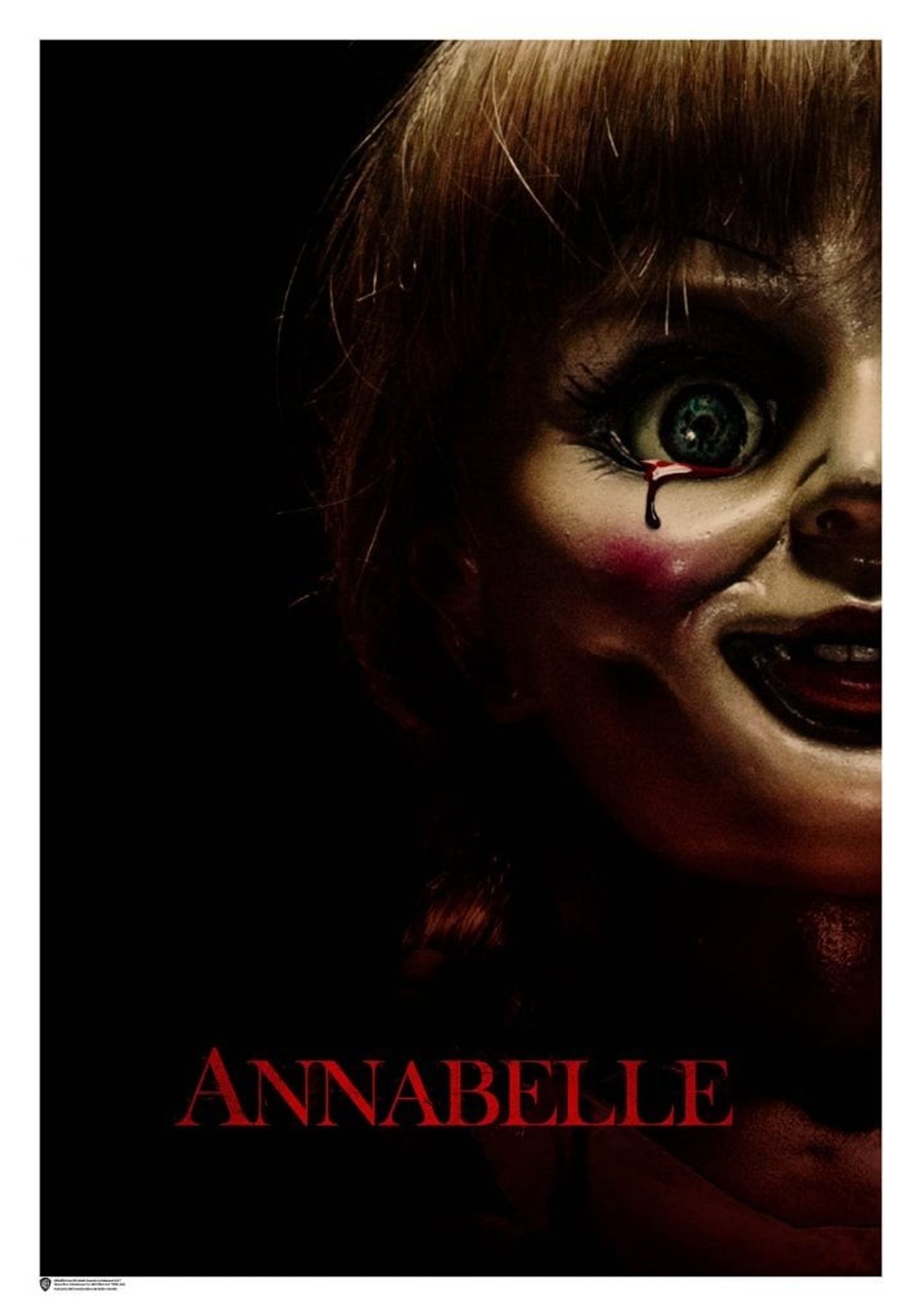 Poster med filmomslaget från Annabelle. Filmen om den hemsökta dockan Annabelle som släpptes 2014 och vars historia baseras på en påstått riktig hemsökt docka vid namn Annabelle.
