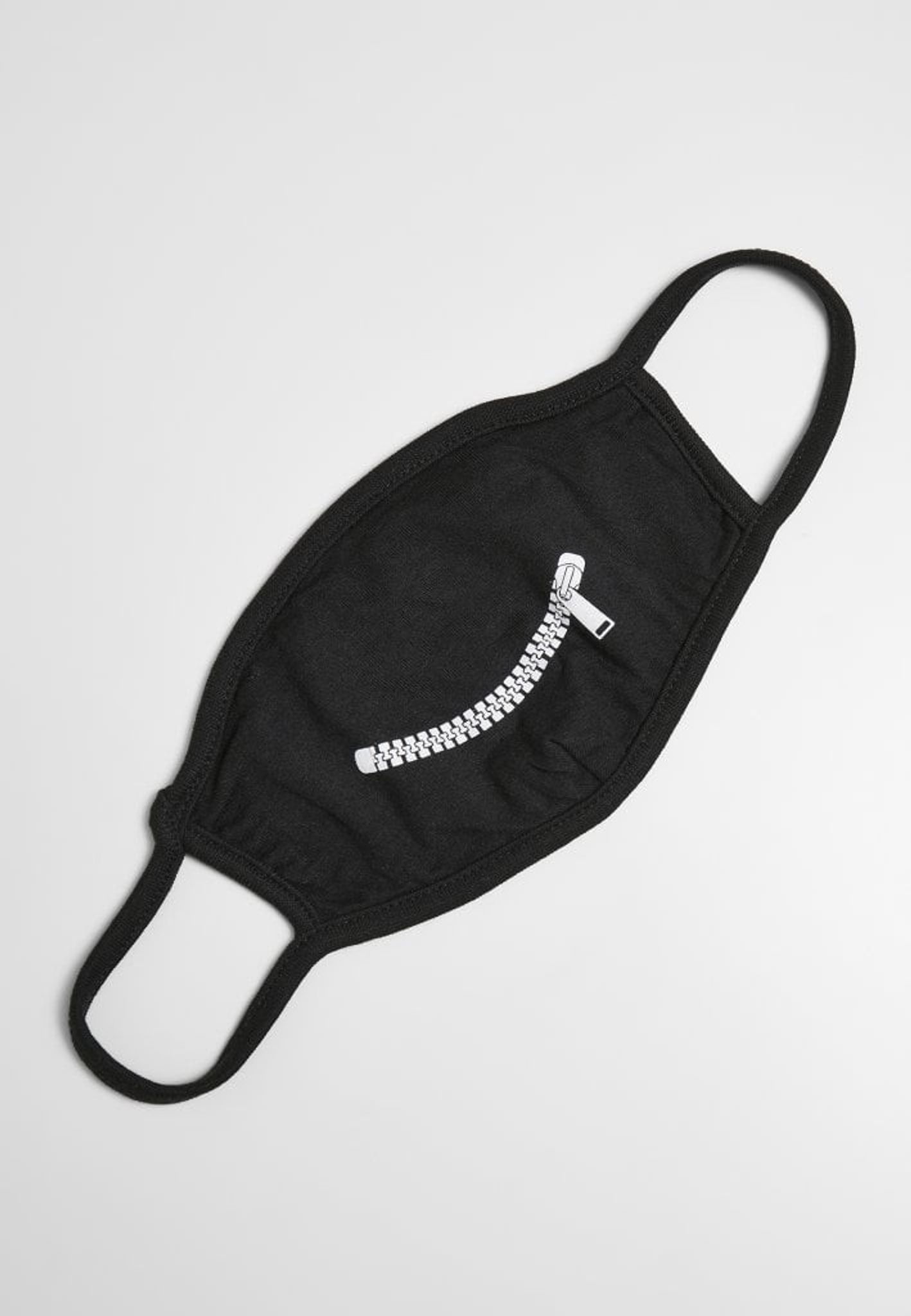 Denna ansiktsmask har en glad dragkedja som mönster.