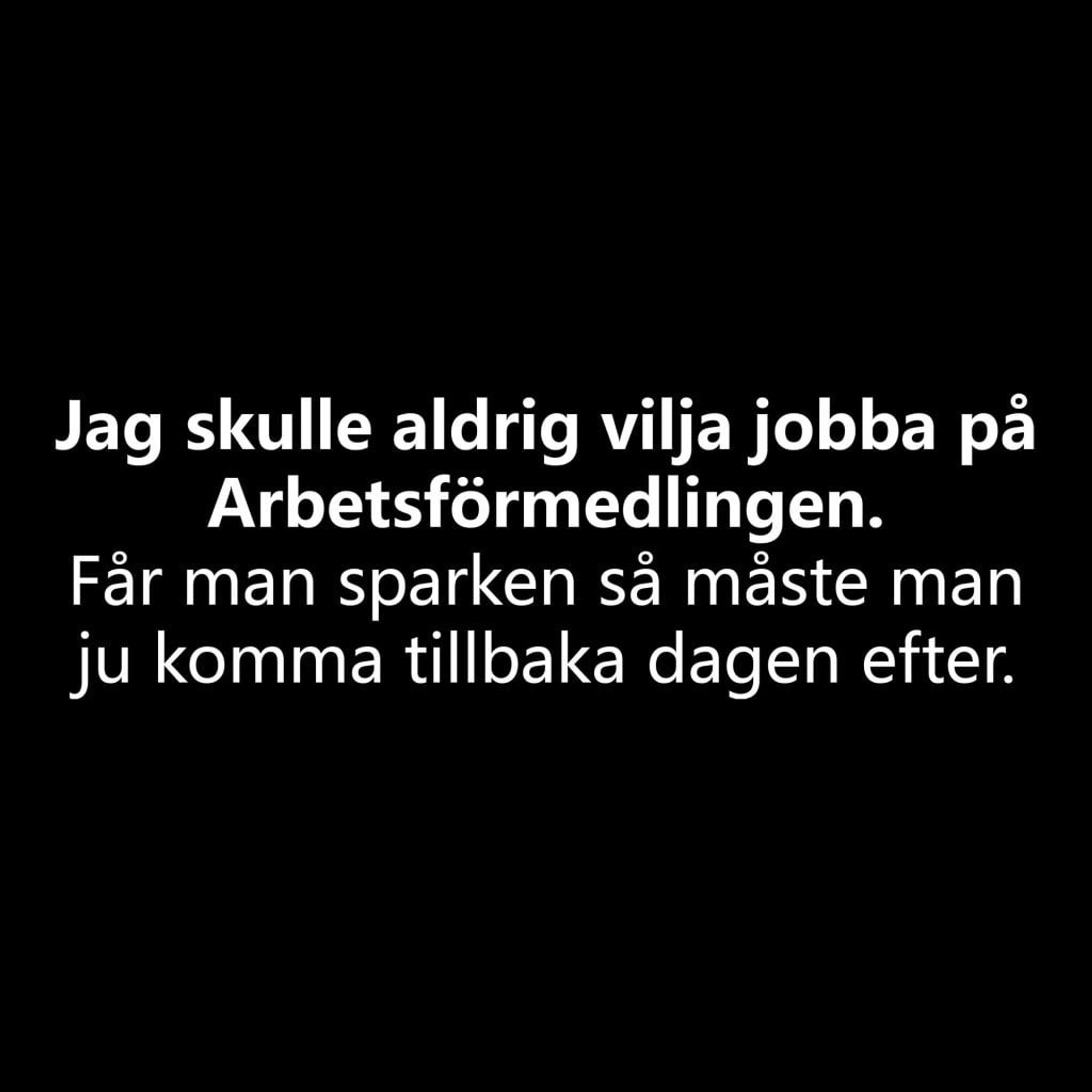 T-shirten som kombinerar humor med den ironiska verkligheten av arbetslivet! Med texten "Jag skulle aldrig vilja jobba på Arbetsförmedlingen. Får man sparken så måste man ju komma tillbaka dagen efter", blir denna t-shirt en perfekt gåva till den kompis som alltid har en rolig kommentar i beredskap.