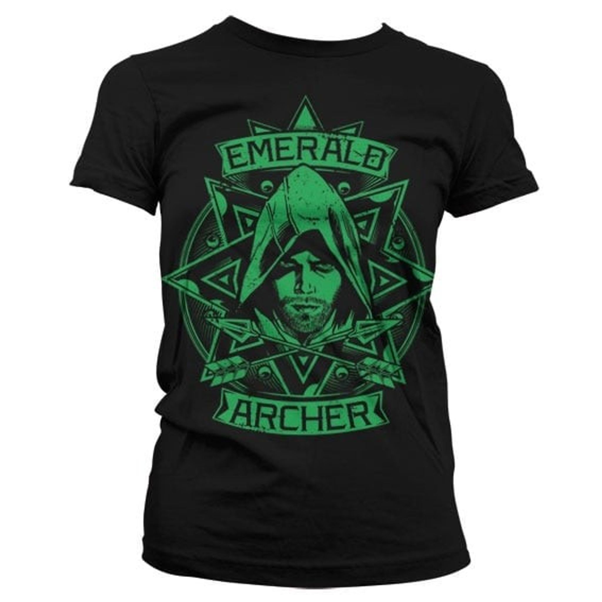 Vill du känna dig som en riktig superhjälte? Då är vår "Emerald Archer" t-shirt det perfekta valet för dig! Med sitt mystiska och eleganta motiv, täckt av geometriska stjärnor och korsade pilar och bågar, kommer du att utstråla kraft och stil samtidigt som du skyddar staden - precis som den riktiga hjälten. Med en intensiv blick och en smaragd som glimmar runt ansiktet kommer du signalera att du har en superhjälte av hög kaliber. Så glöm inte att inte stå i vägen för denna mörka och mystiska hjälte - han kommer att se till att rättvisa skipas!