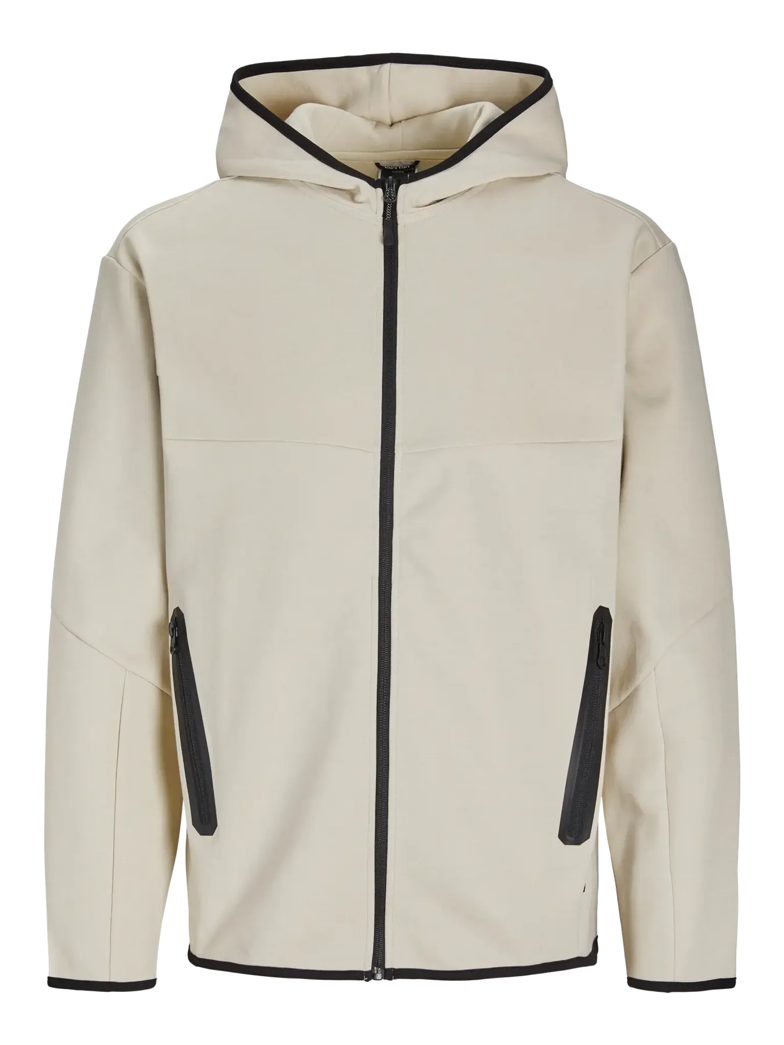 Framfickan är en halv kenguruficka, vilket ger möjlighet till praktisk förvaring av småsaker eller att värma händerna. Insidan av huvan är klädd i samma tyg som kroppen, vilket ger en enhetlig och stilren look.