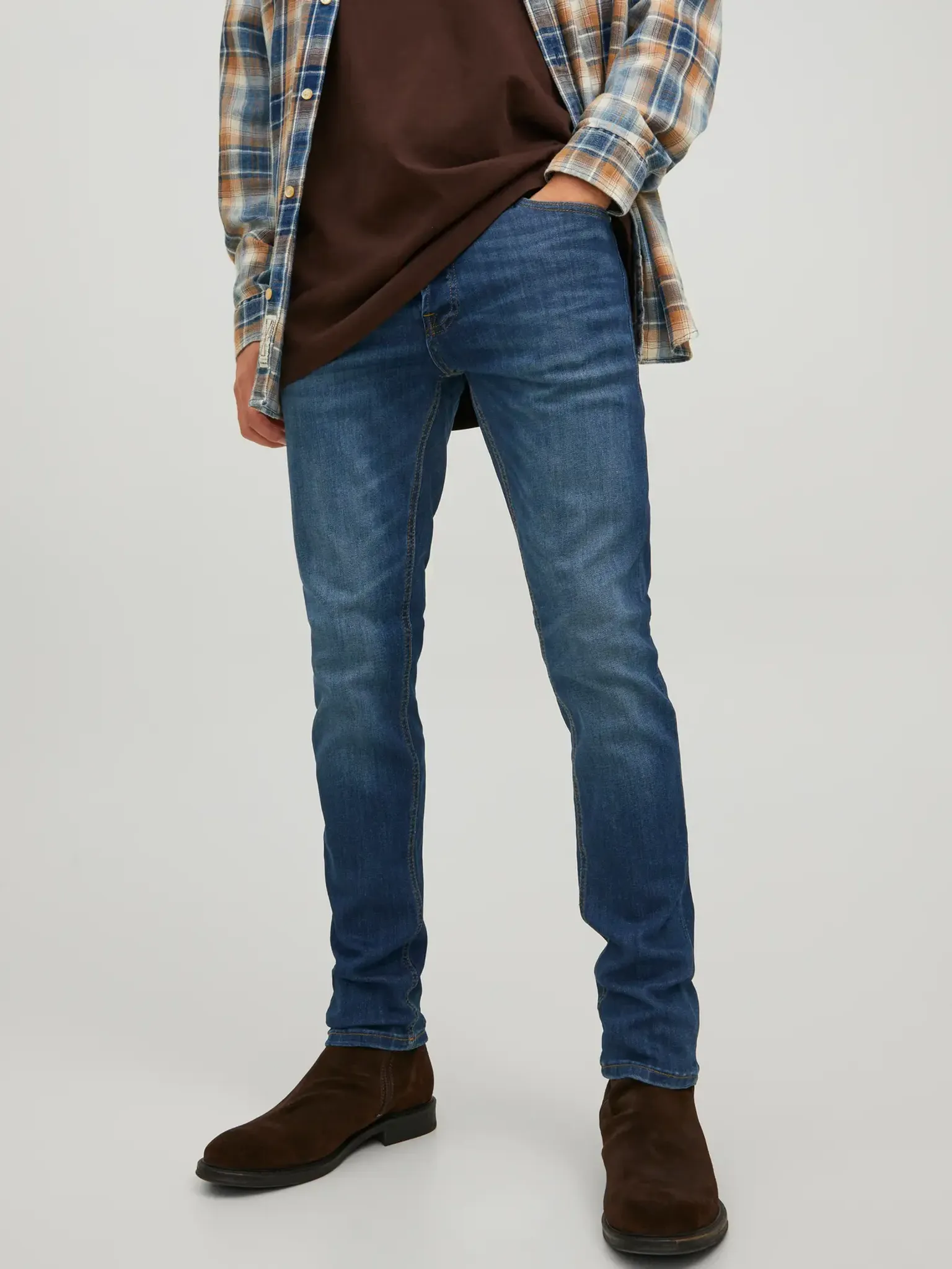 Den blå denimfärgen bidrar till den klassiska känslan och gör jeansen lätta att kombinera med olika stilar och tillfällen. Dessa slim fit-jeans är skapade för att vara en pålitlig favorit i garderoben.