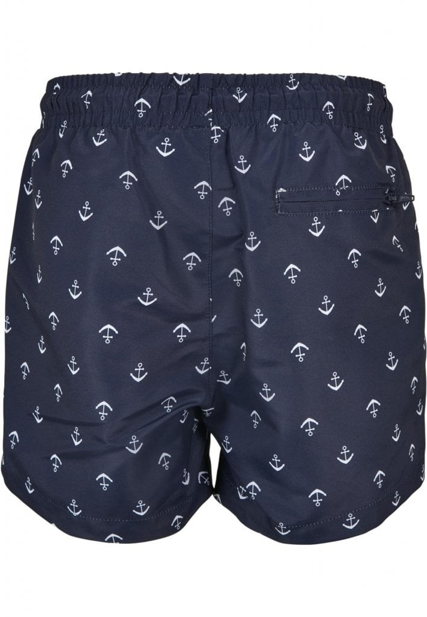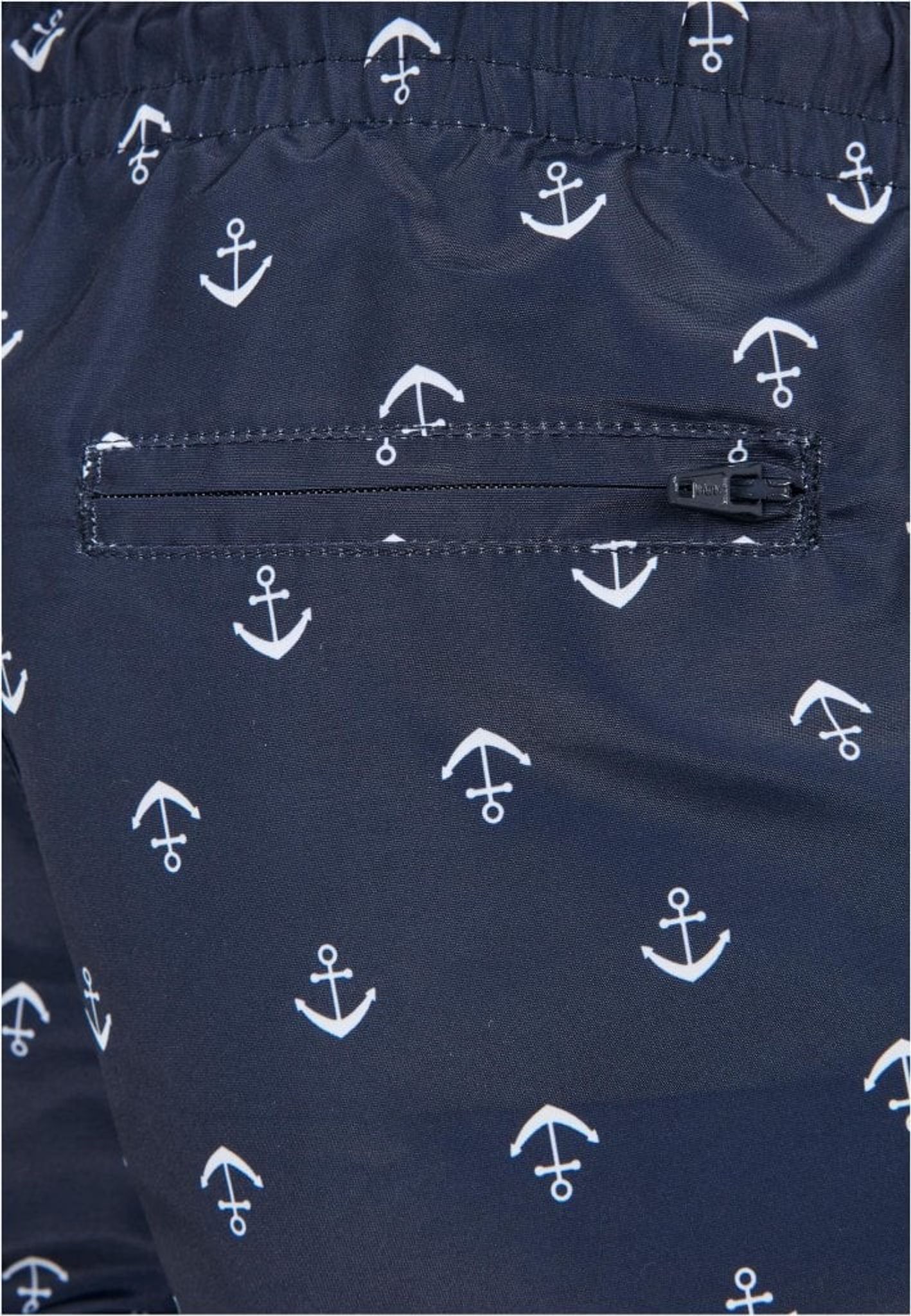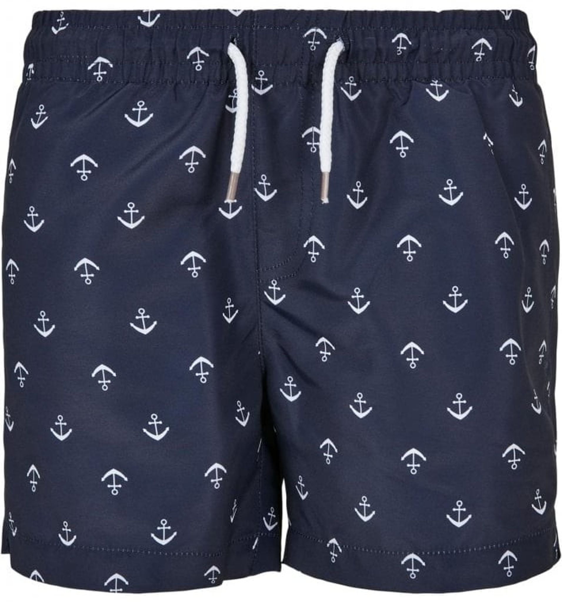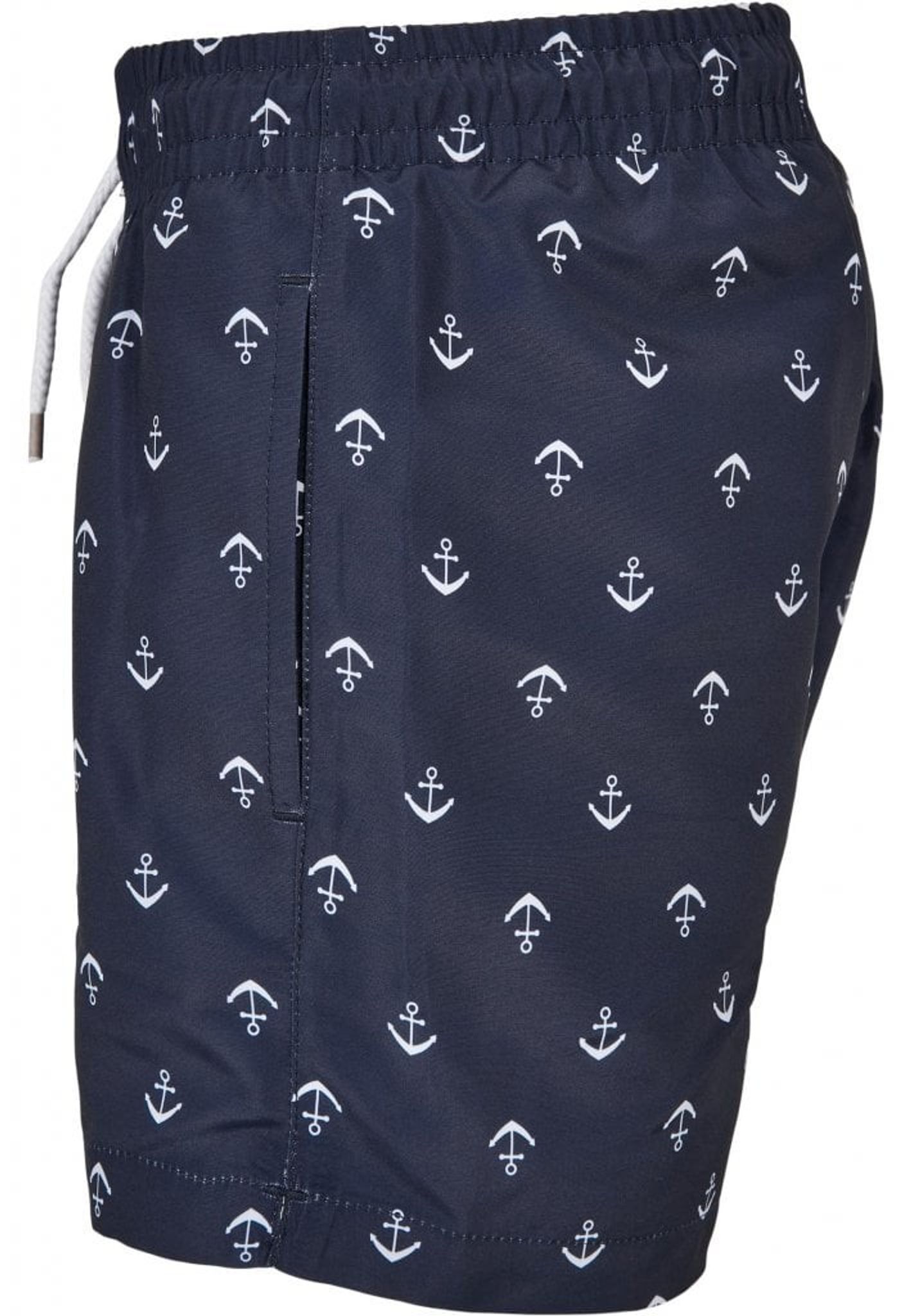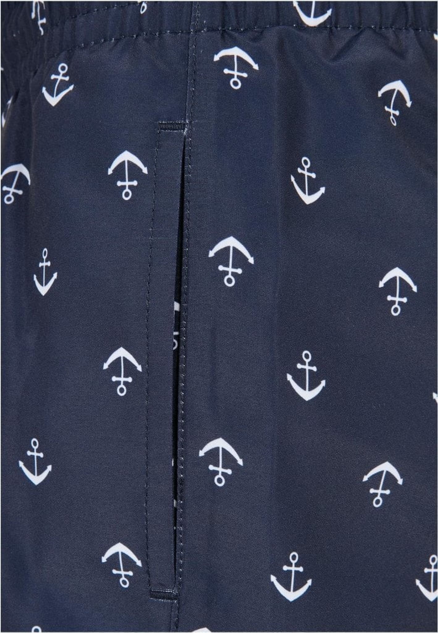 Ett par snygga marinblå badshorts med vita ankare runtom på tyget.