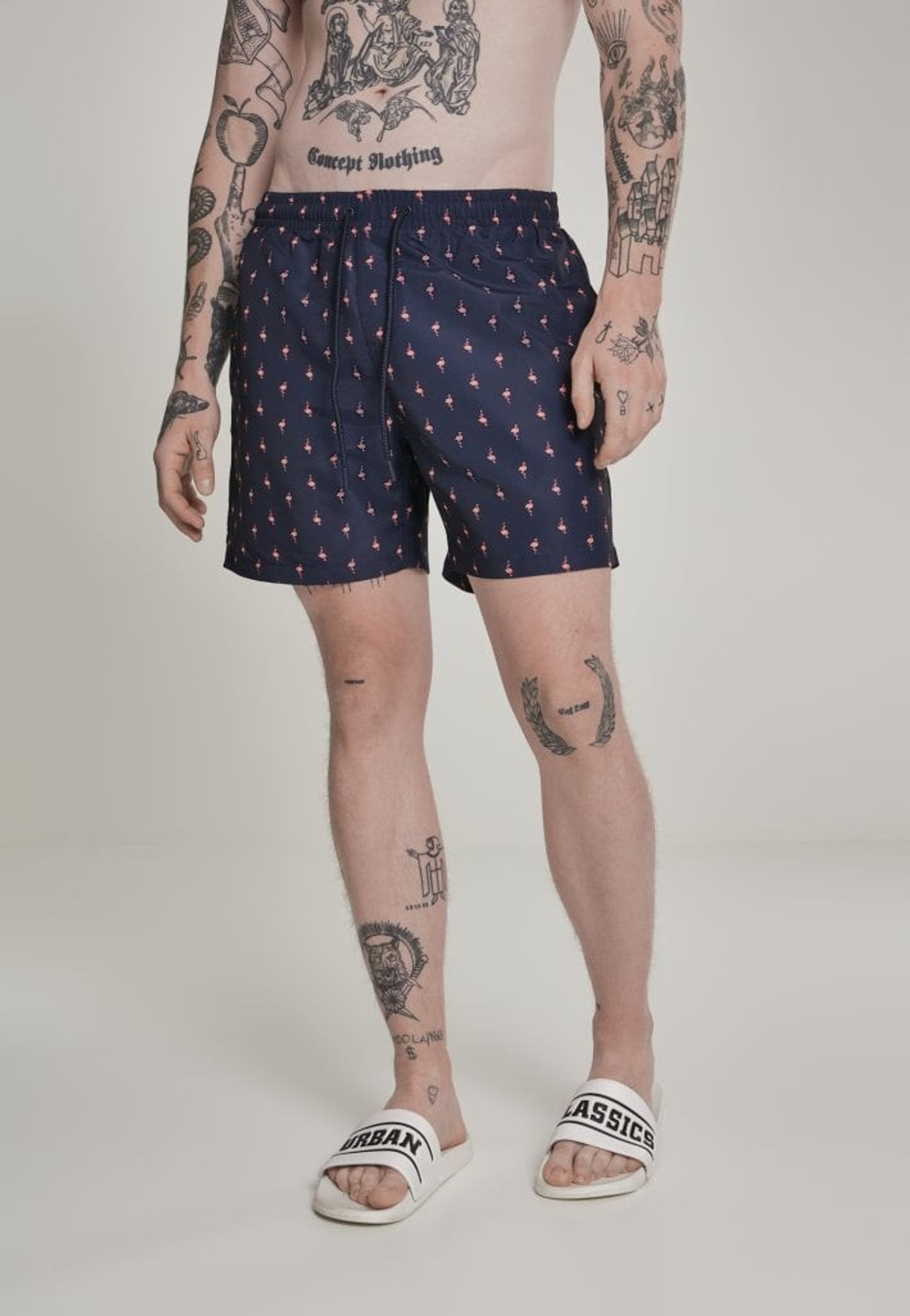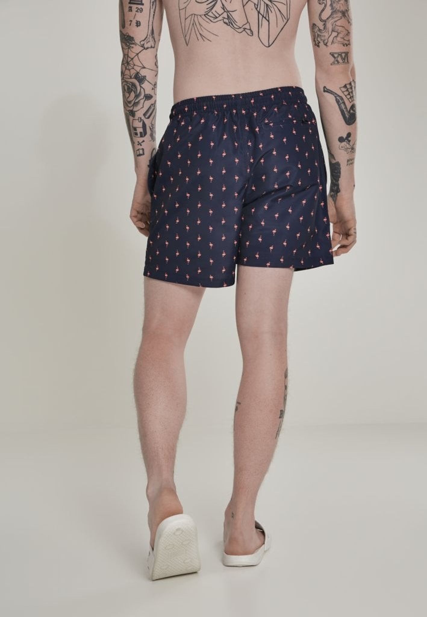 Badshorts med rosa flamingos herr