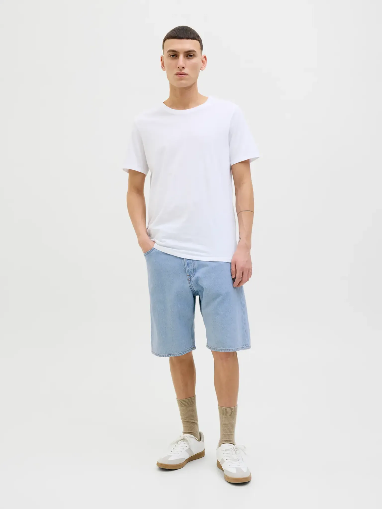 Baggy fit shorts i denim är tillverkade av ett slitstarkt twilltyg som kännetecknas av en färgad varptyg och en ofärgad väft. Dessa shorts har en hög midja och en rymlig passform med breda benöppningar, vilket ger en avslappnad och komfortabel stil.