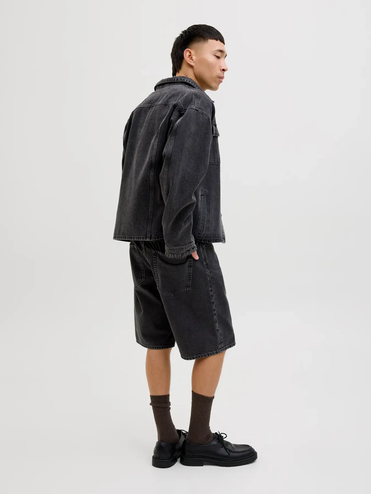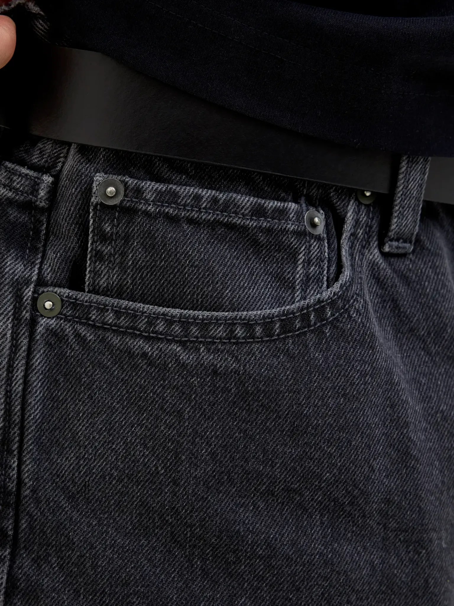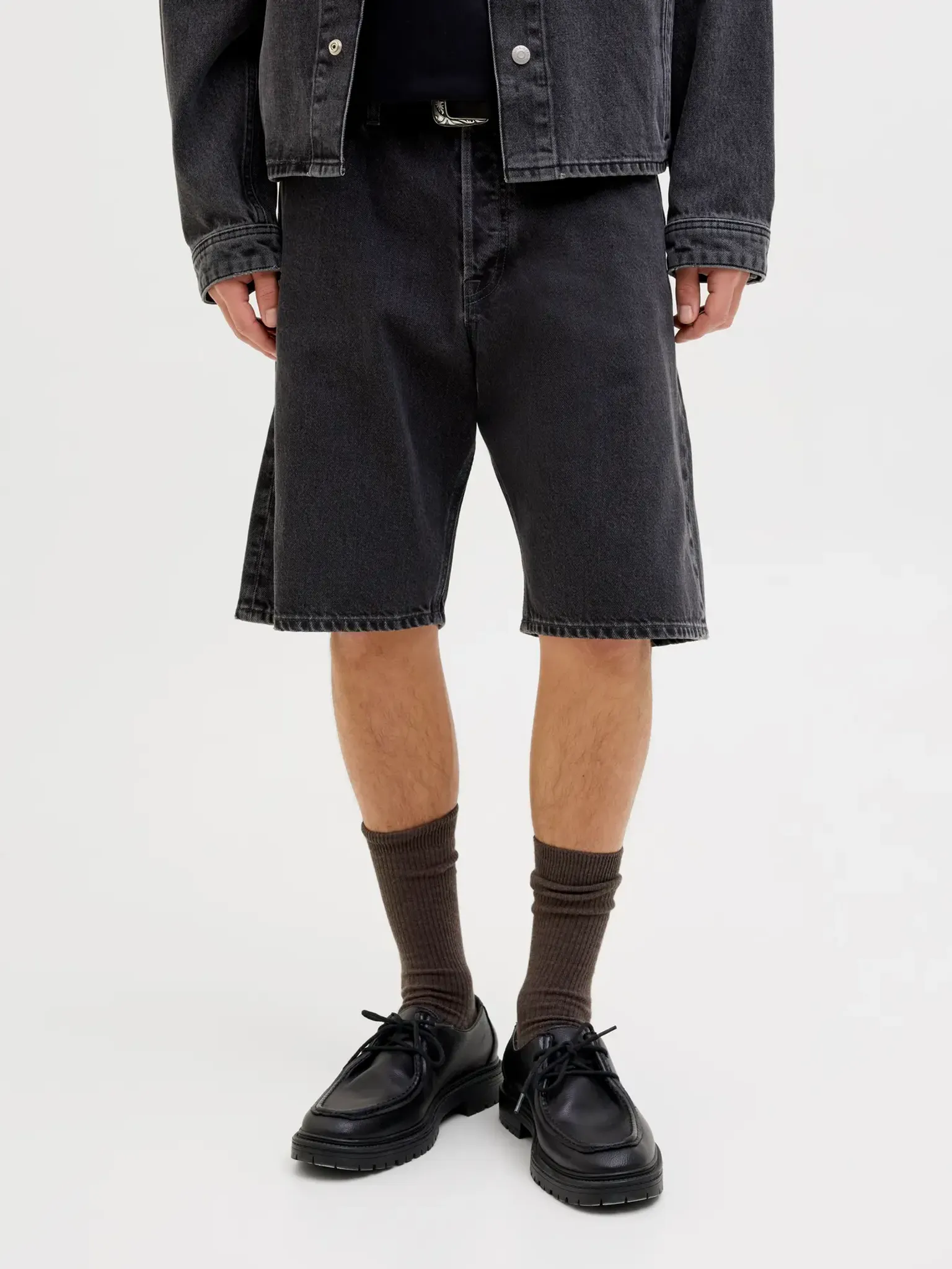 Baggy fit shorts i denim är tillverkade av ett slitstarkt tyg med en karakteristisk twill-vävning. Tyget har en färgad varp och en ofärgad inslagstråd som ger en unik struktur.