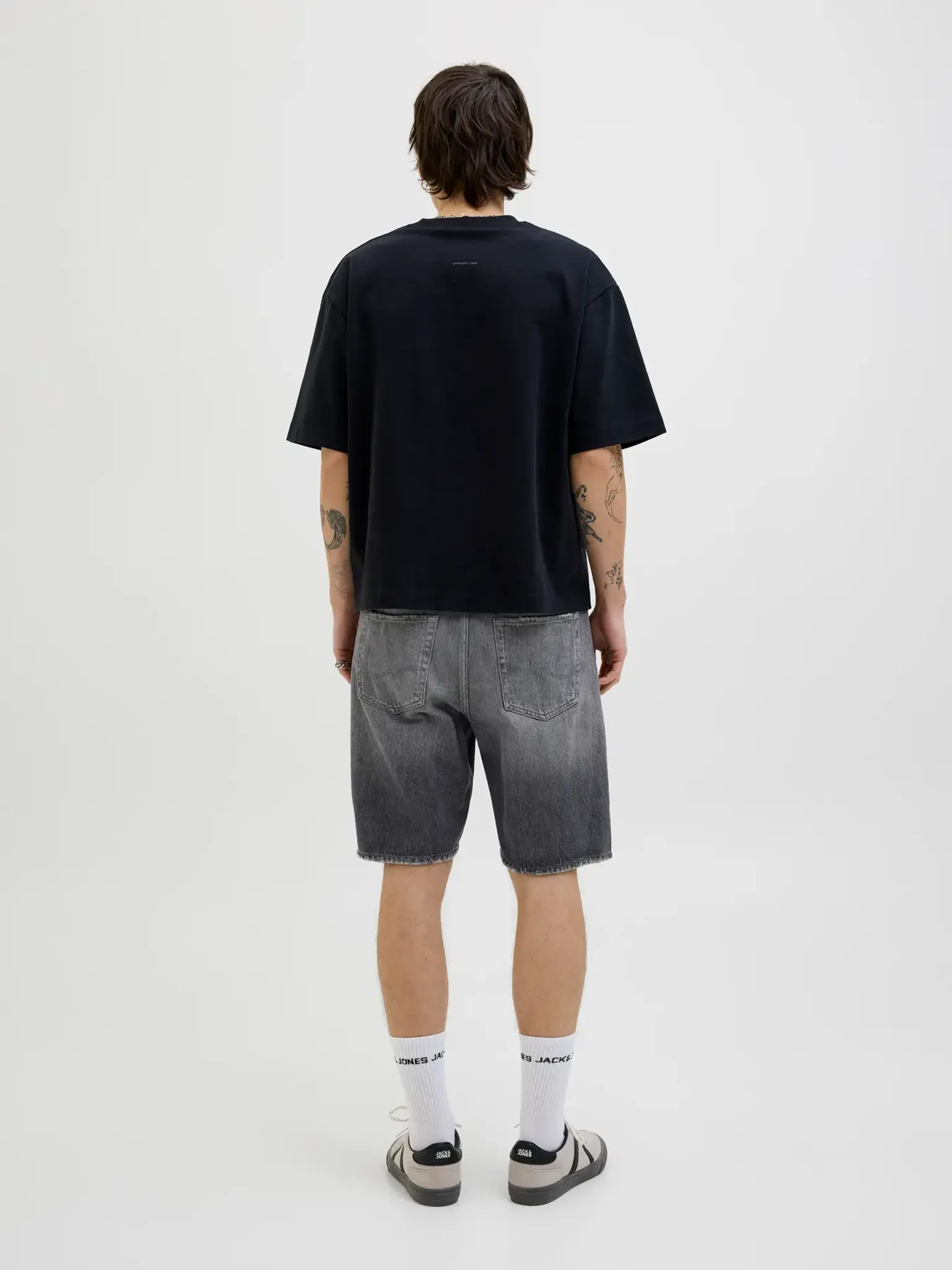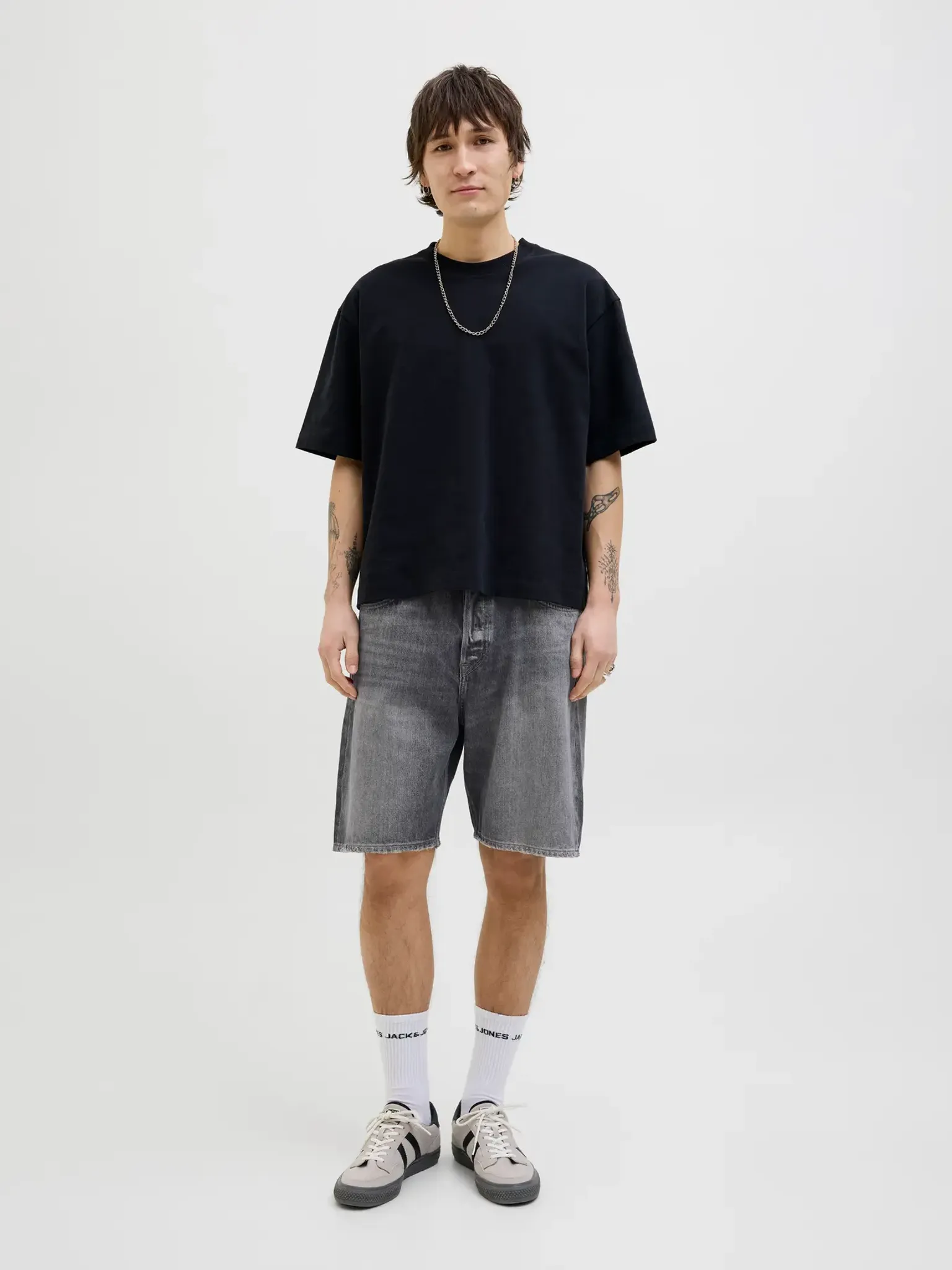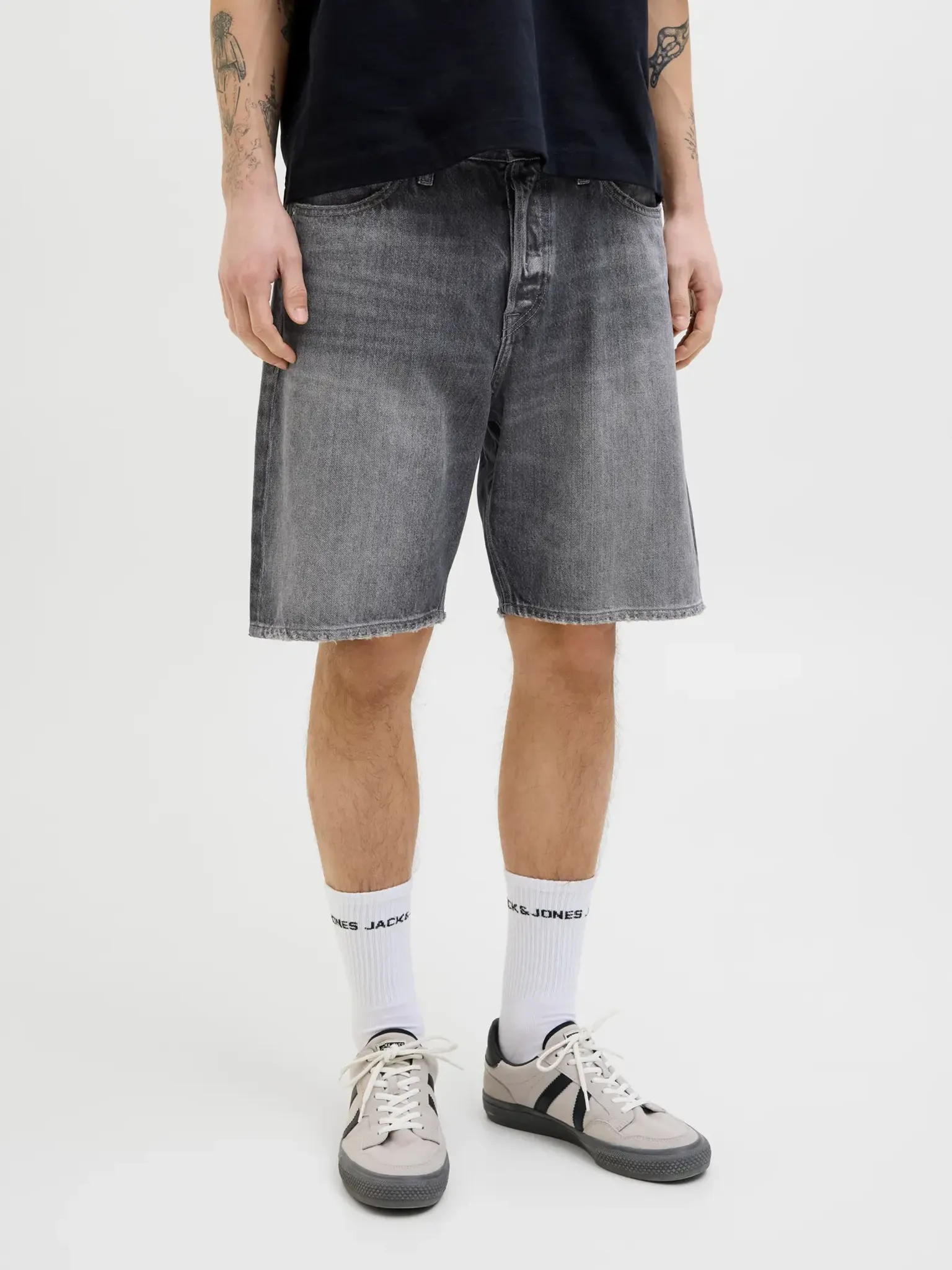 Shortsen är tillverkade av ett slitstarkt denimtyg med en twill-vävning och består av nittiofem procent bomull och fem procent återvunnen bomull. Den stonewashade finishen ger ett urtvättat och slitet utseende, vilket ger en tidlös och klassisk stil.