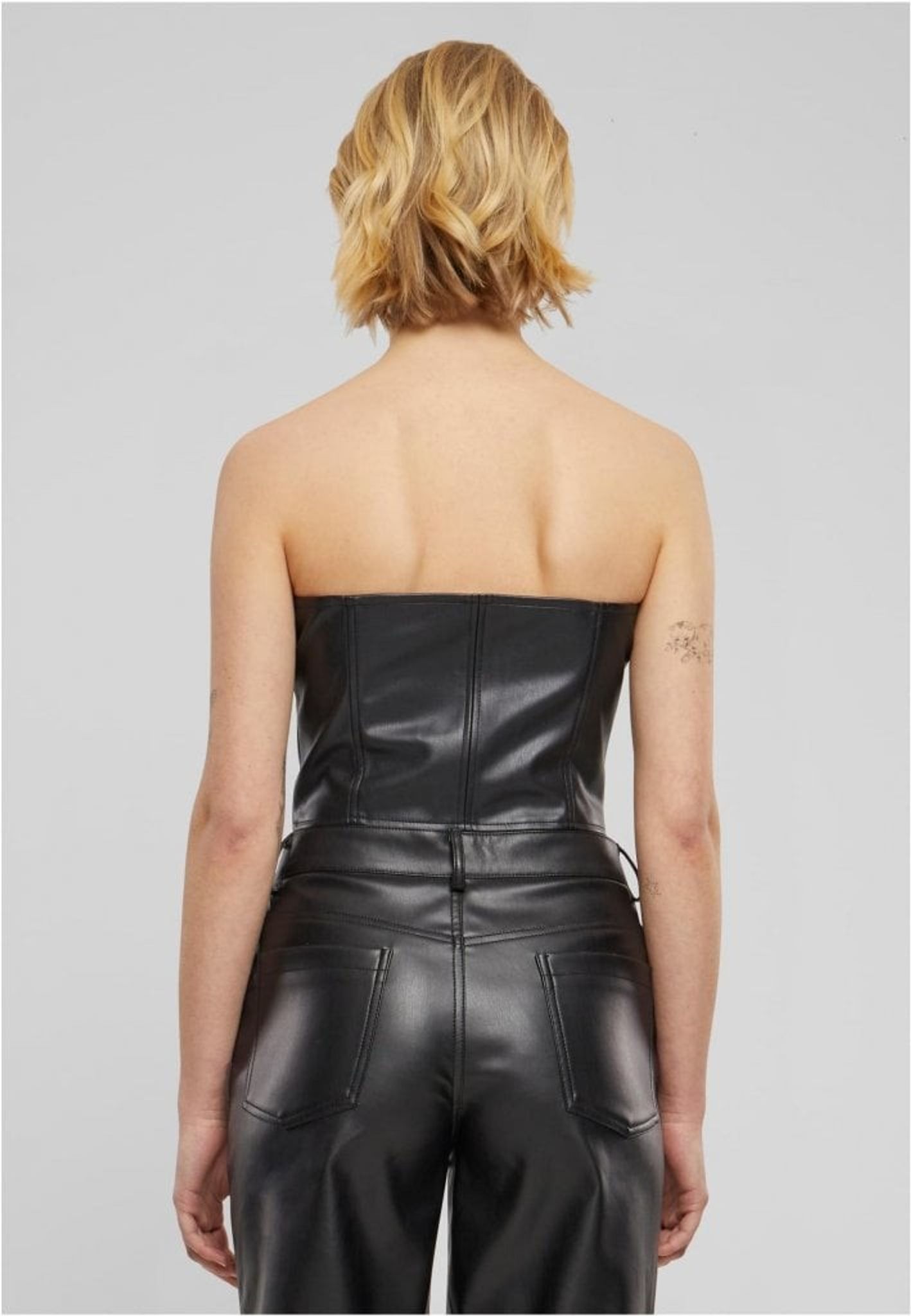 Dyk ner i trendvärldens djup med vår konstläderkorsett. Vackert designad för att ge dig en kroppsnära passform, denna svarta korsett i konstläder framhäver din siluett på ett vackert och sofistikerat sätt. Skapa ett fashionabelt statement med denna tuffa, moderna tolkning av klassisk korsettmåttning. Framställd i ett dragkedjeutseende i fronten, erbjuder denna konstläderkorsett en enkel men elegant design.