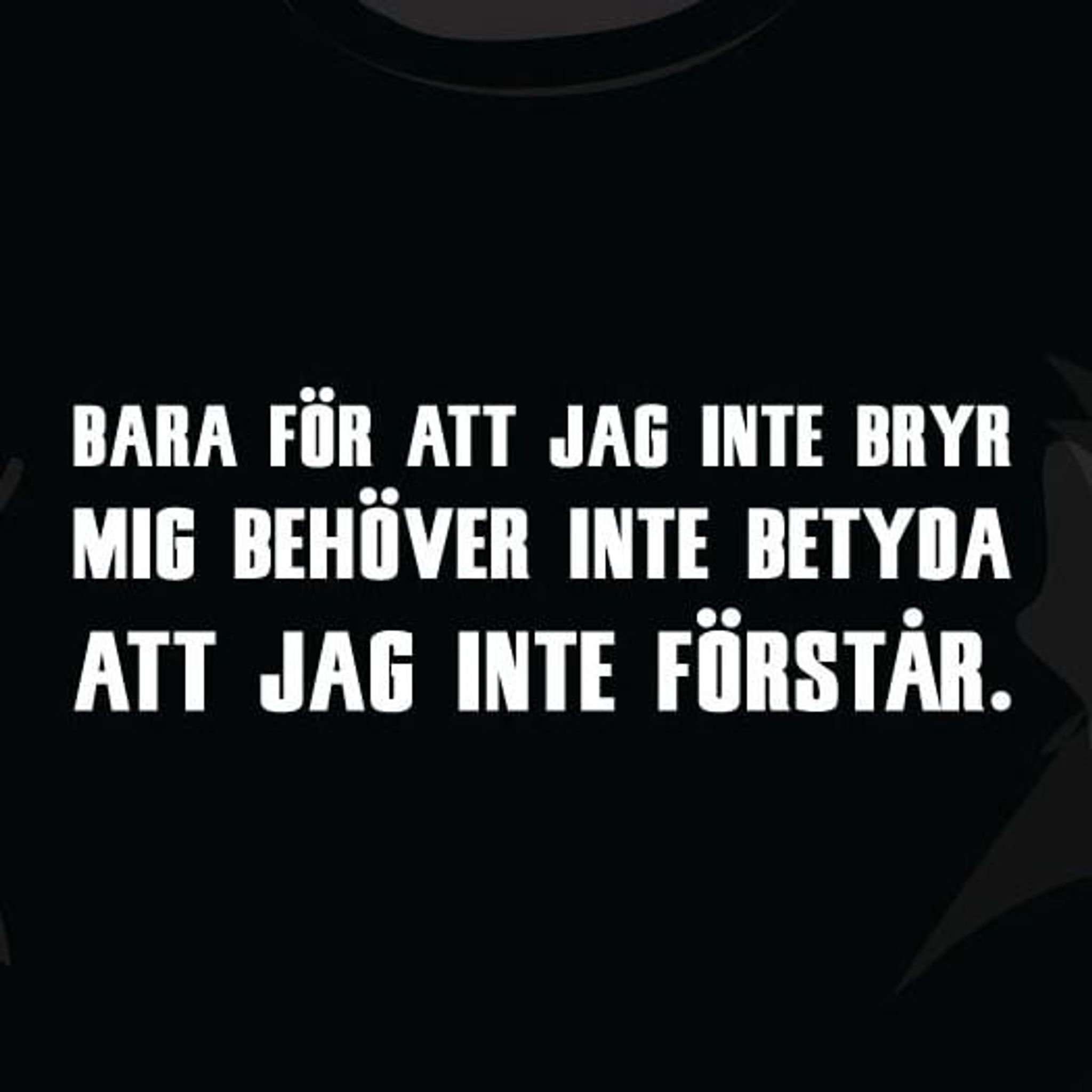 Denna svarta T-shirt pryds av det djärva och tankeväckande trycket: "BARA FÖR ATT JAG INTE BRYR MIG BEHÖVER INTE BETYDA ATT JAG INTE FÖRSTÅR." Detta är en t-shirt som ger uttryck för en personlighet som är både medveten och avslappnad; perfekt för den som vill visa upp sin sarkastiska sida eller bara uppskattar en t-shirt med attityd.