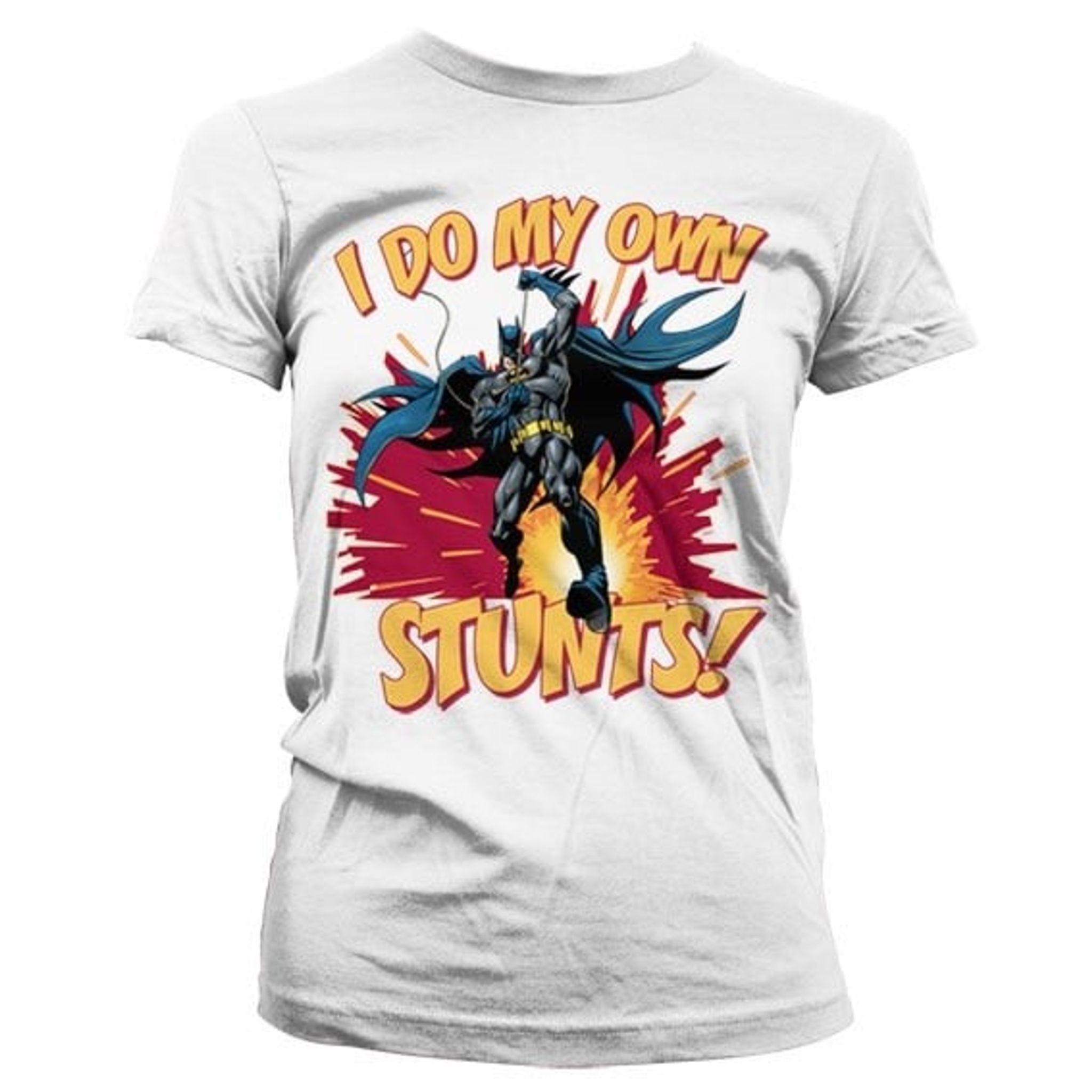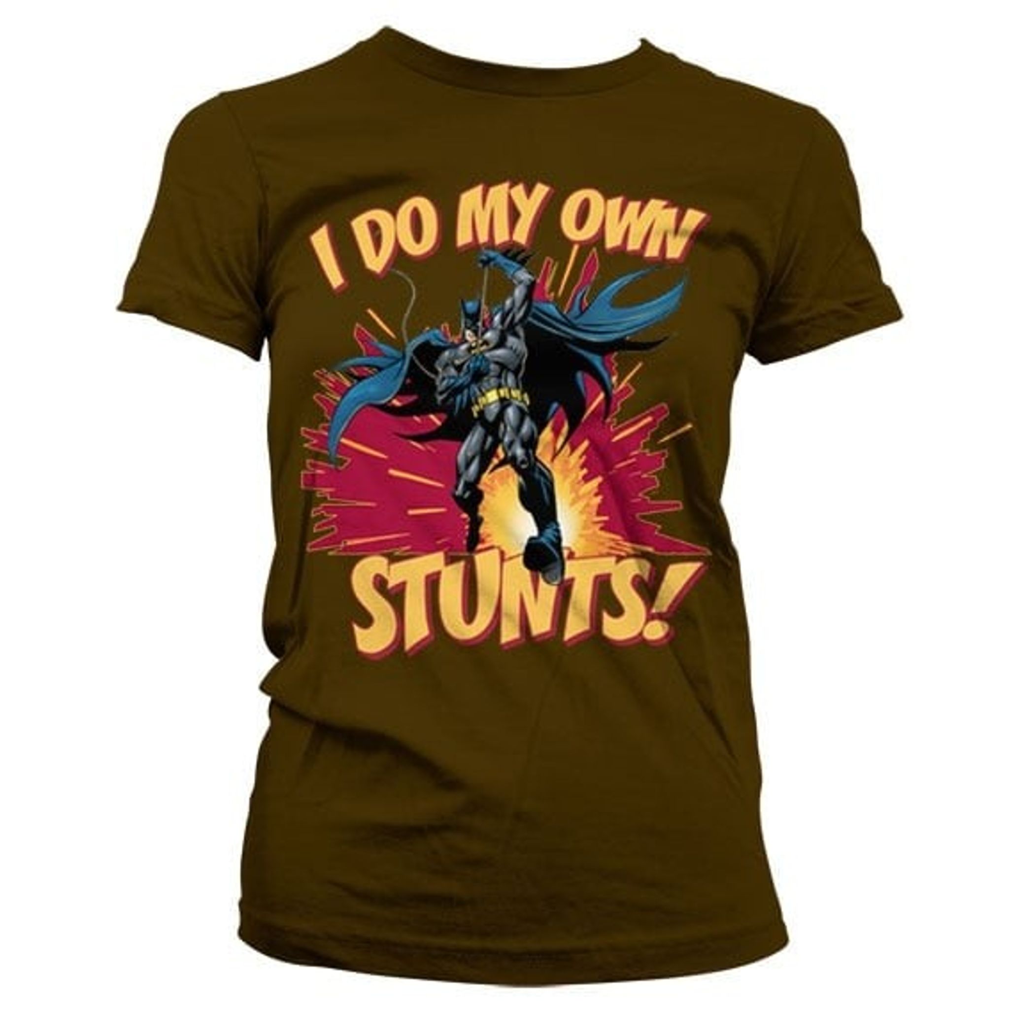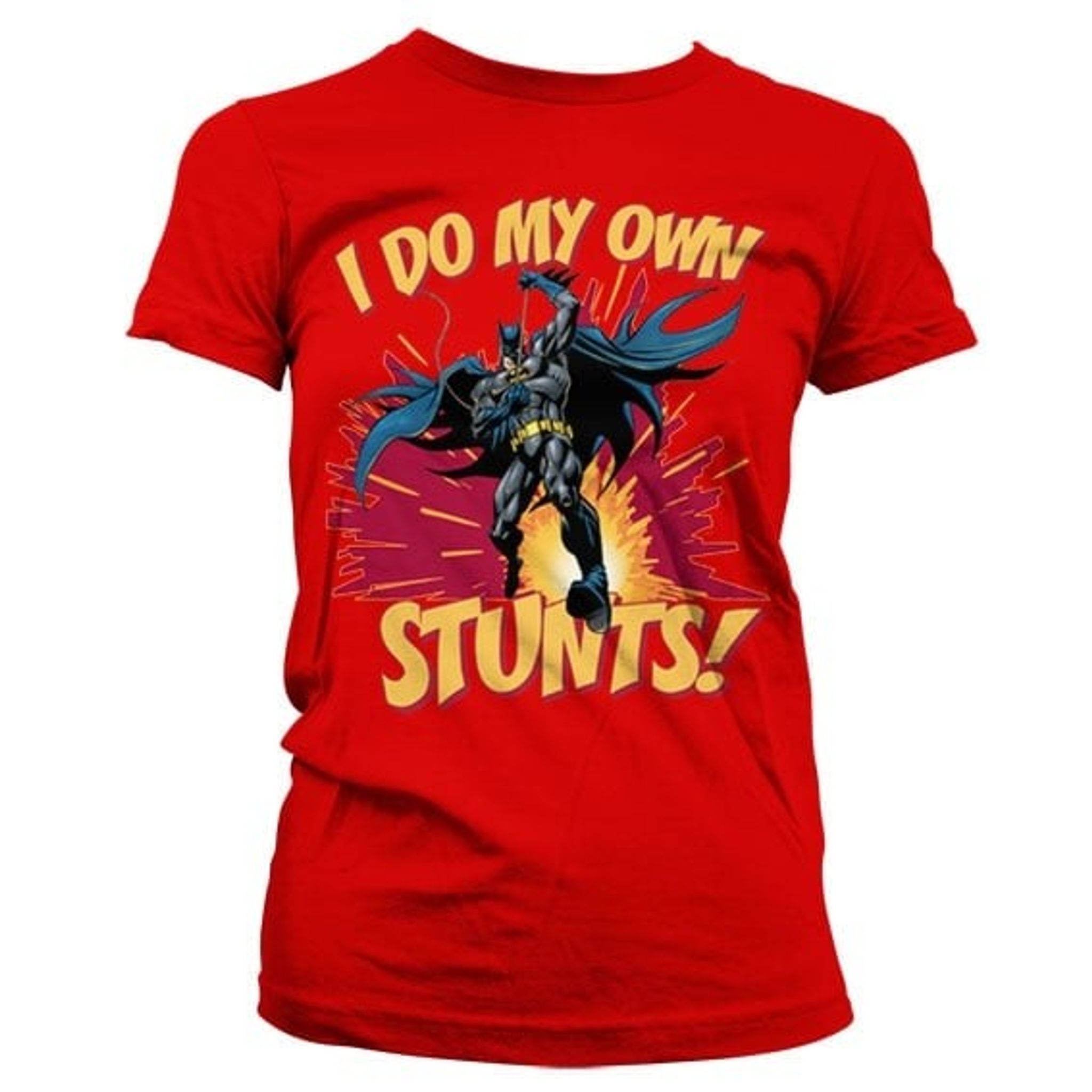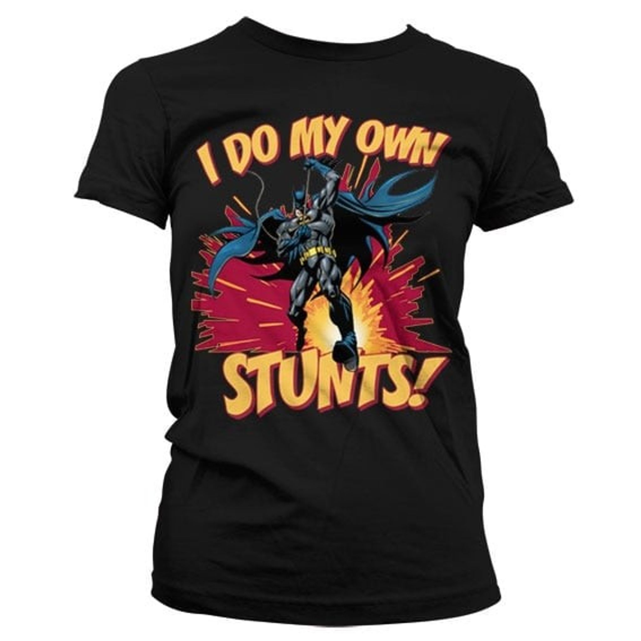 Denna Girly Tee fångar perfekt Batman's mod och handlingskraft, med orden "I Do My Own Stunts!" som tydligt visar hans självförtroende och hängivenhet till att göra sina egna farliga stunts.