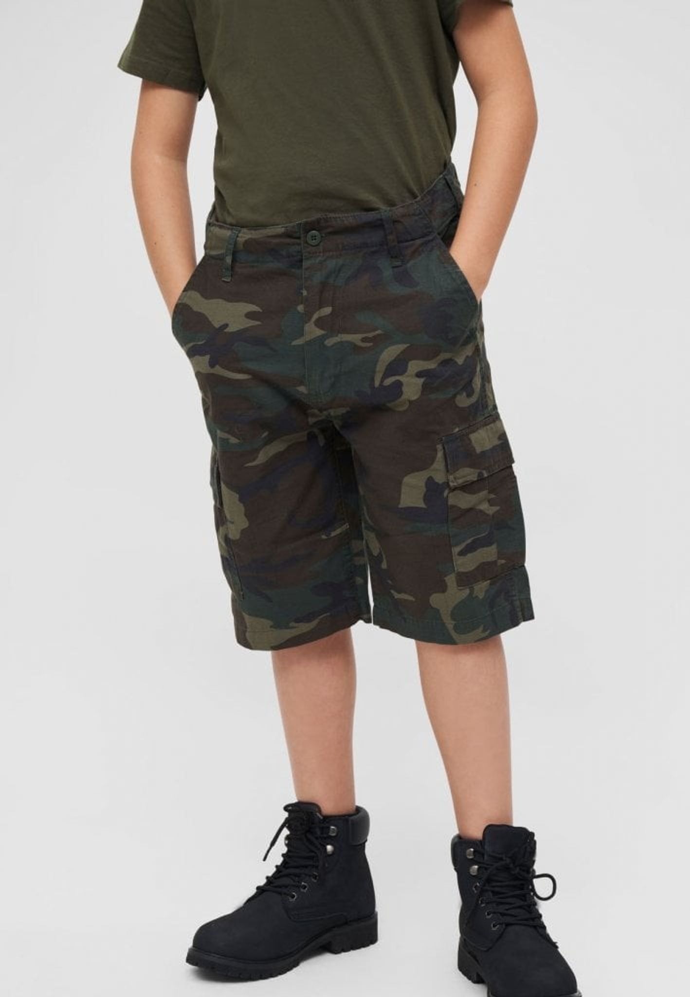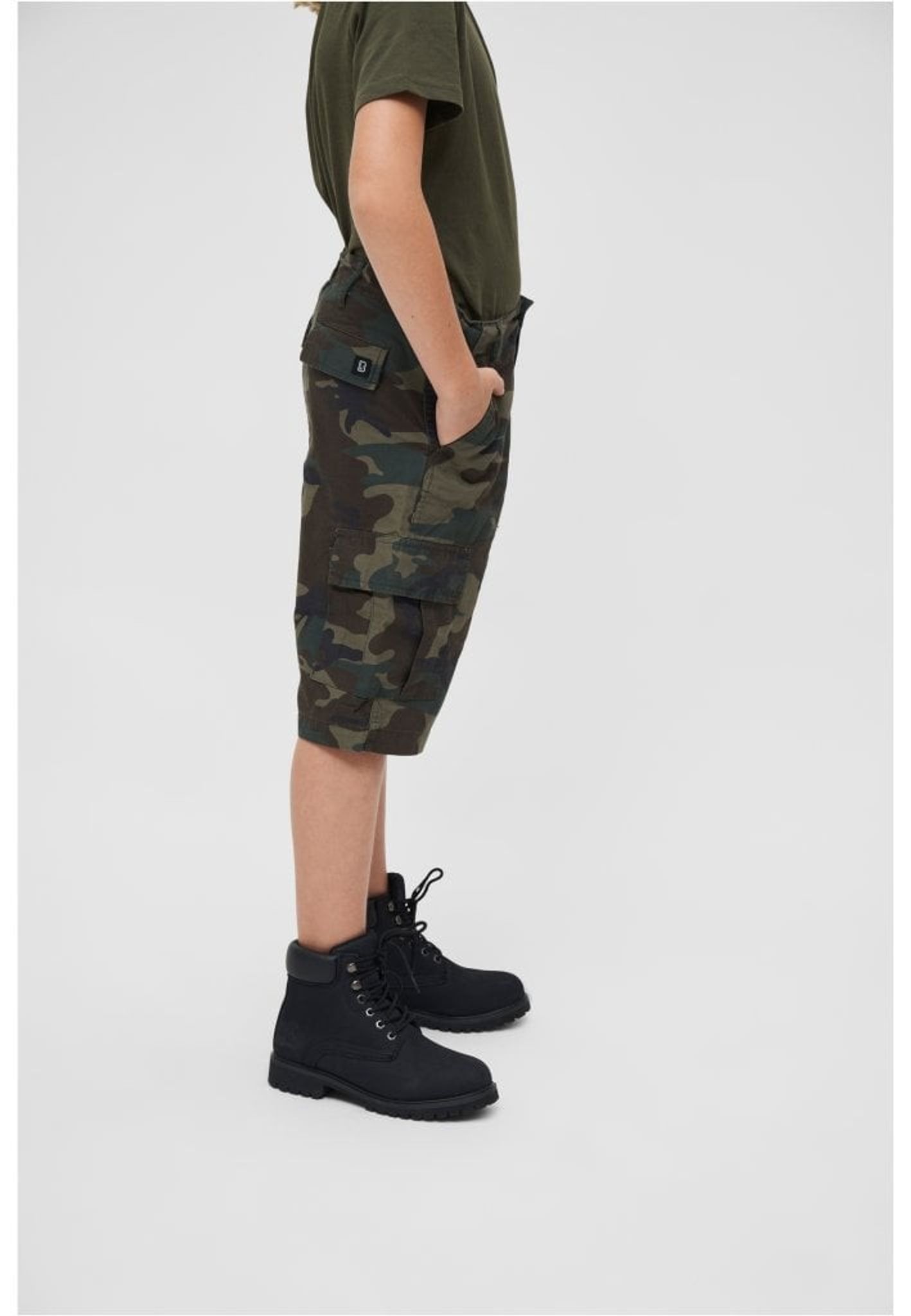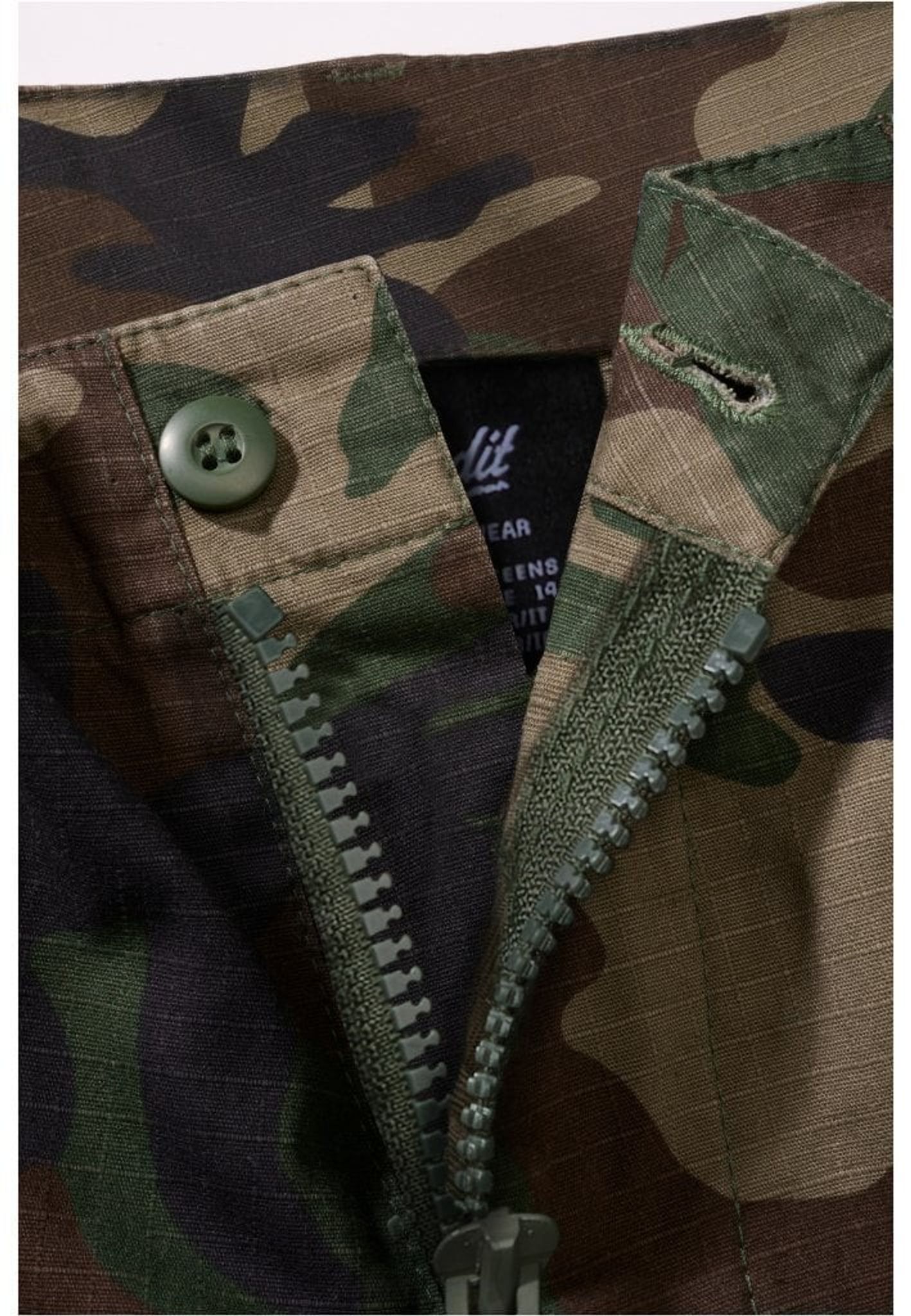 Ett par tuffa BDU-shorts (Battle Dress Uniform) i barnstorlekar. Tyget har klassiska amerikanska woodland kamouflaget och ett förstärkt ripstop-tyg.