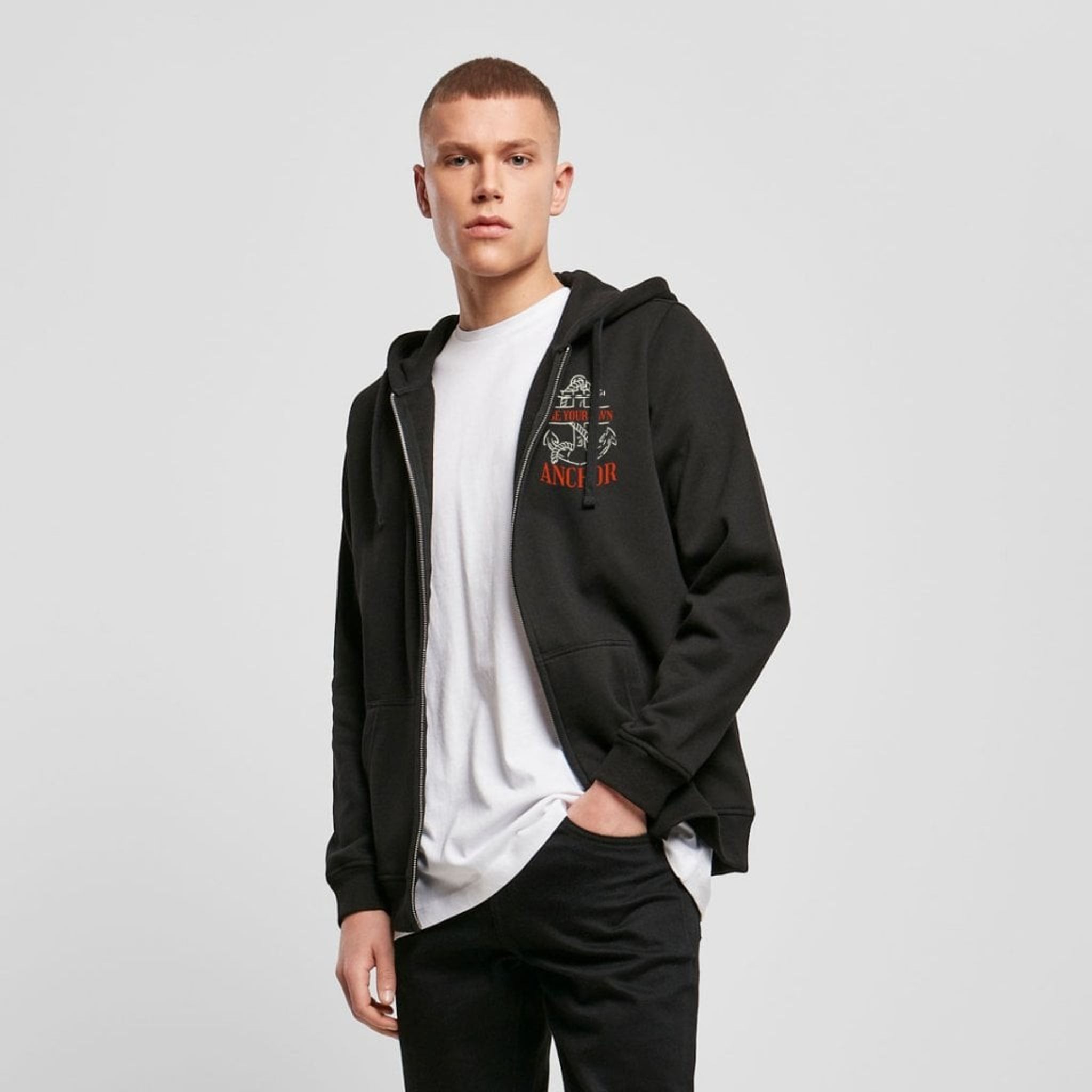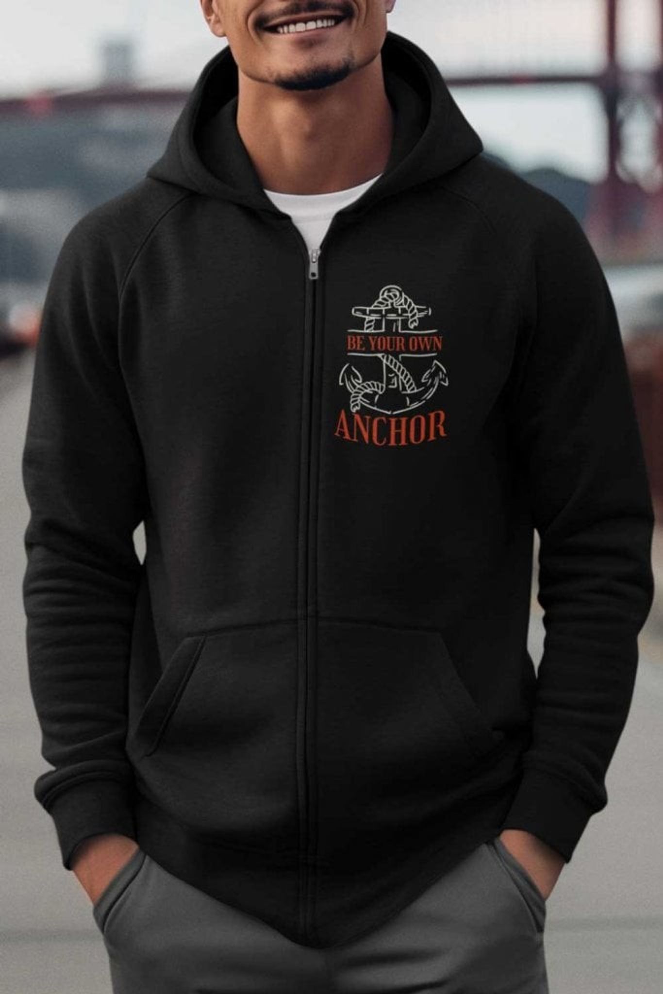 Utforska din självständighet och styrka med denna stilrena ziphoodie från Odd Sailor Apparel. Med en detaljerad design som inkluderar ett stiliserat ankare och texten "Be your own anchor", påminner denna hoodie dig om att stå fast och vara din egen styrka i alla situationer. Perfekt för den som vill ha både komfort och ett inspirerande budskap nära till hands.