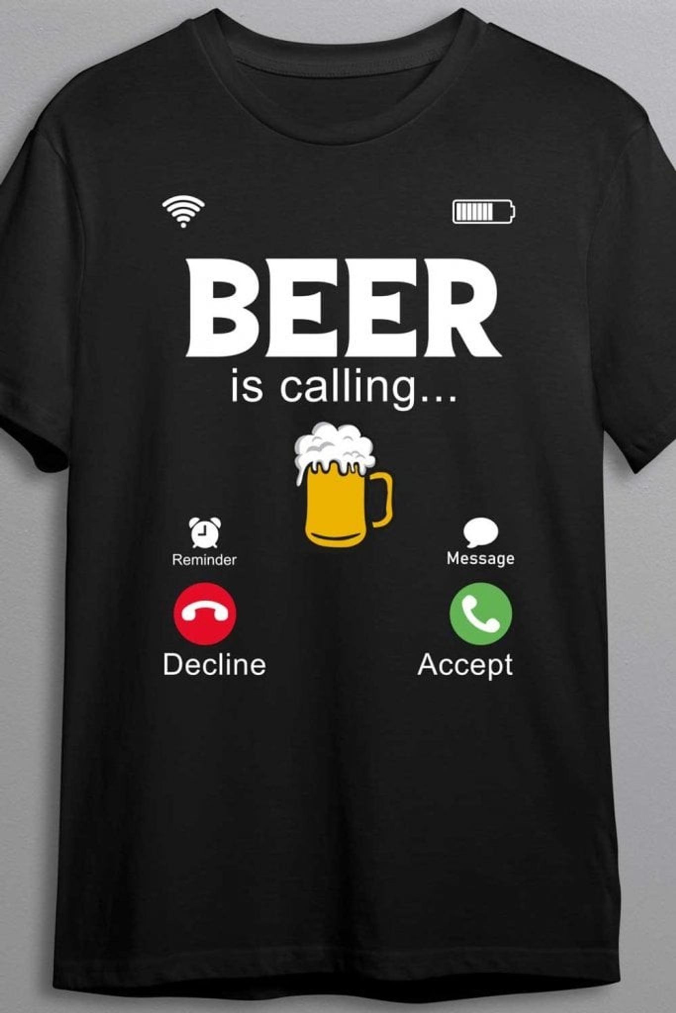 När törsten ringer finns det bara ett svar! Denna T-shirt är för den som alltid är redo att ta emot samtalet från sin bästa vän – ölen. Med en design inspirerad av en inkommande samtalsskärm får du valet att antingen ignorera eller omfamna ditt öde. Ett glas skummande öl lyser upp displayen, och vi vet alla vad rätt beslut är.