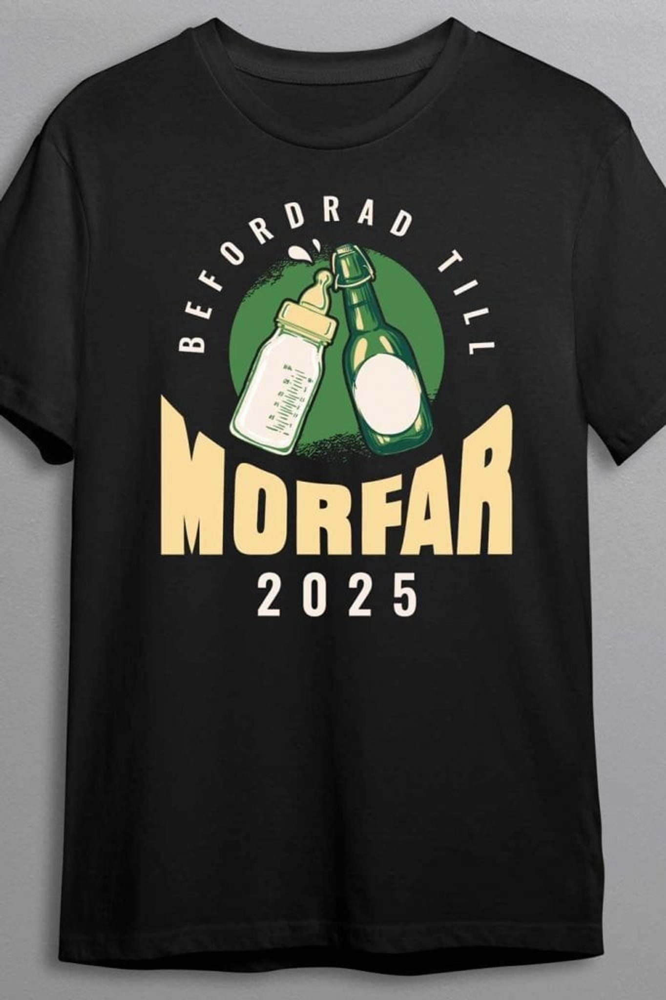 Denna "Befordrad till Morfar" T-shirt är den perfekta presenten till alla framtida morfäder! Med sin humoristiska design, där en nappflaska och en ölflaska pryder trycket, symboliseras både den nya rollen som morfar och glädjen i att fira den stora nyheten.