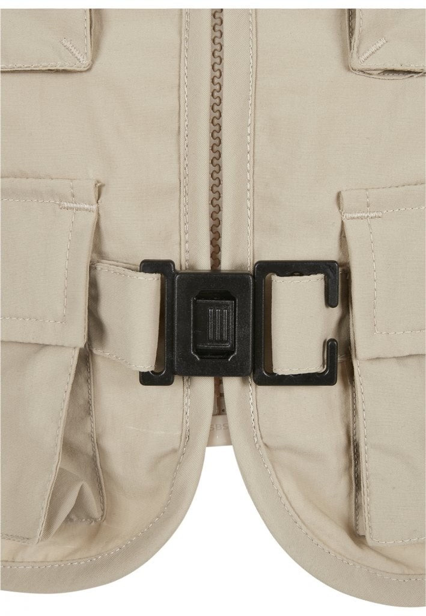 En av västens utmärkande egenskaper är de fyra bälgfickorna på framsidan. Fickorna ger gott om förvaringsutrymme för småsaker, vilket gör den till ett utmärkt alternativ för utomhusäventyr eller bara för att springa ärenden i stan. Karbinhaken på vänster axel ger en extra touch av stil och avrundar västjackans design perfekt.