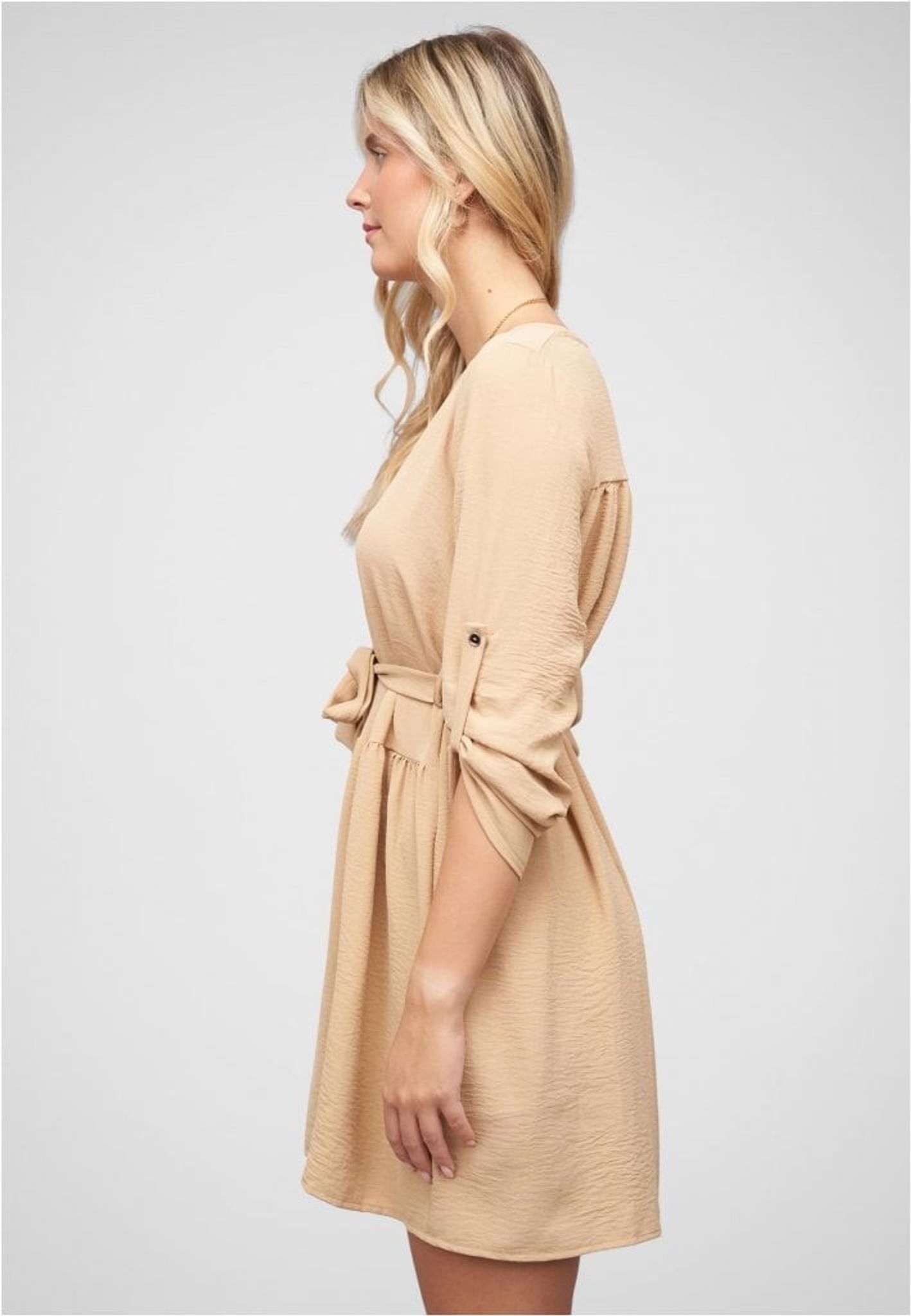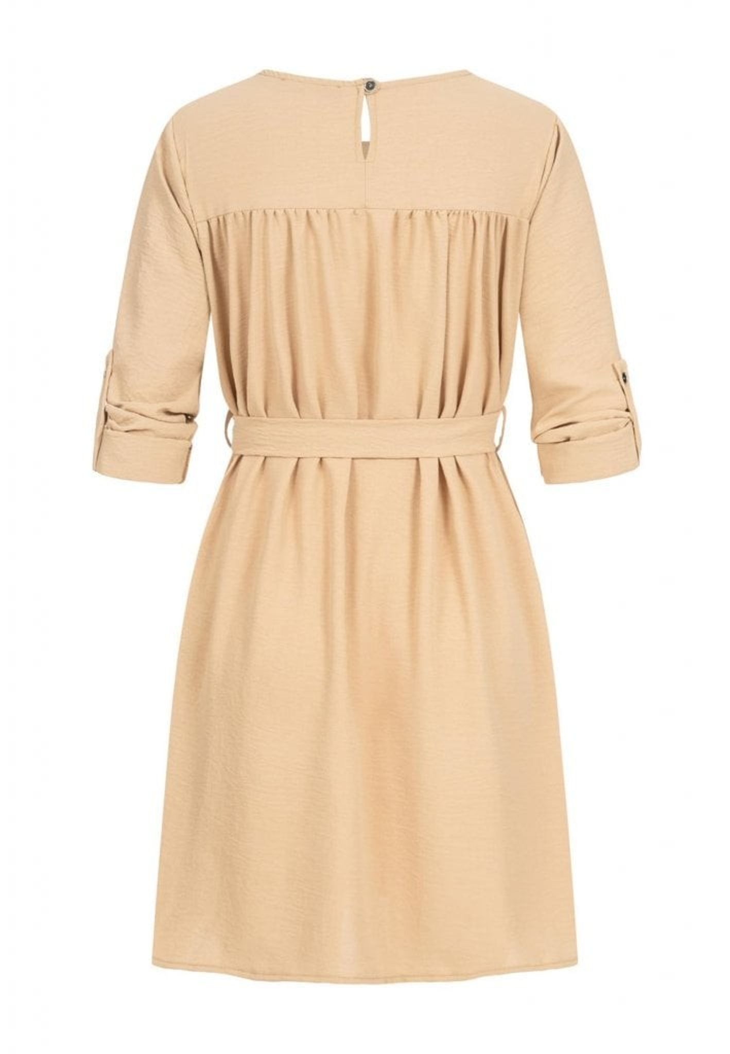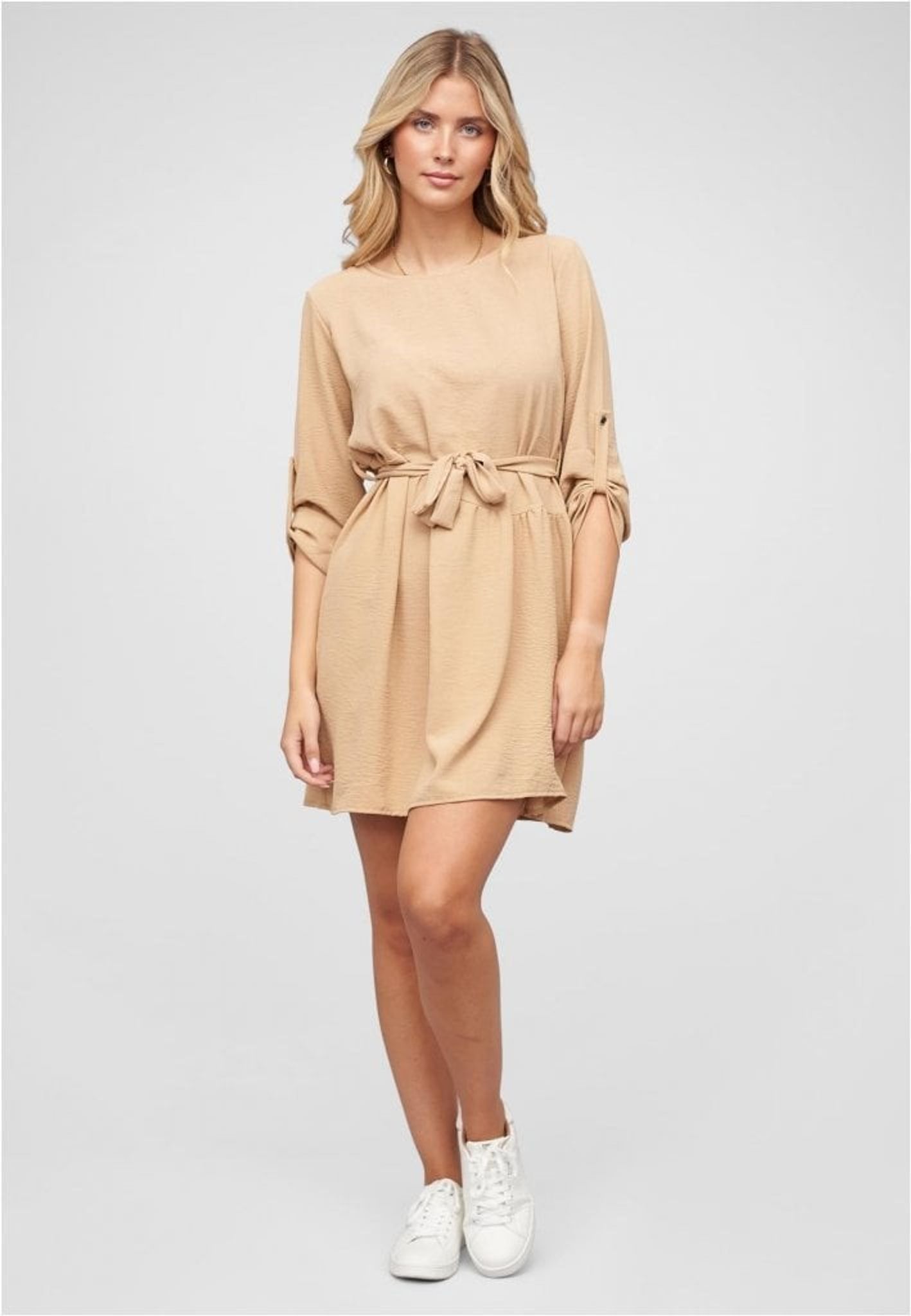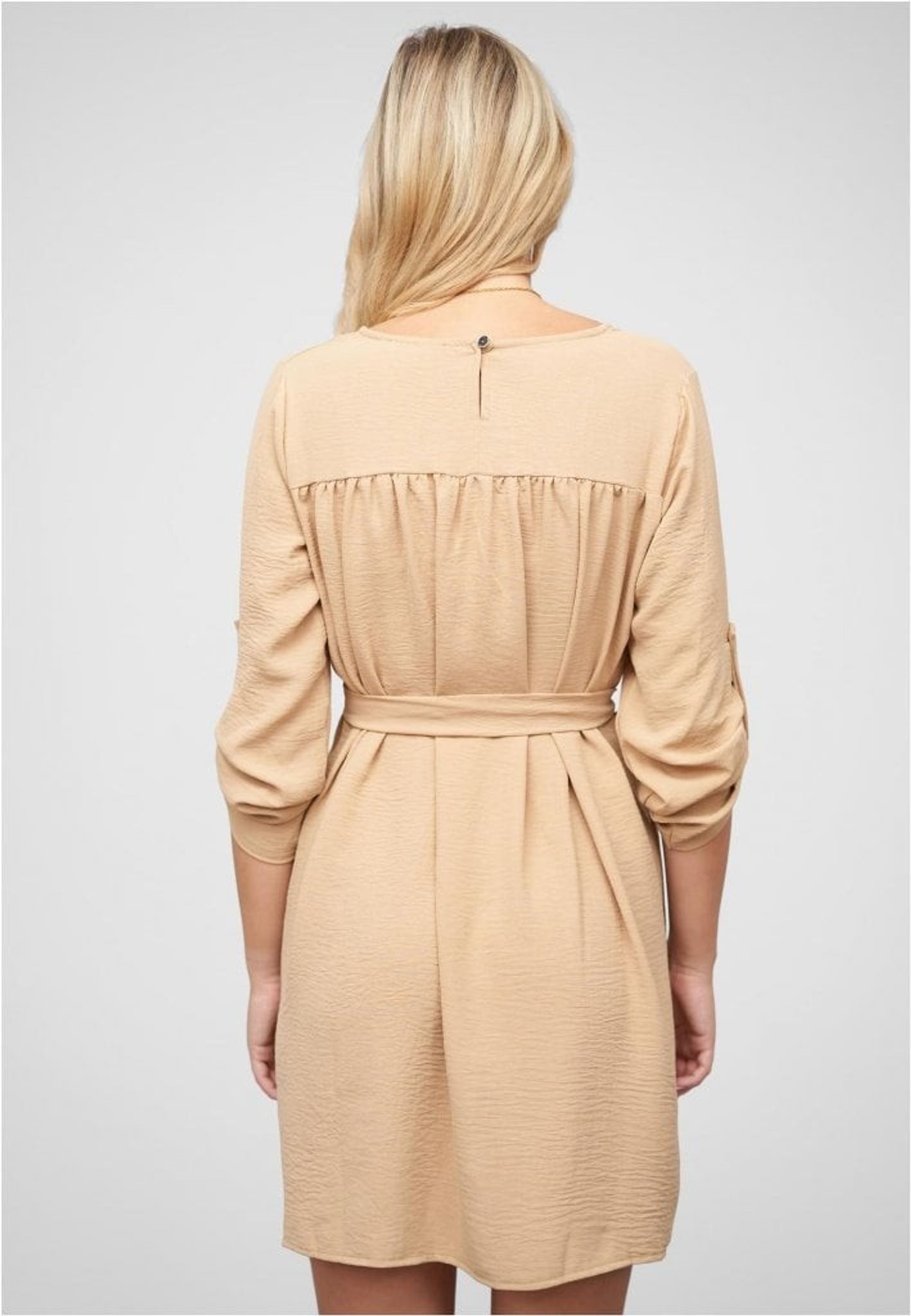 Med sin tidlösa design passar den perfekt för både vardag och fest. Klänningen är lätt att styla med olika accessoarer för att skapa din unika look. Välj Beige Turn-Up Klänningen för att känna dig både snygg och bekväm, oavsett tillfälle.