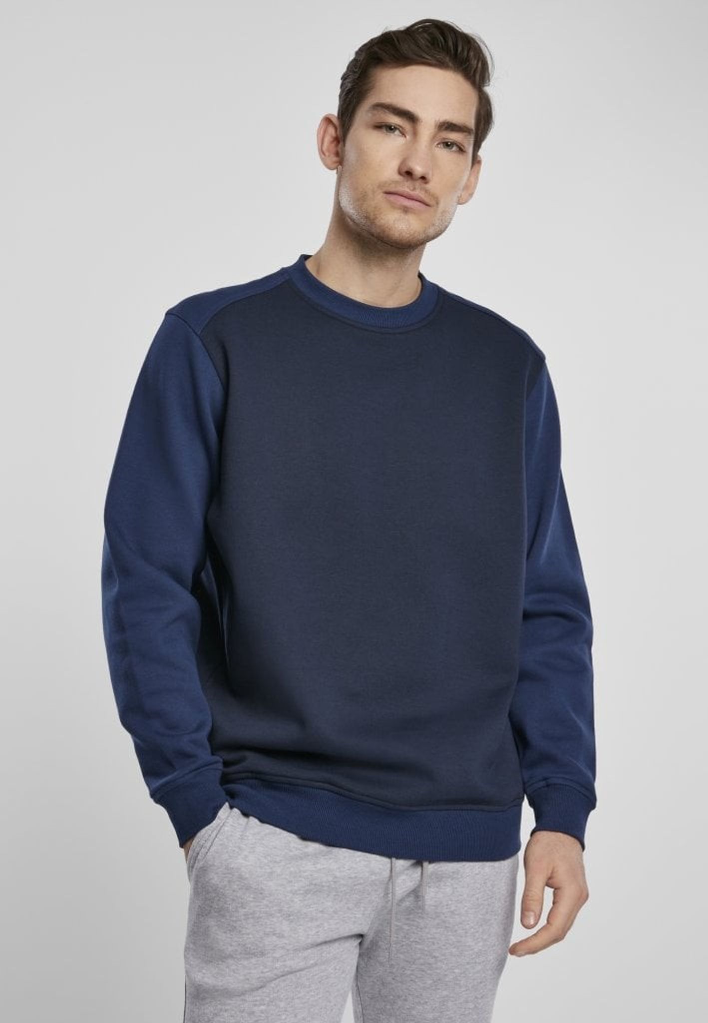 Eftersom de blåa färgerna är så nära varandra så blir tröjan extra elegant och stilig i all sin enkelhet.
