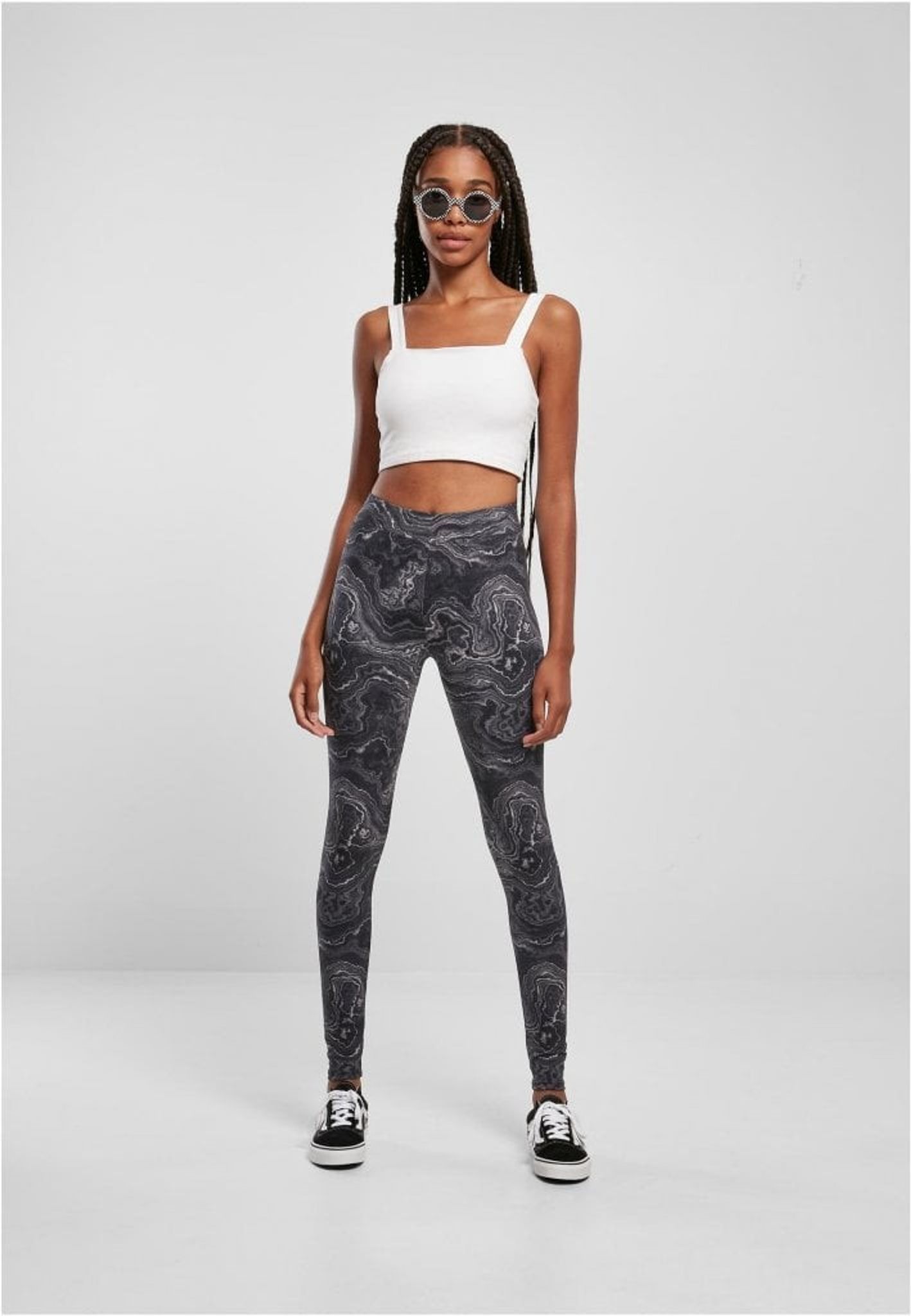 Svarta leggings med vitt oljemönster runtom hela tyget.