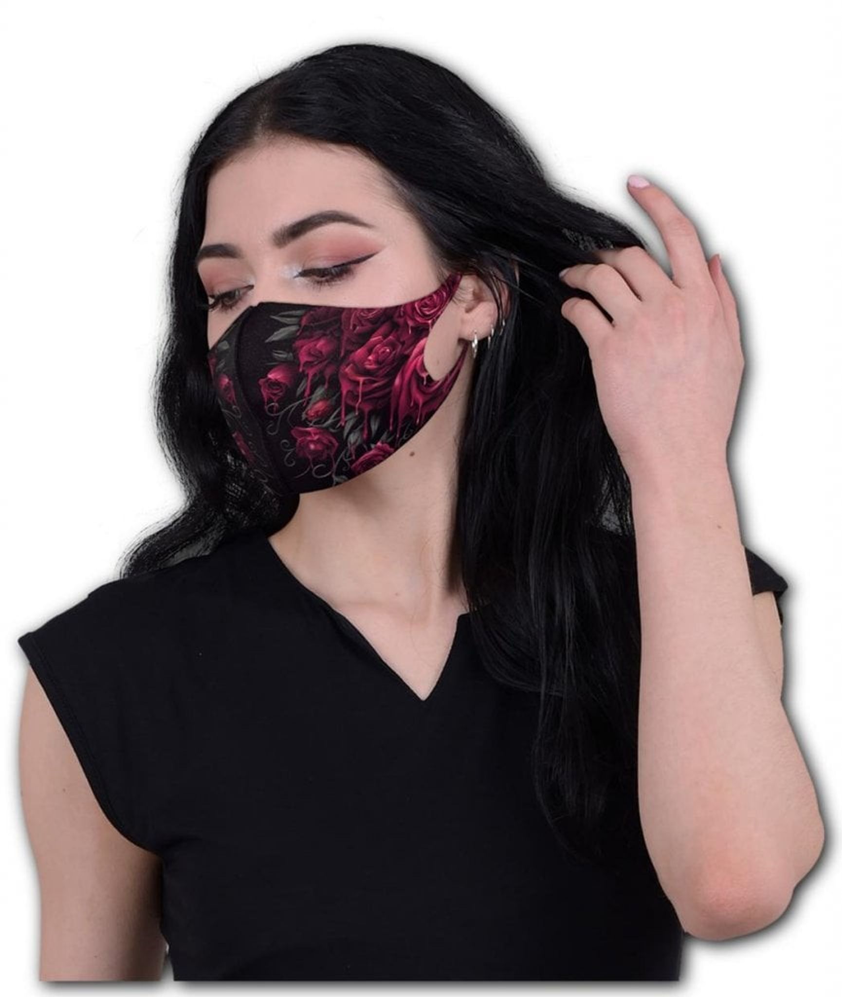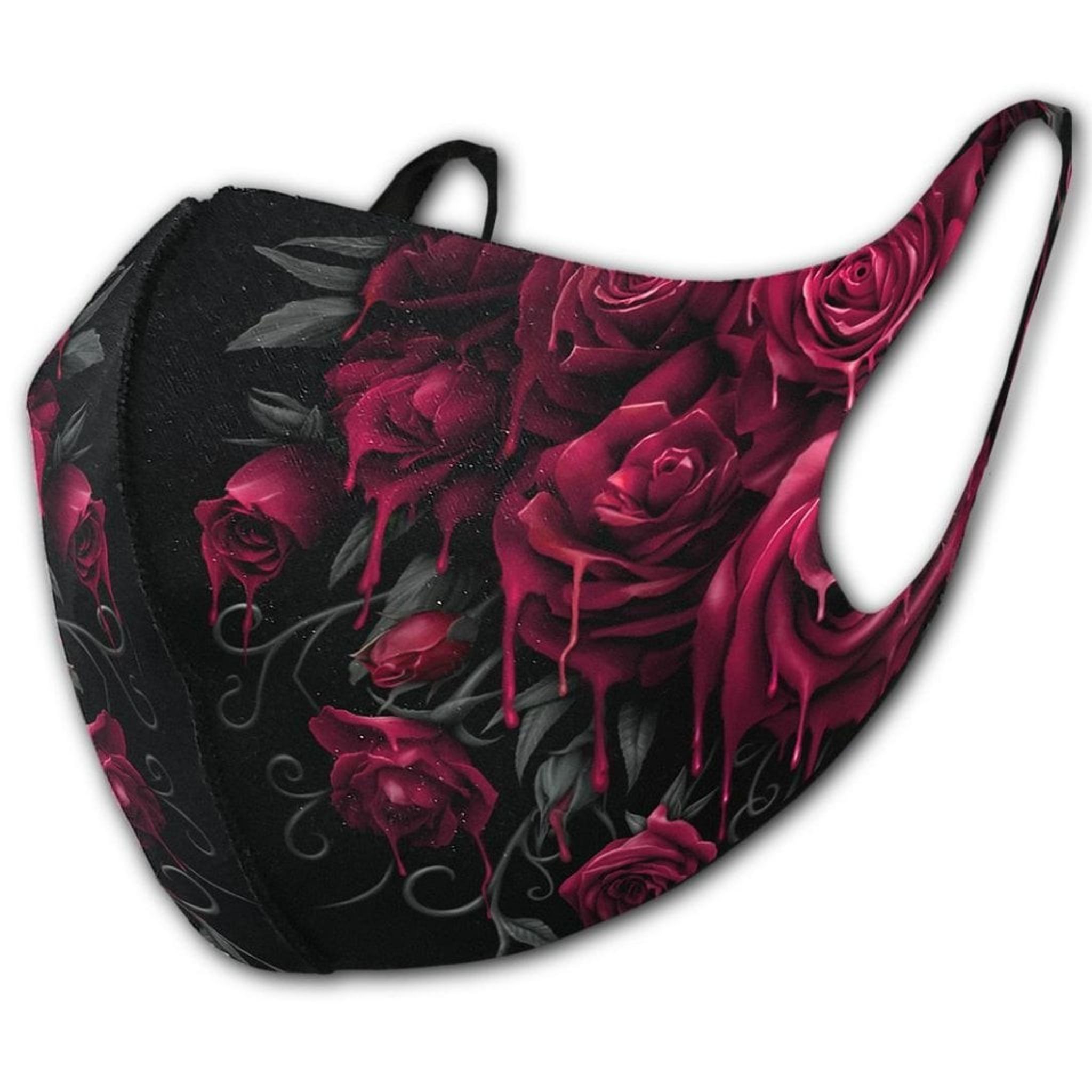 Över hela munskyddet så har du trycket blood rose.