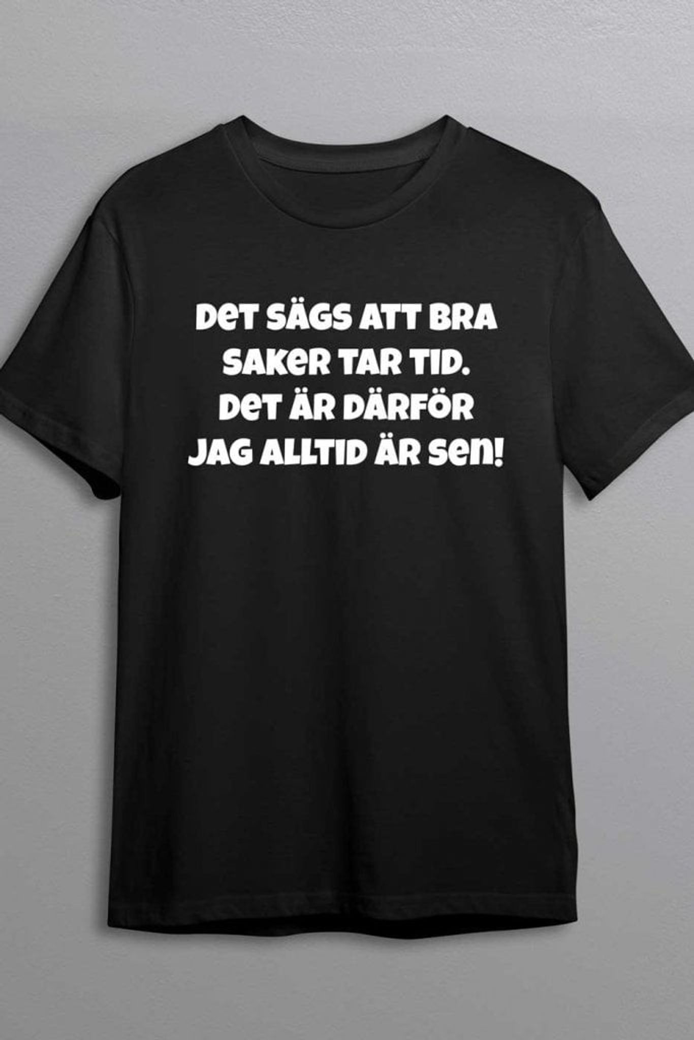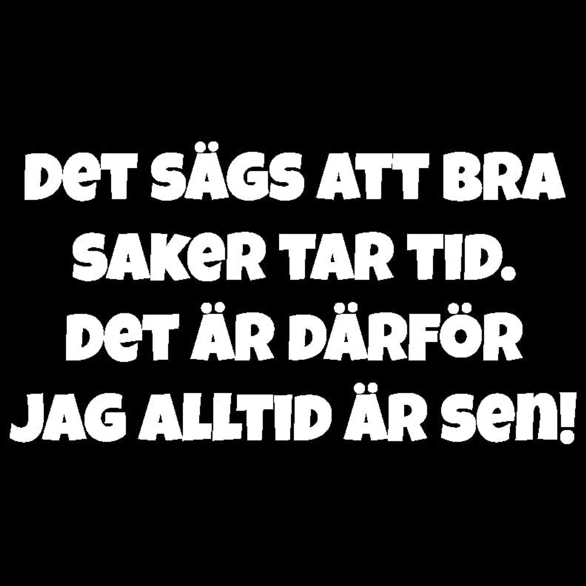 Tryck med texten: Det sägs att bra saker tar tid. Det är därför jag alltid är sen!