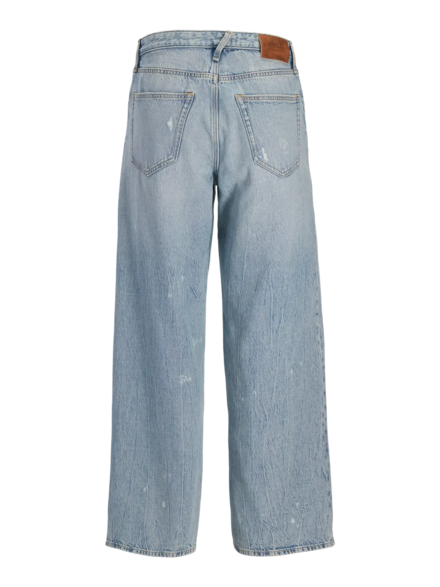 Detta är ett par breda jeans med hög midja, designade för en avslappnad och bekväm passform. De ger en klassisk silhuett som passar för olika tillfällen.