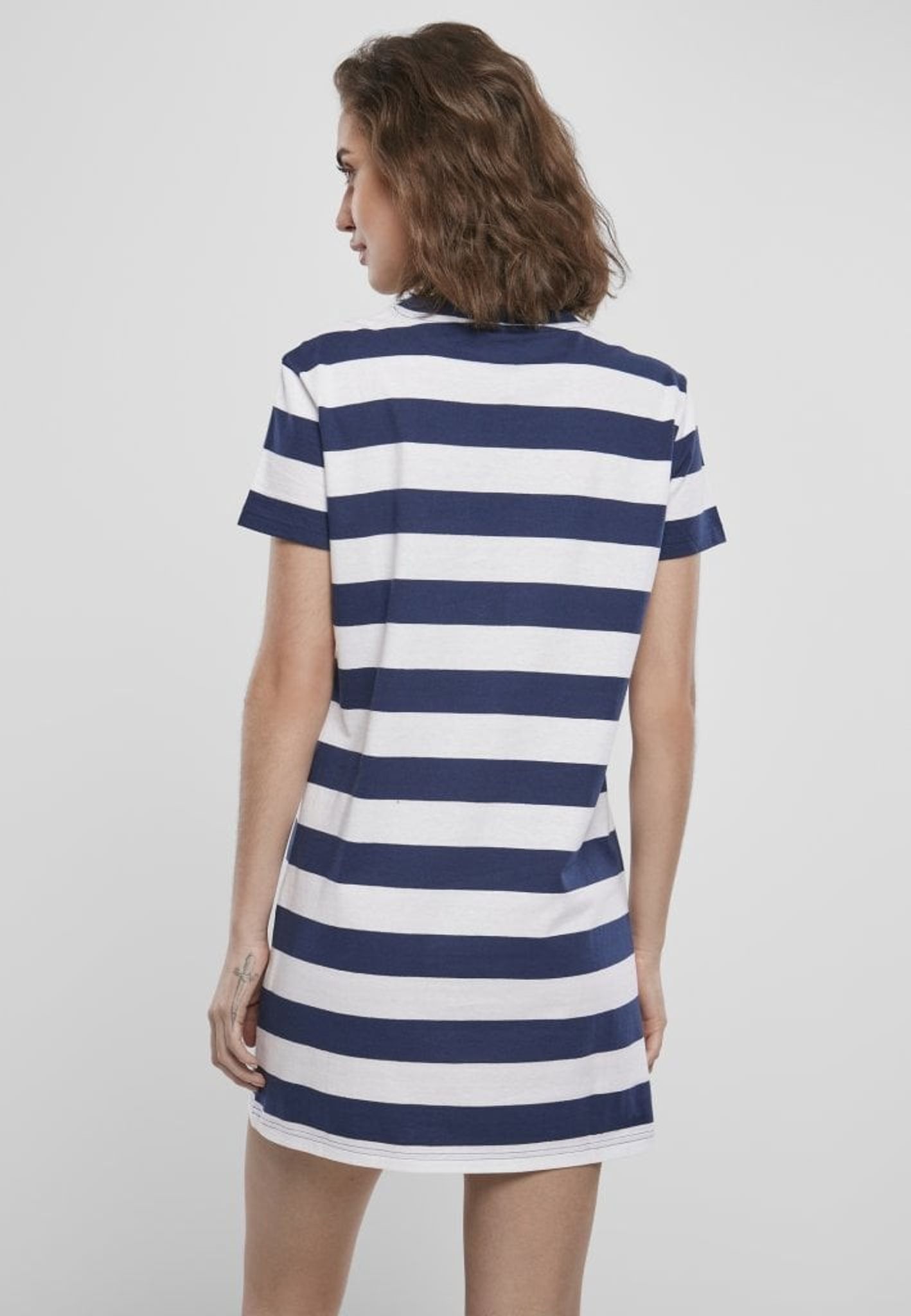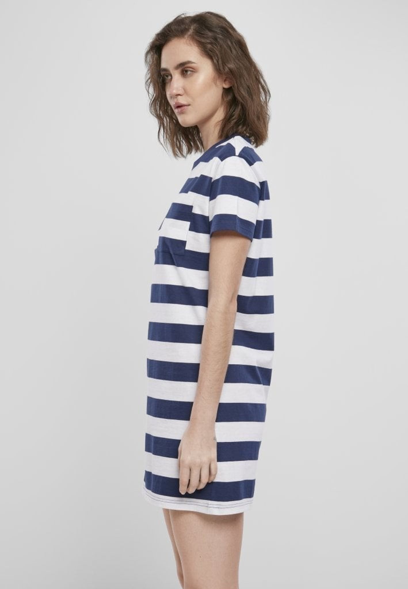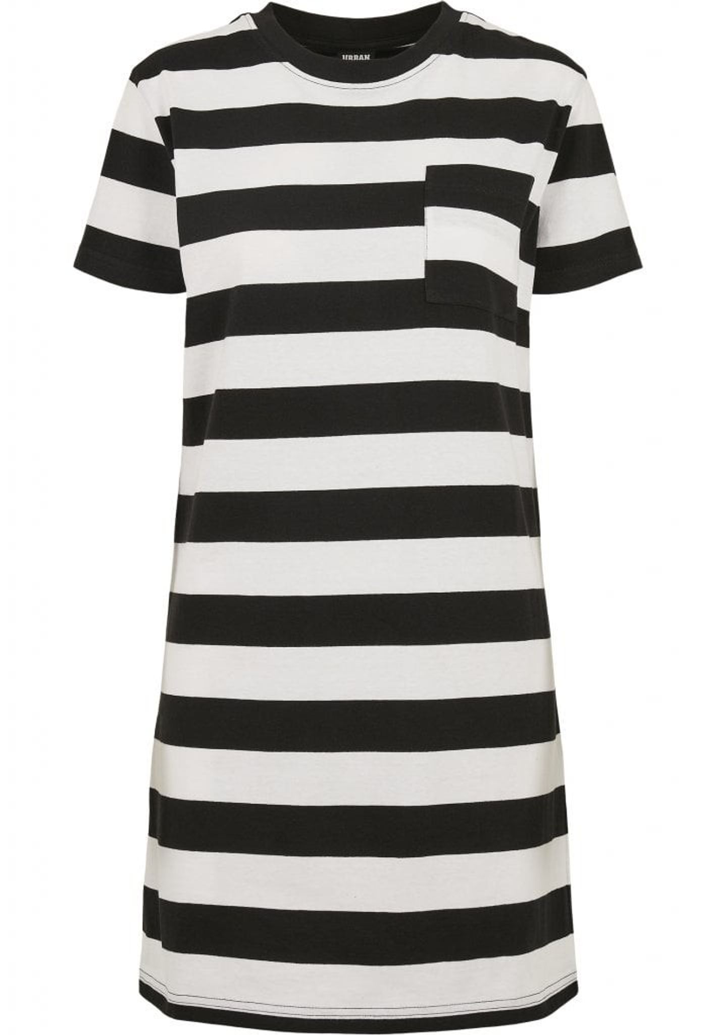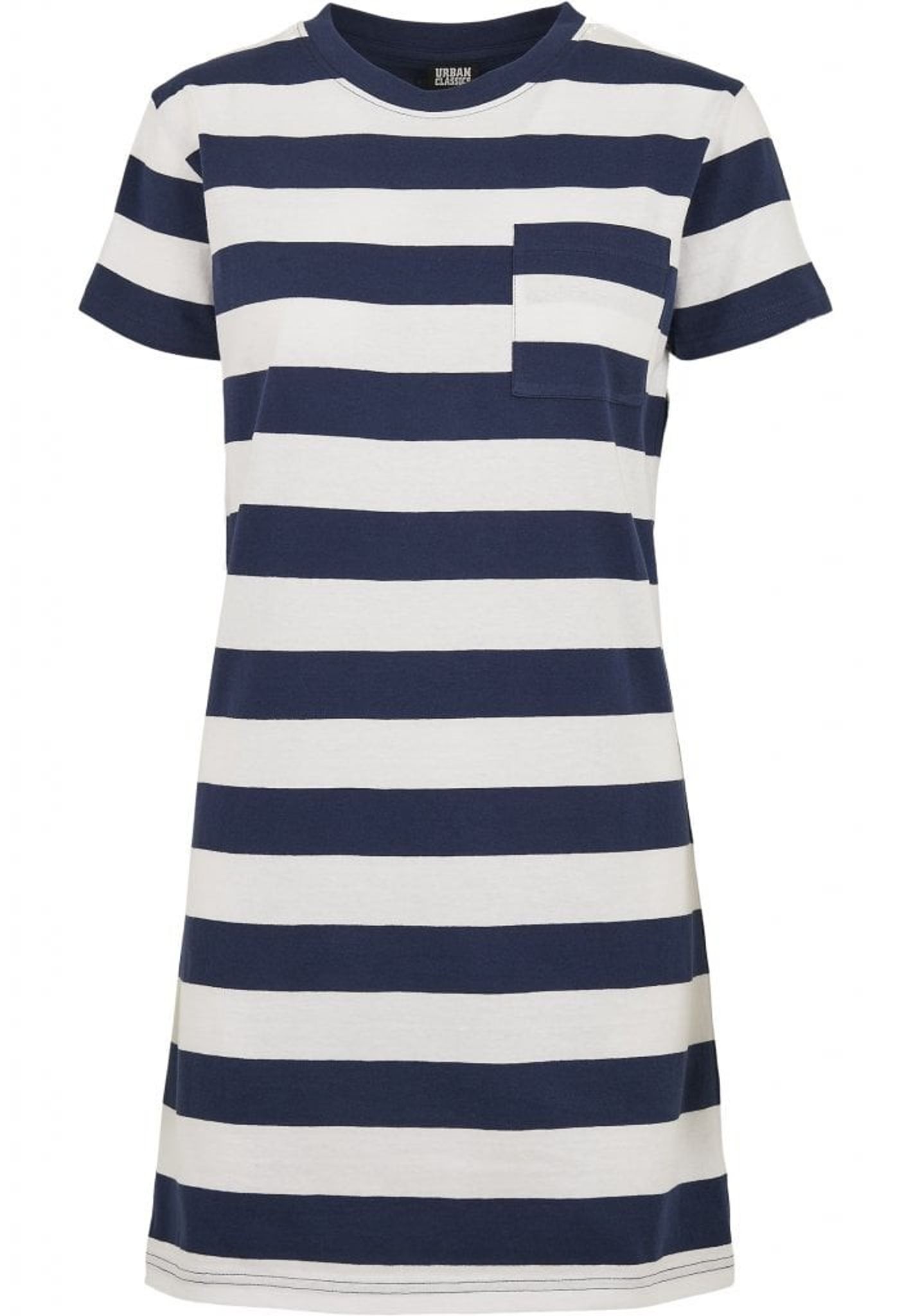 En bredrandig kort klänning med en bröstficka fram.