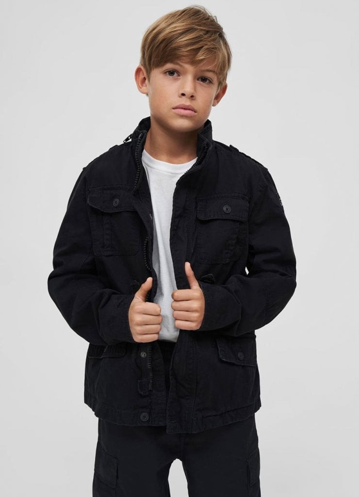 Brandits populära Britannia jacka finns nu äntligen i barnstorlekar. Denna tidslösa jacka har fått inspiration från fältjackorna men med en modernare look. Jackan har en dold huva i kragen. Kragen är stående och har snygg detalj i konstskinn.