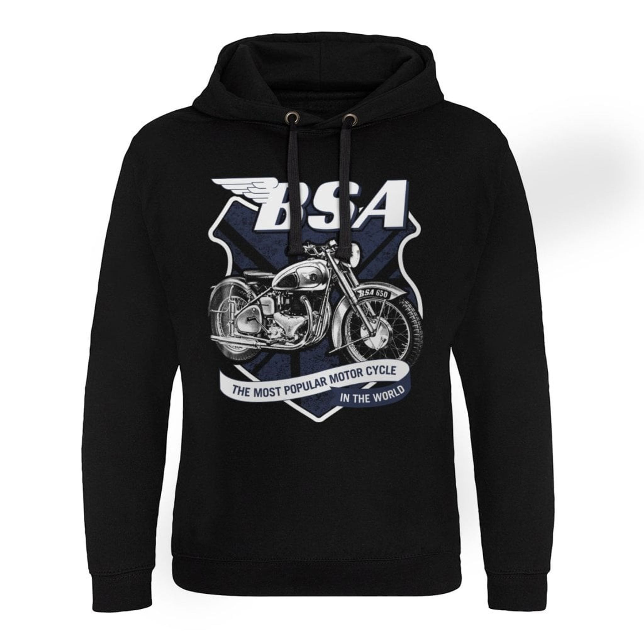 Så dra på dig din B.S.A. 650 Shield Epic Hoodie och känn kraften från den vrålstarka motorcykeln nedanför mc-märktes logotyp. Som vi säger inom BSA-kretsen: "Once a biker, always a biker!"