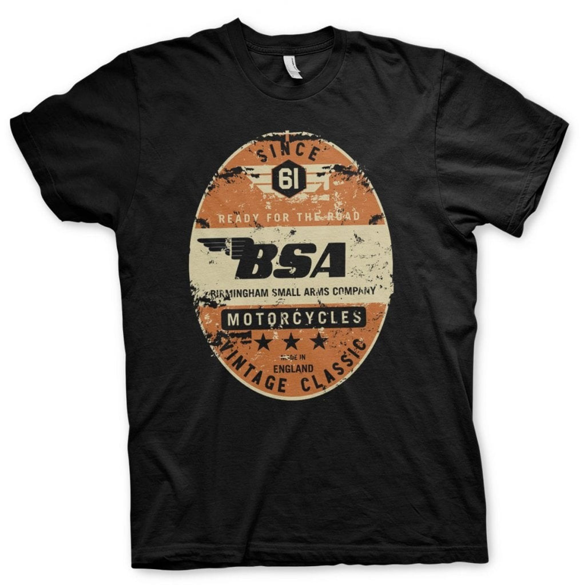 När man drar denna T-shirt över huvudet så är som att kliva tillbaka i tiden och ta en åktur på en vintage motorcykel genom stadens gator. Med "BSA SINCE 61" på bröstet kommer du att känna dig som en del av det brittiska arvet och redo att ge dig ut på vägen.