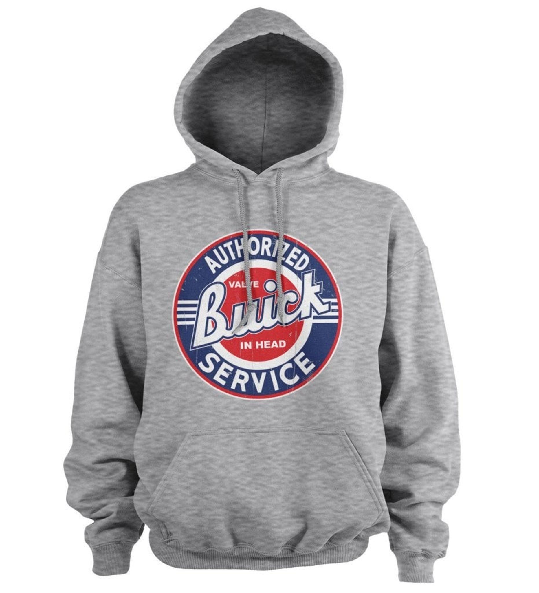 Vår hoodie för herr får dig att känna dig som om du har stigit in i en klassisk amerikansk verkstad från mitten av 1900-talet. Med sitt stolt skrivna "Buick" och referensen till tekniska innovationer andas den gamla goda tiden för bilreparationer.