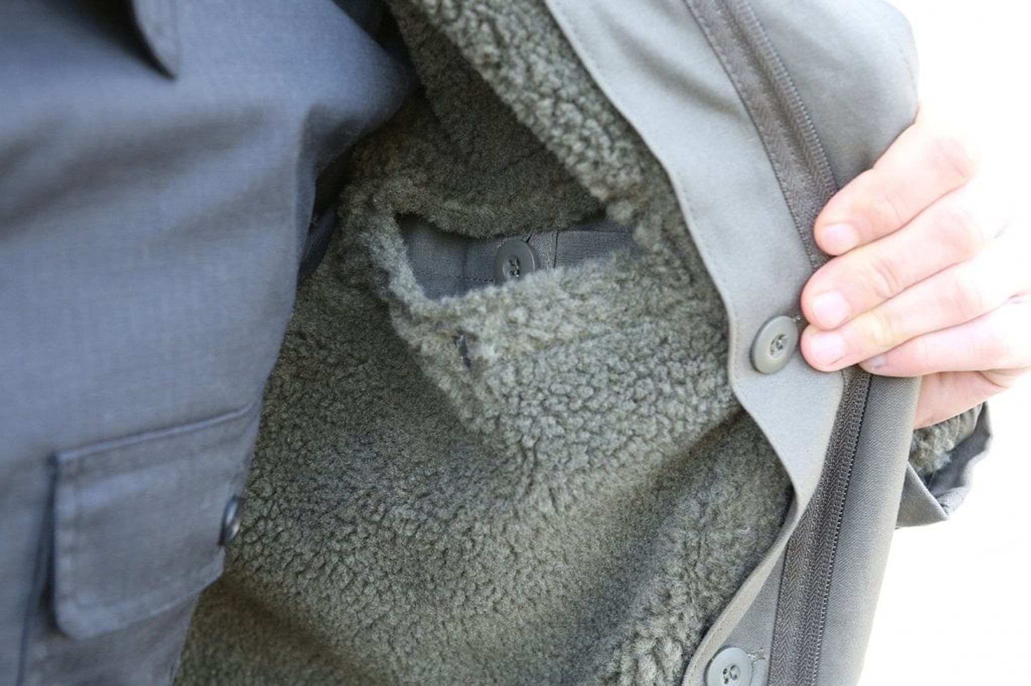 När det är lite varmare ute så knäpper du loss teddyfodret och använder ytterjacka. När det börjar bli lite kallare temperaturer så knäpper du enkelt på fodret igen och vips så har du en jacka med varmt härligt teddyfoder igen.