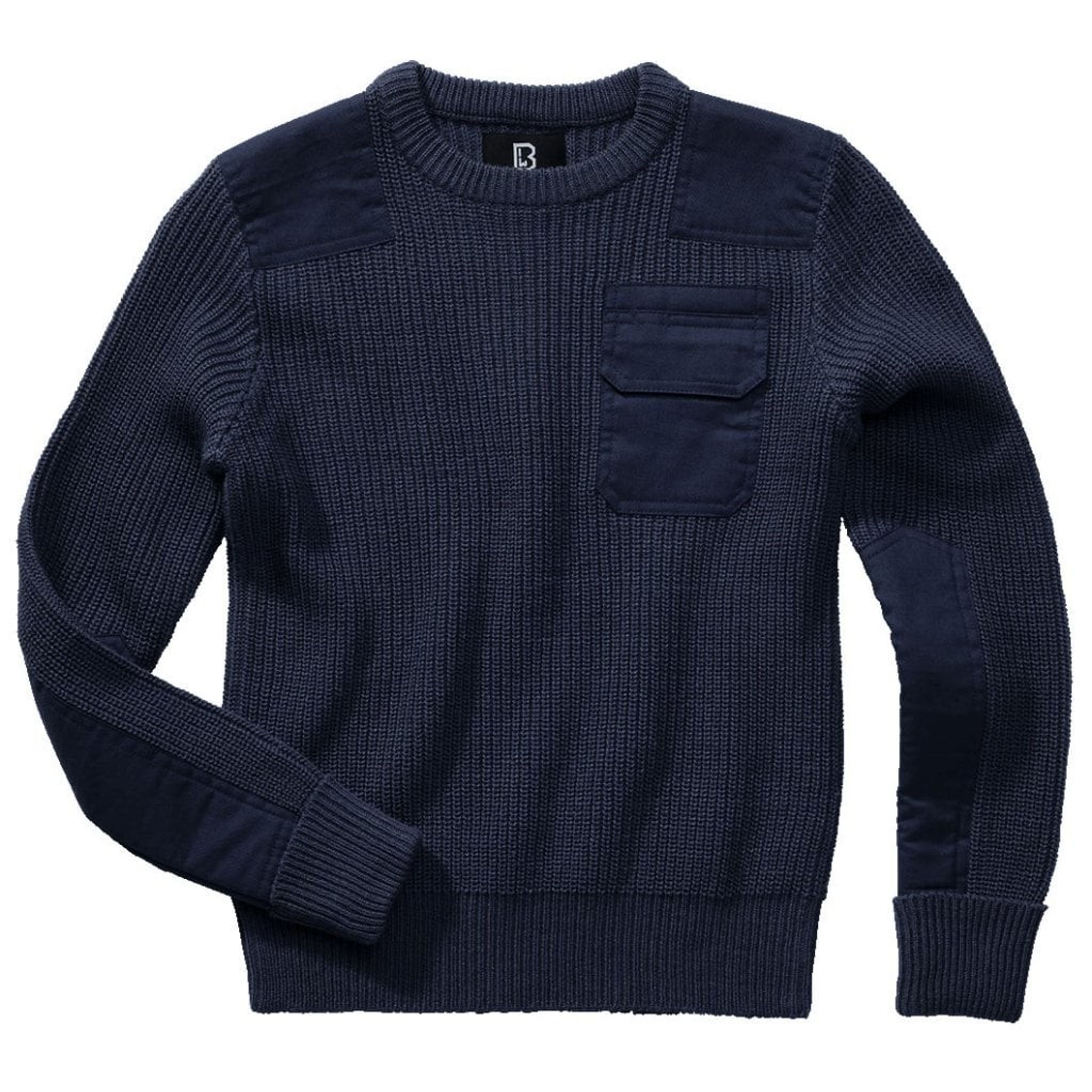 Tyska klädesmärket Brandit levererar en stickad pullover i barnstorlekar med design hämtad från tyska försvaret Bundeswehr. Plagget gör sig perfekt för friluftsliv så väl som till vardags. Det stickade luftiga tyget fungerar perfekt som en varm isolering under jackan på vintern.