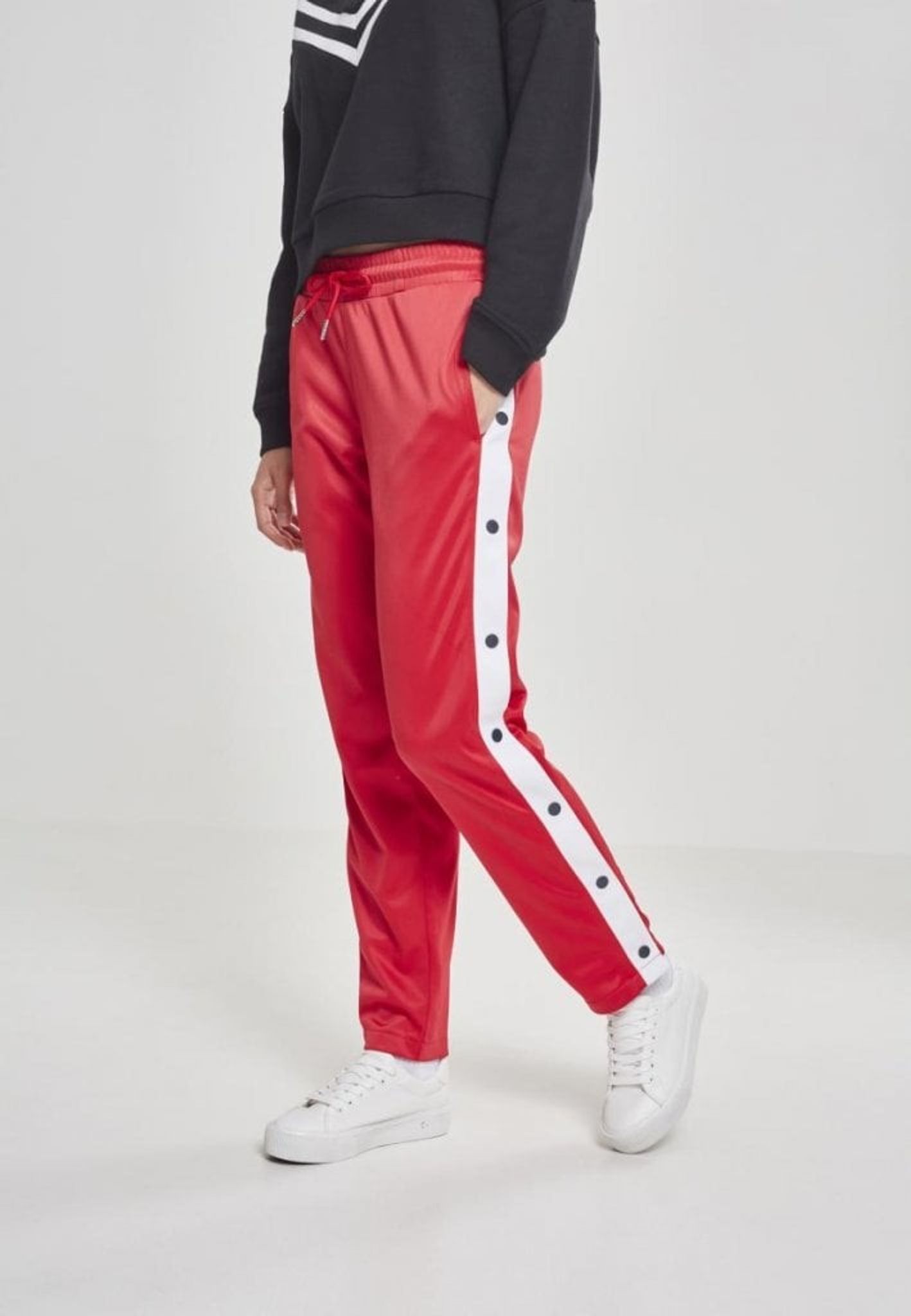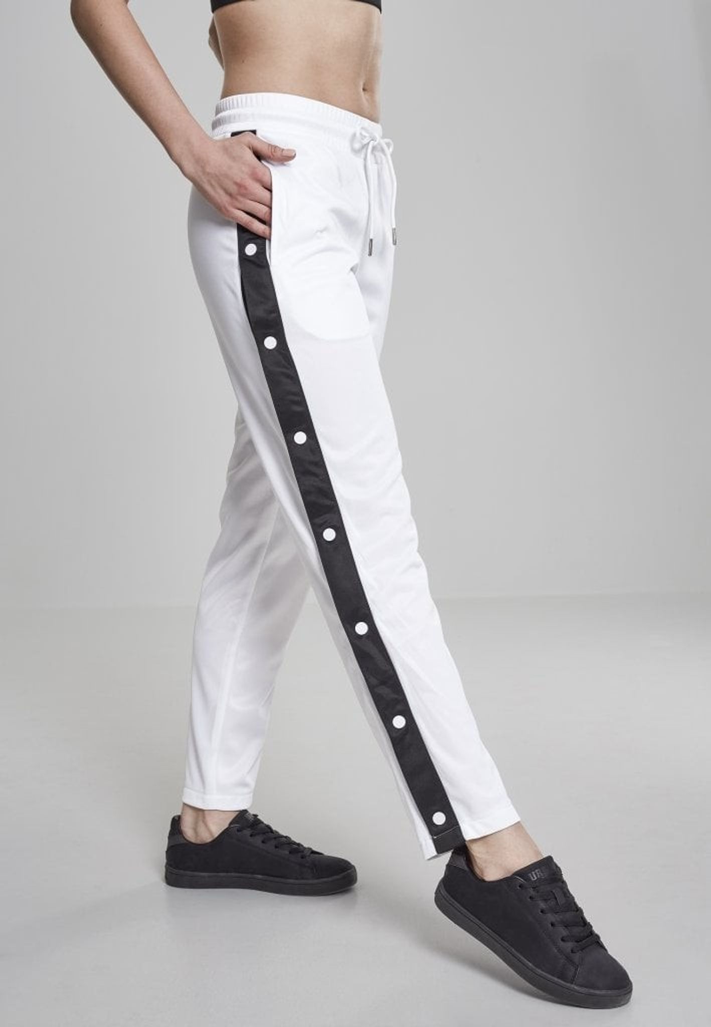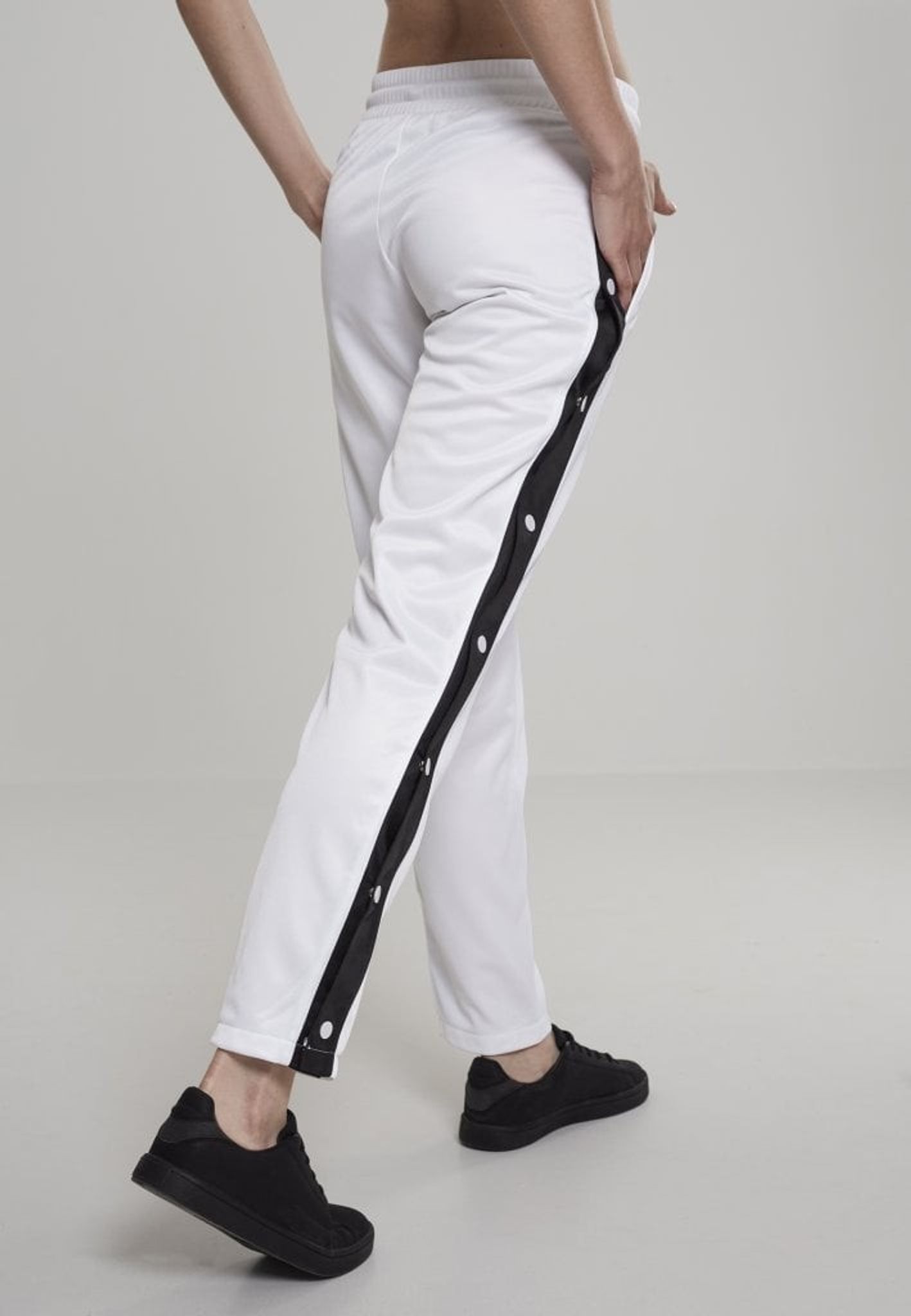 En byxa med en färgrand längs byxans sidor. På randen är det tryckknappar som går att knäppa upp.