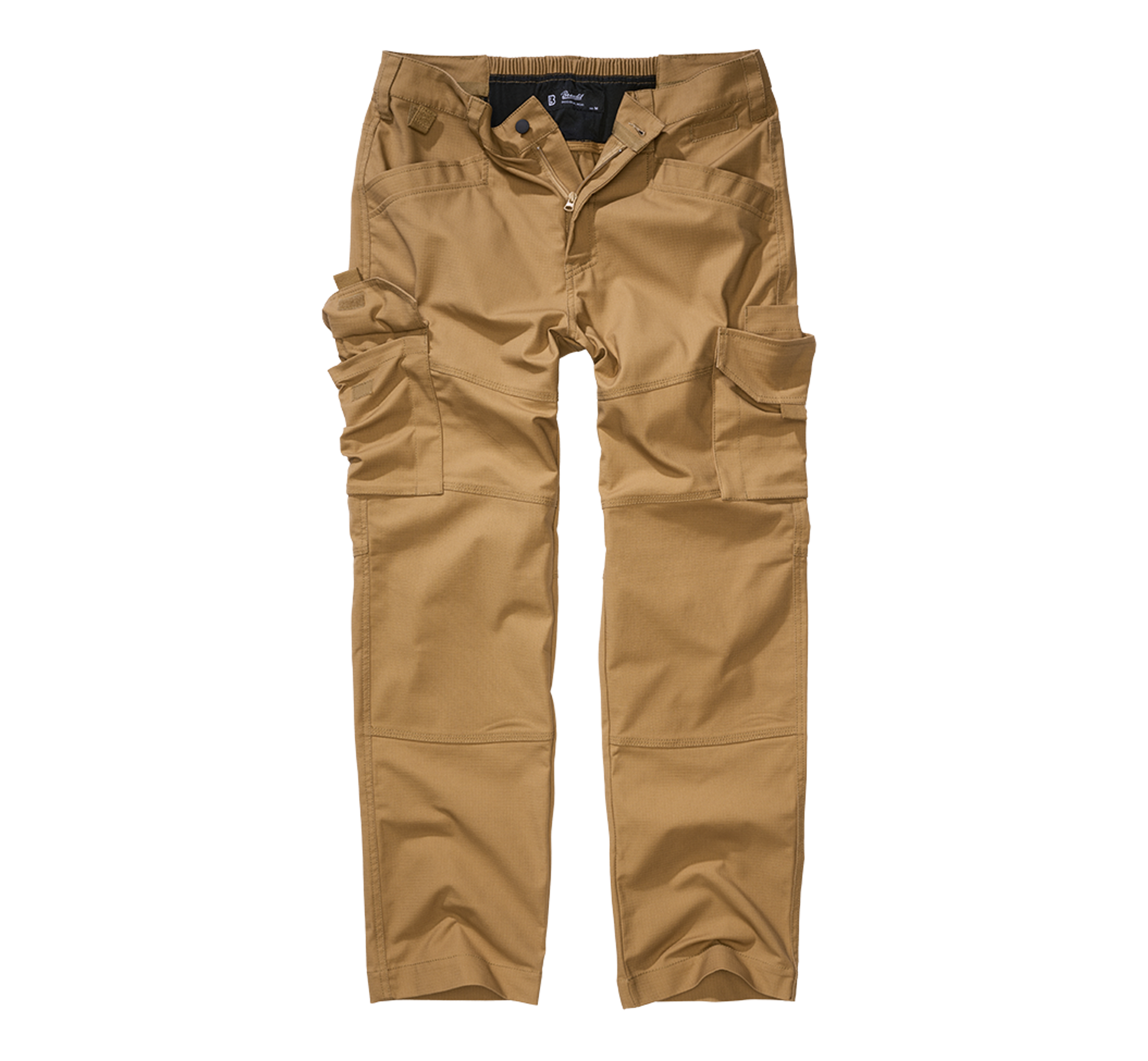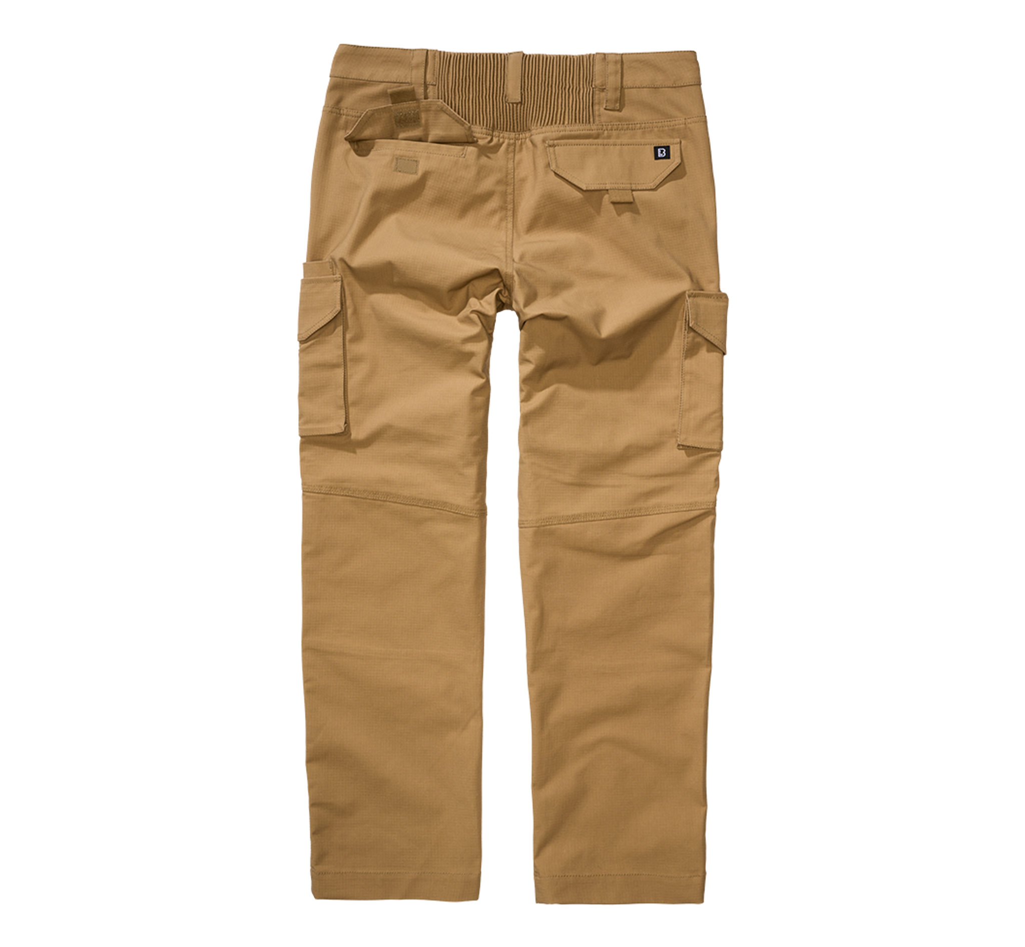 Byxorna har en praktisk konstruktion med en elastisk midja för ökad komfort och flera stora fickor, inklusive två baktill med lock och kardborrestängning samt två sidofickor med lock som även de har kardborrestängning. Dessutom finns det en dubbelstickad knädel, vilket gör byxorna extra slitstarka.