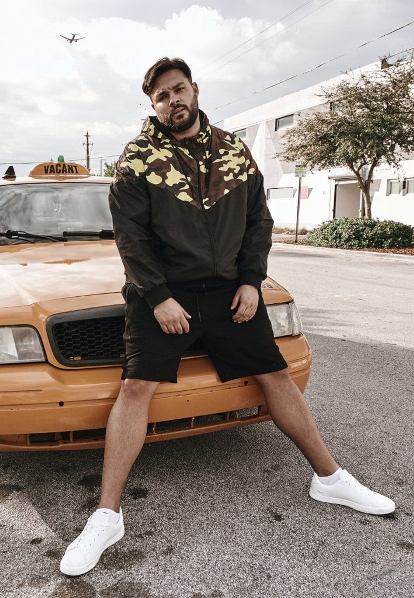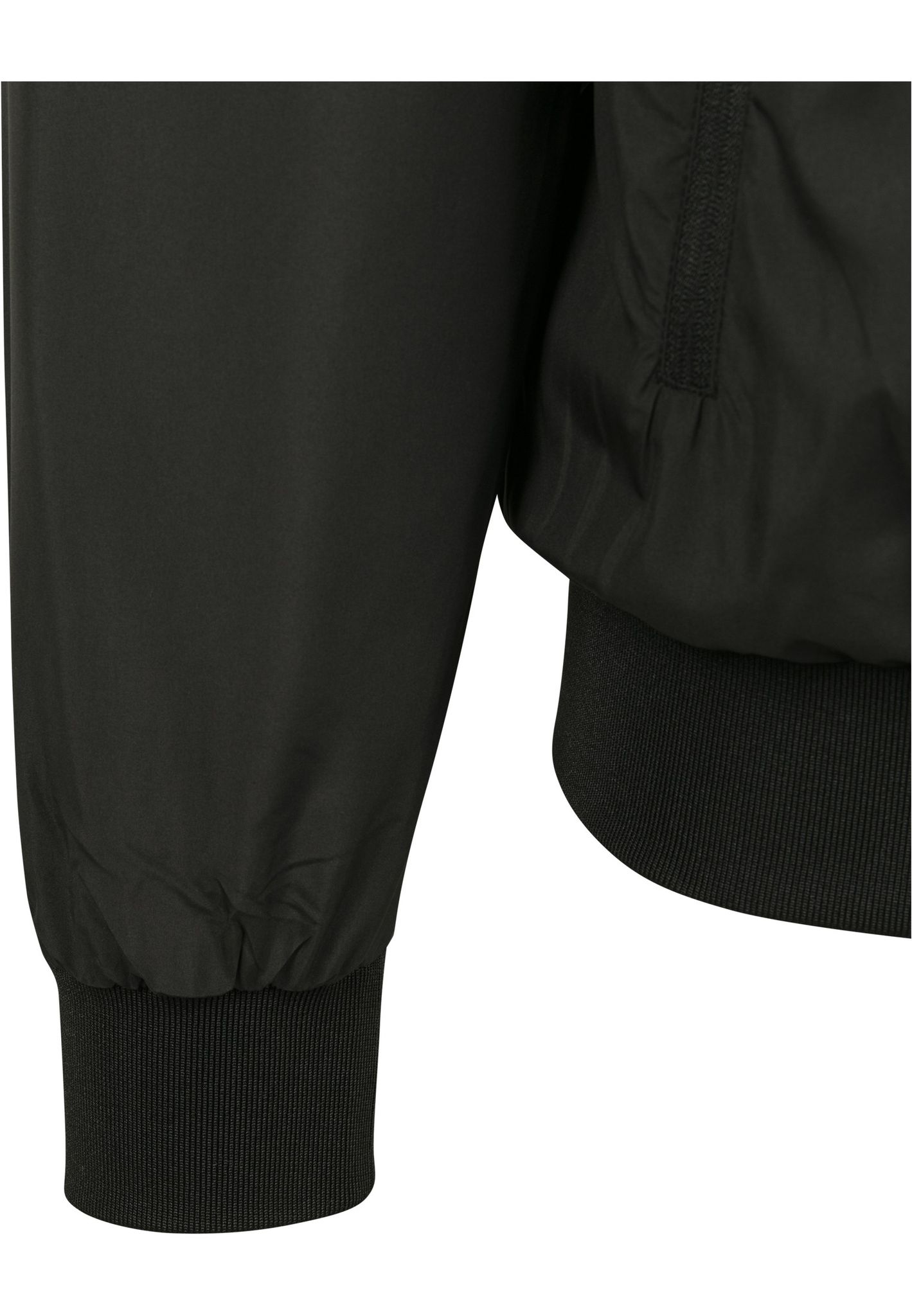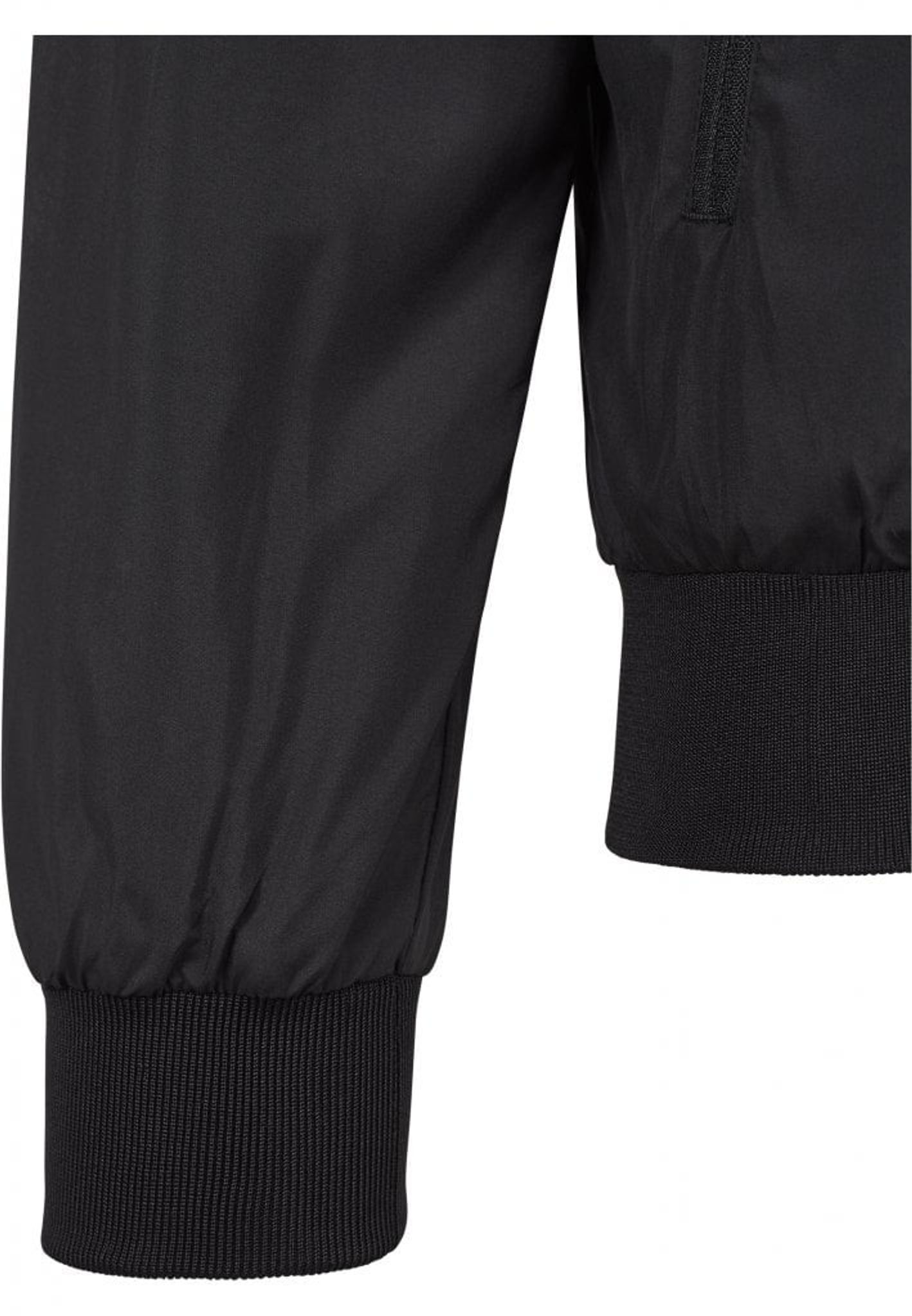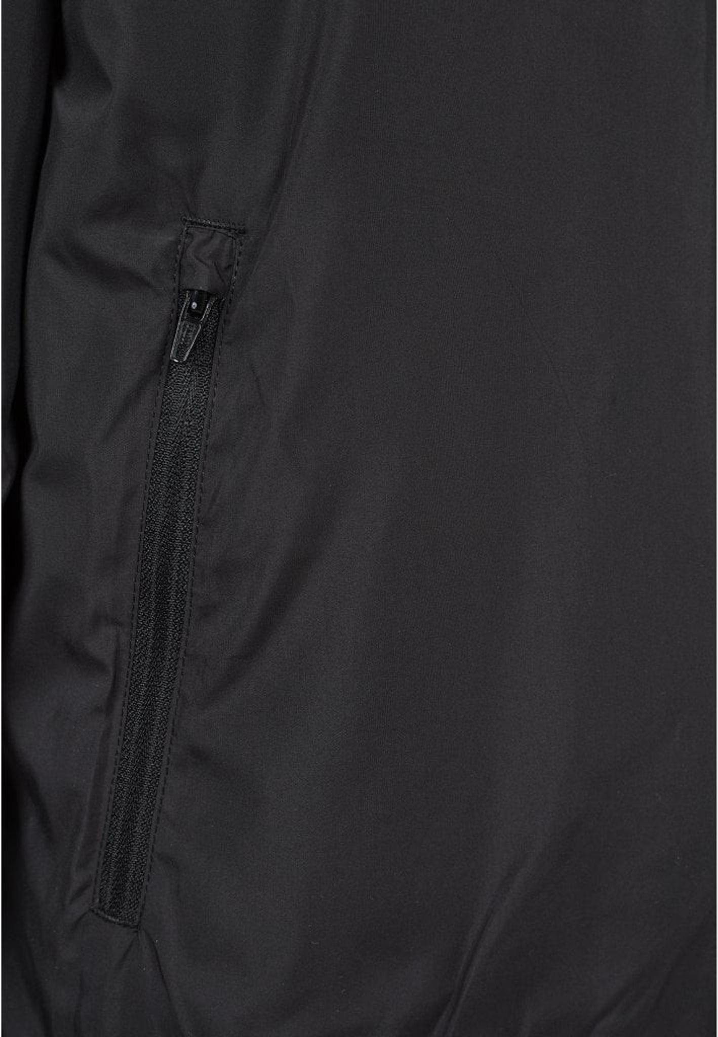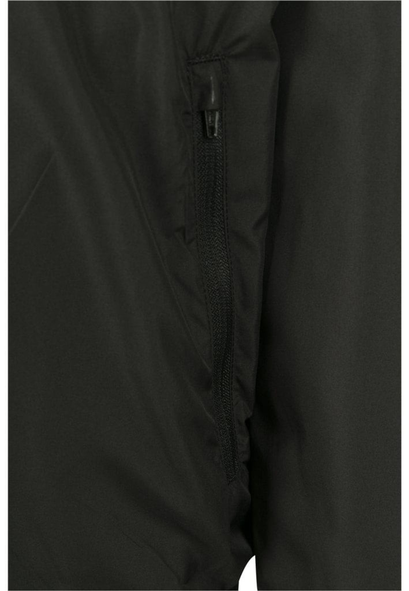 En vindjacka med en överdel som går i kamouflagemönster och en nederdel i svart tyg.