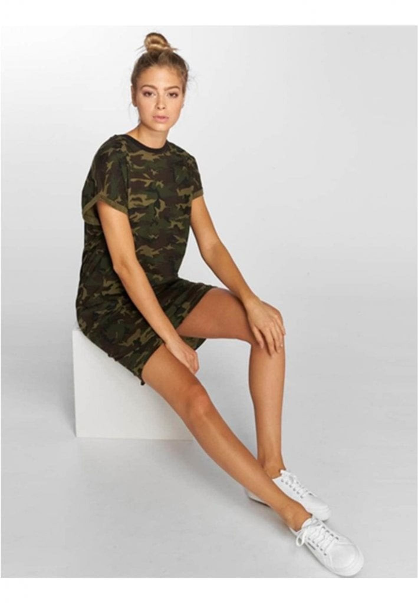 En stilren klänning i förlängd T-shirt-look och med bomullstyg i kamouflage.