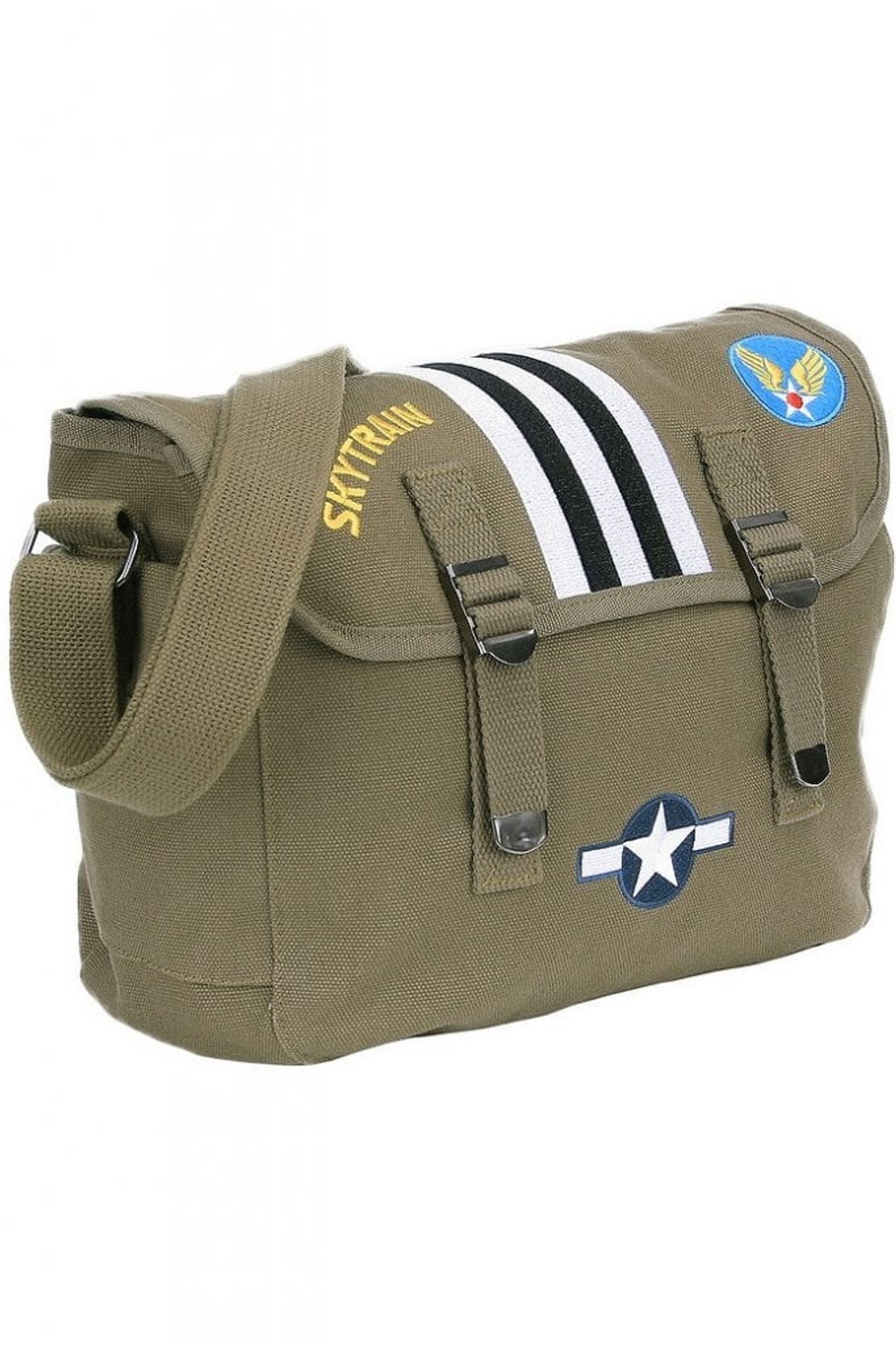 Tillverkad av 100 procent bomullscanvas, är väskan både hållbar och lätt. Den väger 415 gram och har en sidoficka med knapp för extra förvaring. Dess design inkluderar en tryckt WWII-motiv som hyllar den historiska betydelsen av C47 Skytrain.