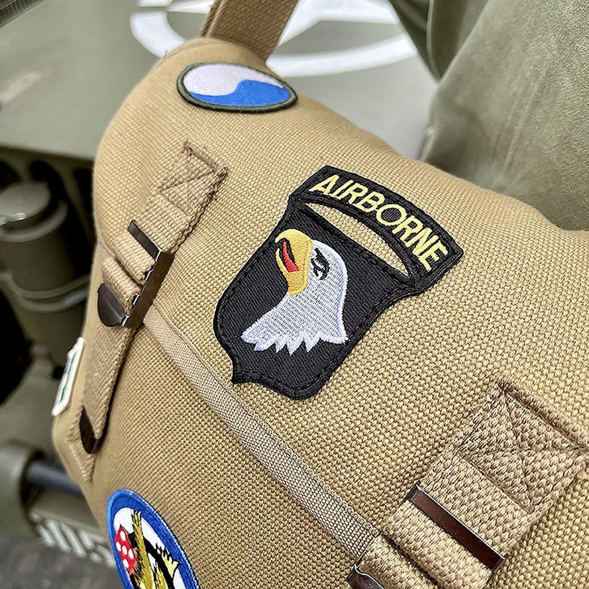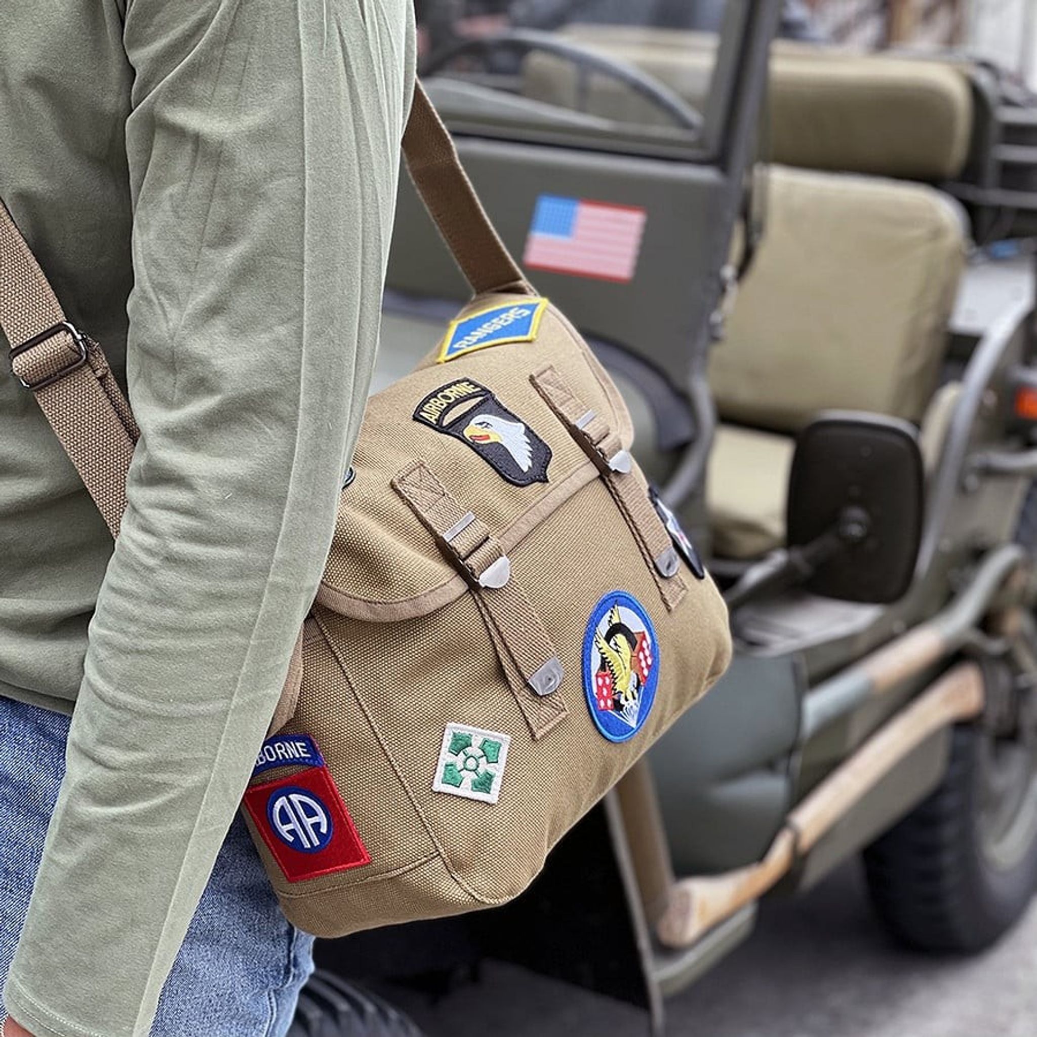 Unique Canvas Pimple är en praktisk och stilren bärväska med broderade emblemer från andra världskriget, inspirerad av U.S. Army. Denna väska är designad för dagligt bruk och erbjuder både funktionalitet och en nostalgisk känsla.