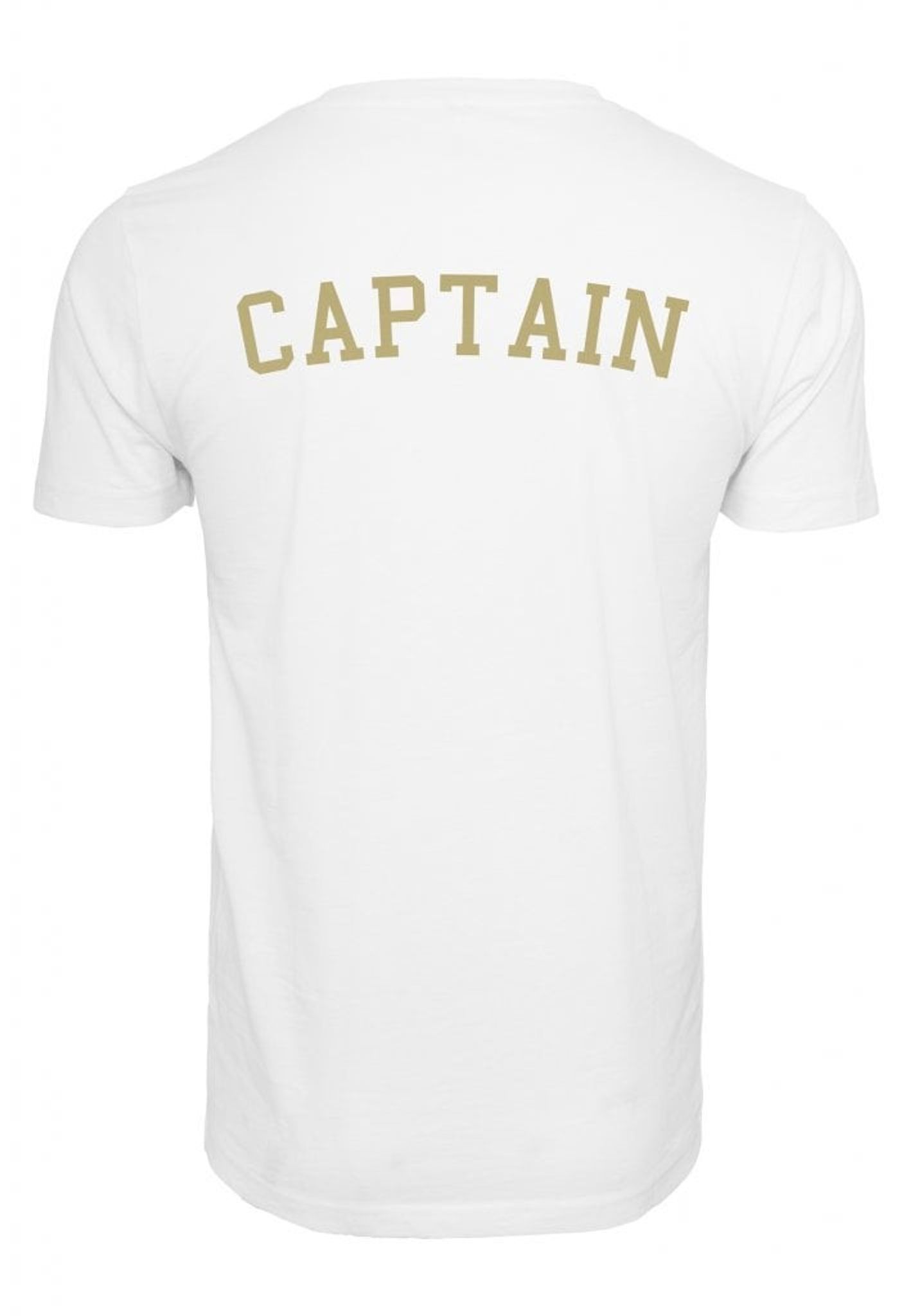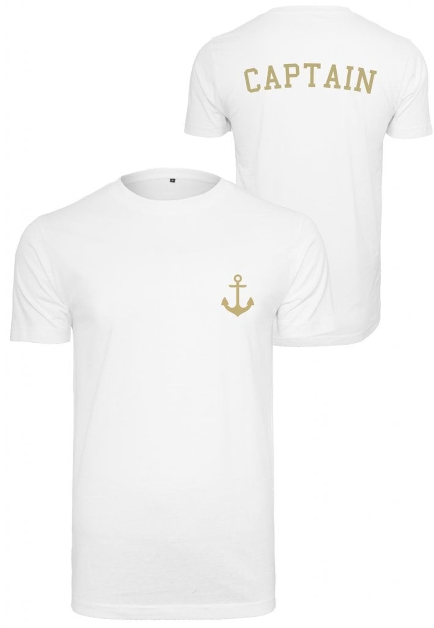 En vit T-shirt i riktigt skönt bomullstyg. På bröstet finns ett guldigt ankare och på ryggen står det "Captain" med en matchande guldig färg.