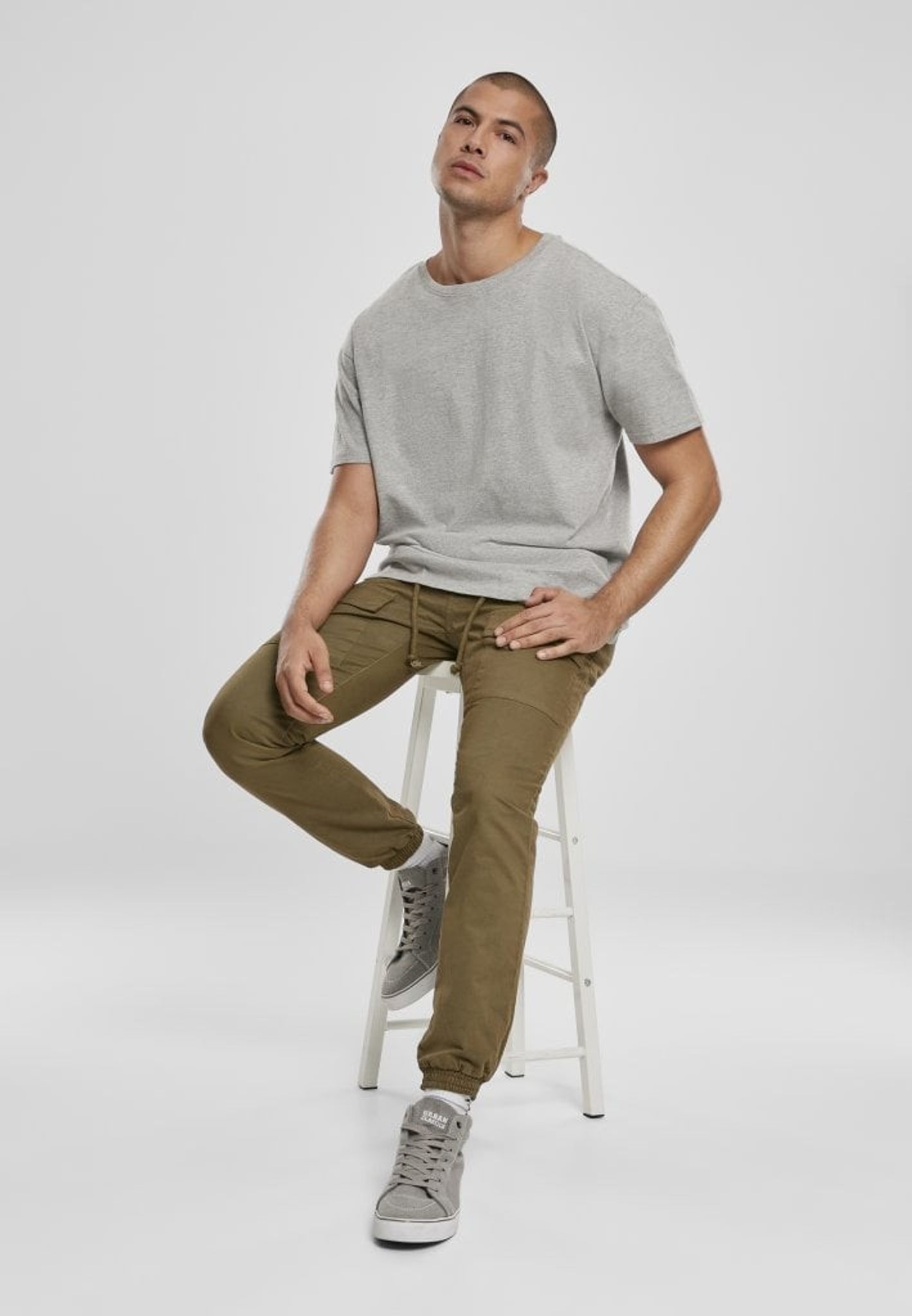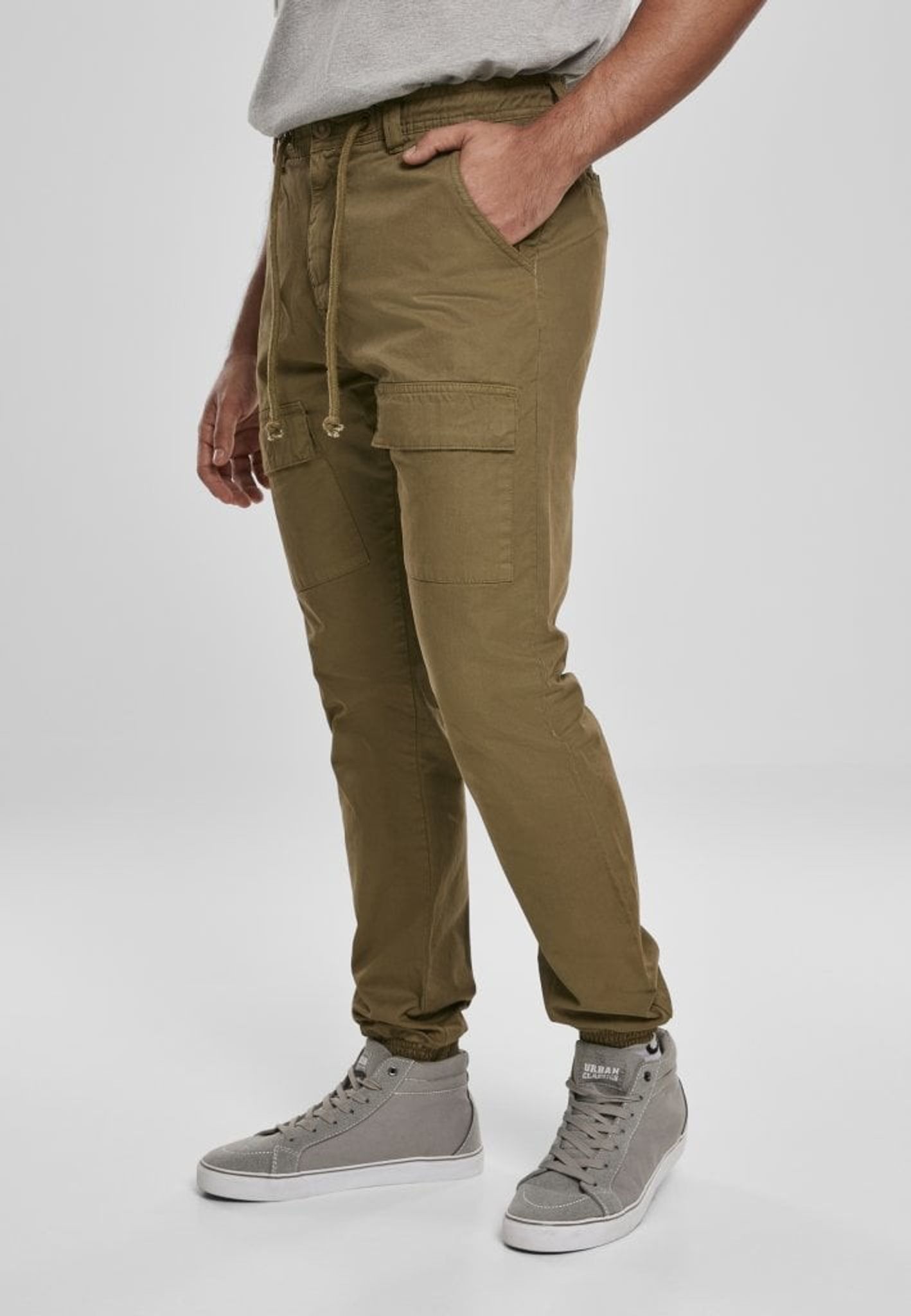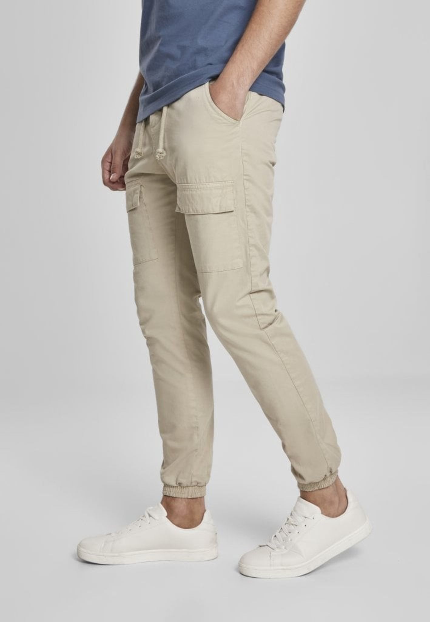 Byxorna har två stora fickor på benet. Byxorna har snörning i midjan.