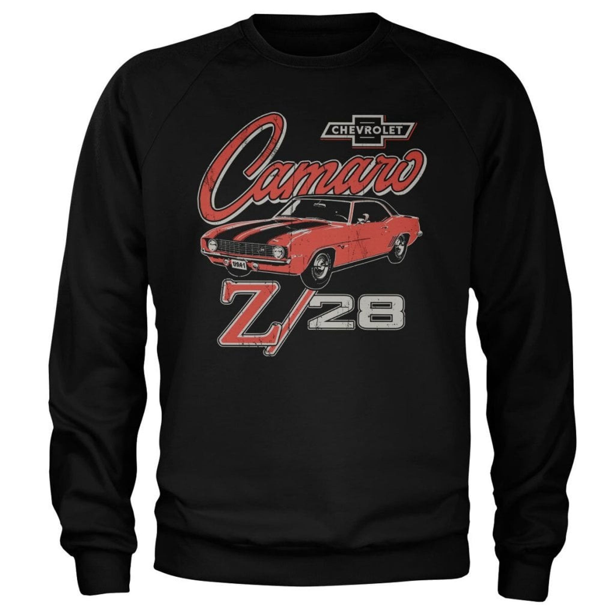 Denna sweatshirt är ett kärleksbrev till Chevrolet Camaro Z/28, en sann legend på fyra hjul. Den klassiska "CHEVROLET"-logotypen svävar över det hela som en stolt flagga, tidlös och ikonisk.