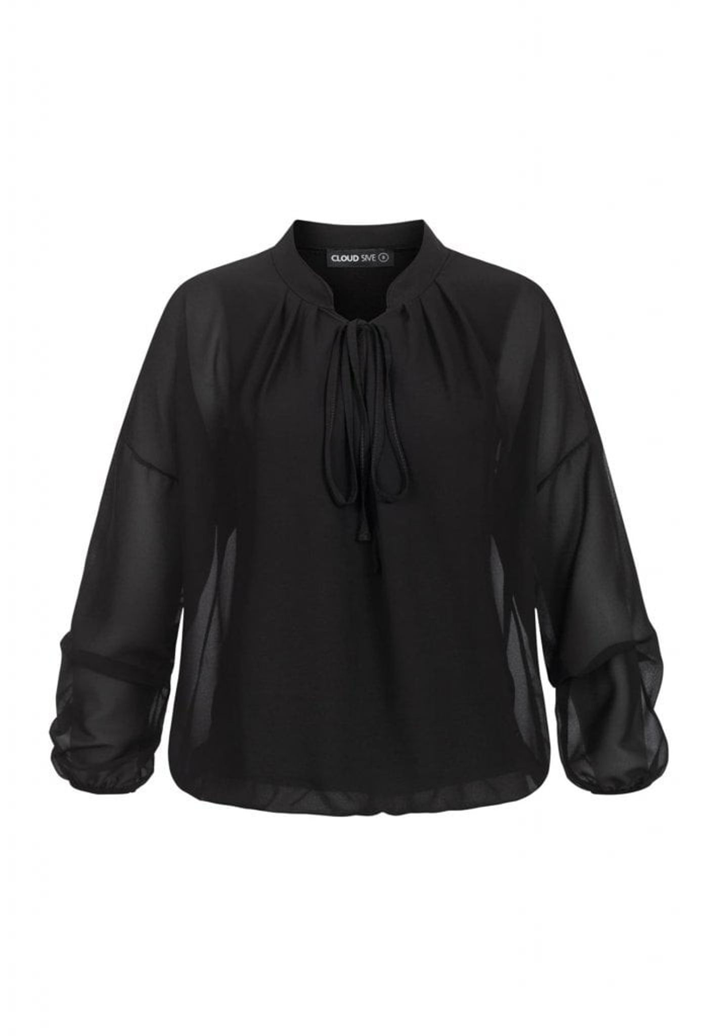Chiffonblus med ståkrage och knytdetalj.