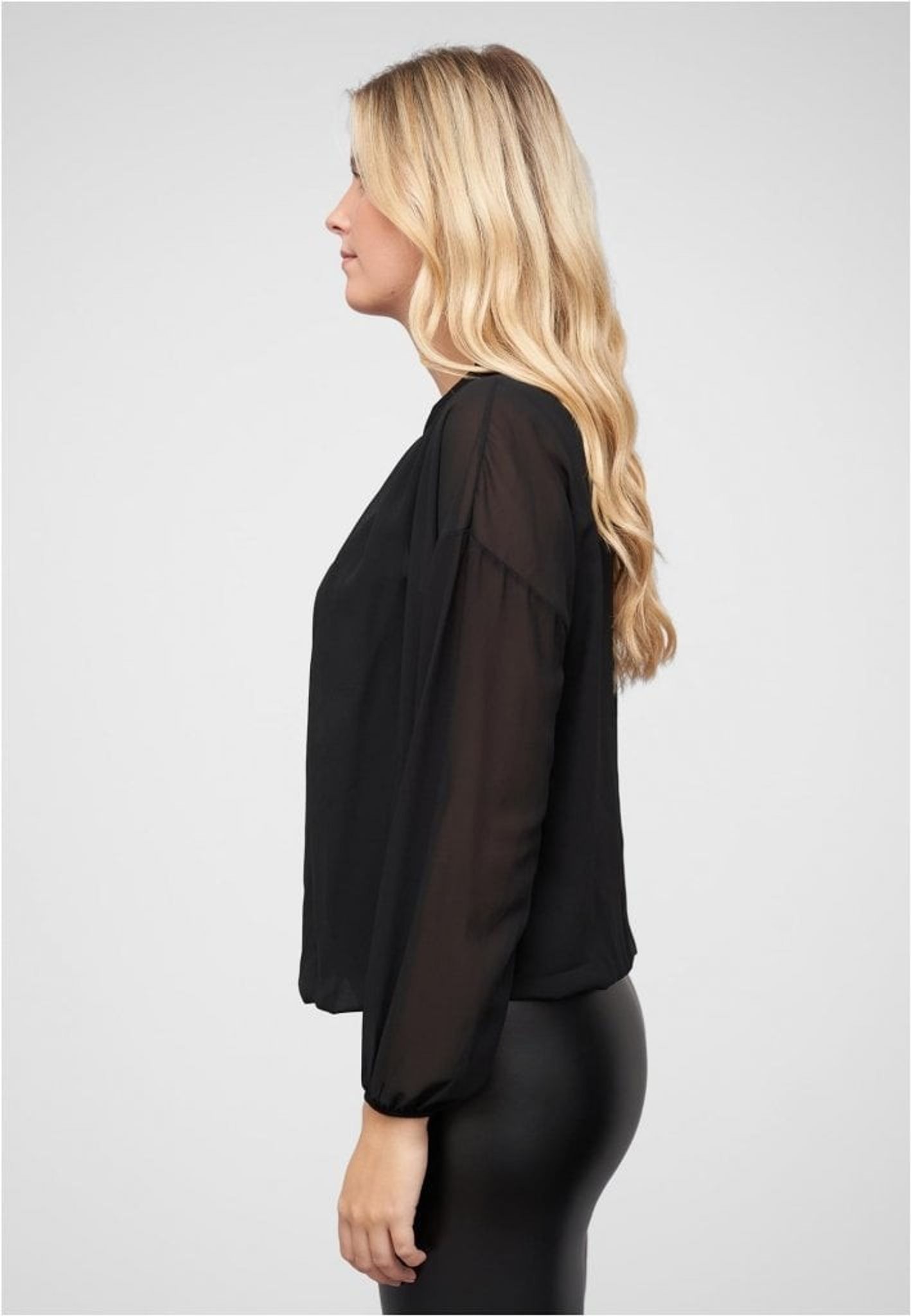 Chiffonblus med ståkrage och knytdetalj
